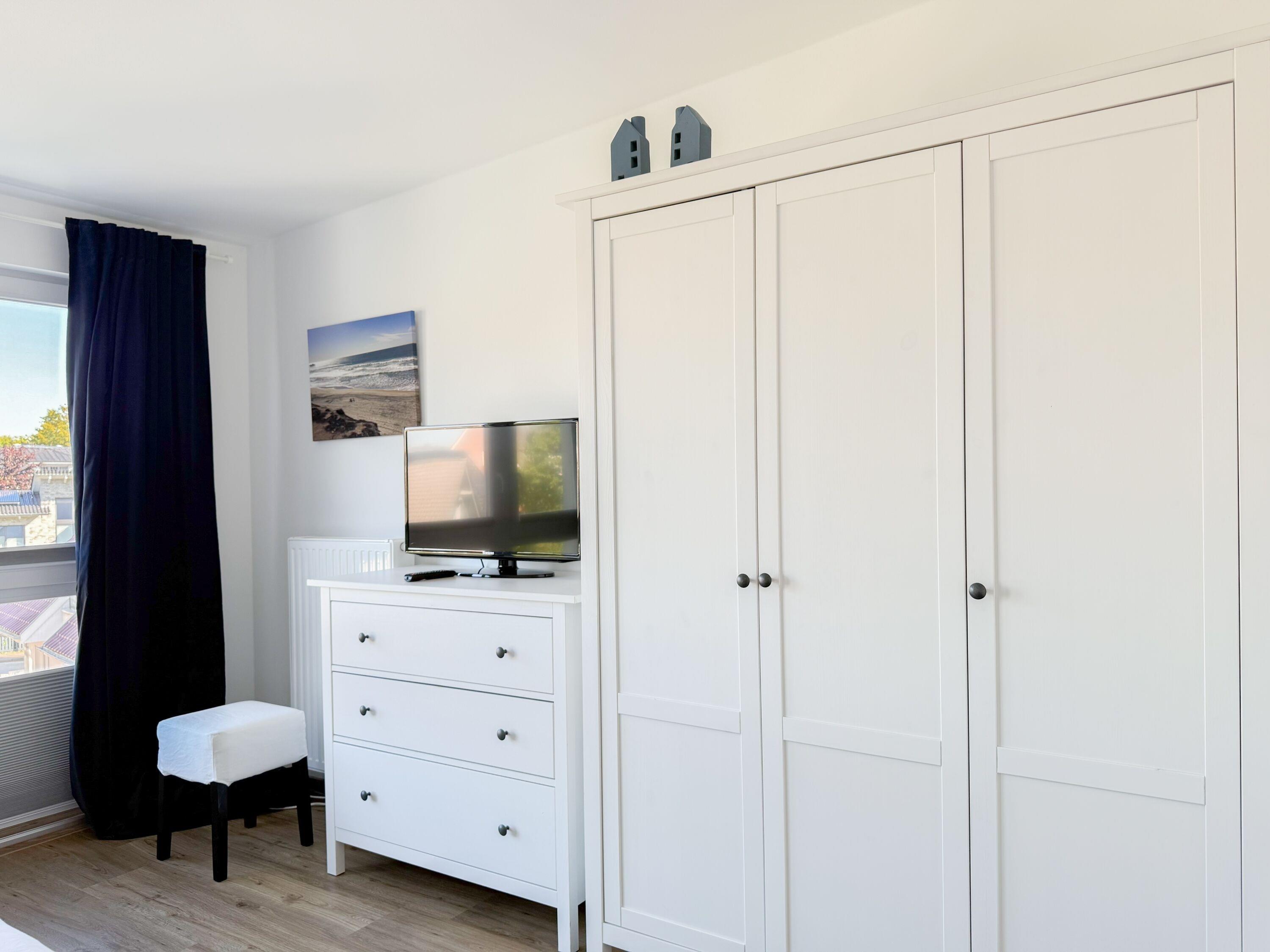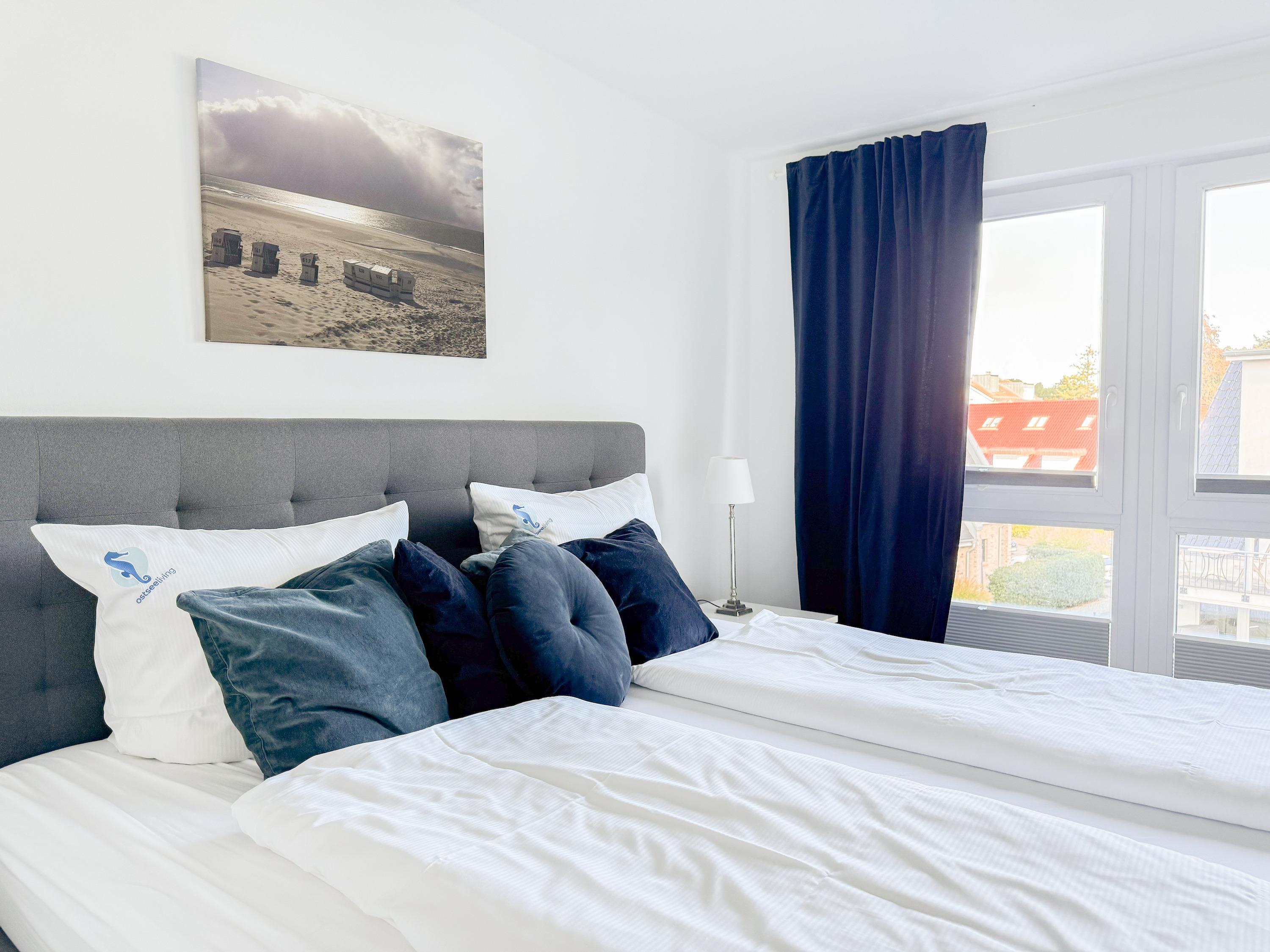 Die Ferienwohnung Magic Eight liegt im ersten Obergeschoss des Hauses 2Seasons und bietet dank toller Lage einen idealen Rückzugsort, ohne auf den besonderen Timmendorfer Lifestyle zu verzichten und abwechslungsreiche Urlaubstage in Strandnähe zu verleben. Die hochwertig ausgestattete Wohnung erstreckt sich über zwei Ebenen und verfügt über einen herrlichen Südwestbalkon mit Blick ins Grüne. Auf der unteren Wohnebene befinden sich ein gemütlicher Wohnbereich mit TV und Balkonzugang, der anschließende Essbereich für vier Personen sowie eine offene, moderne Einbauküche, bestens ausgestattet für gemeinsames Kochen. Das großzügig angelegte und modern gestaltete Bad, ebenfalls auf der unteren Ebene, verfügt über eine XXL Walk-In-Dusche und viel Tageslicht. Die beiden separaten Schlafzimmer der Ferienwohnung sind über eine Treppe aus dem Wohnbereich zu erreichen. Schlafzimmer 1 verfügt über ein Boxspringbett (180x200) TV und Verdunkelungsplissees, Schlafzimmer 2 über 2 Einzelbetten und Verdunkelungsrollos.