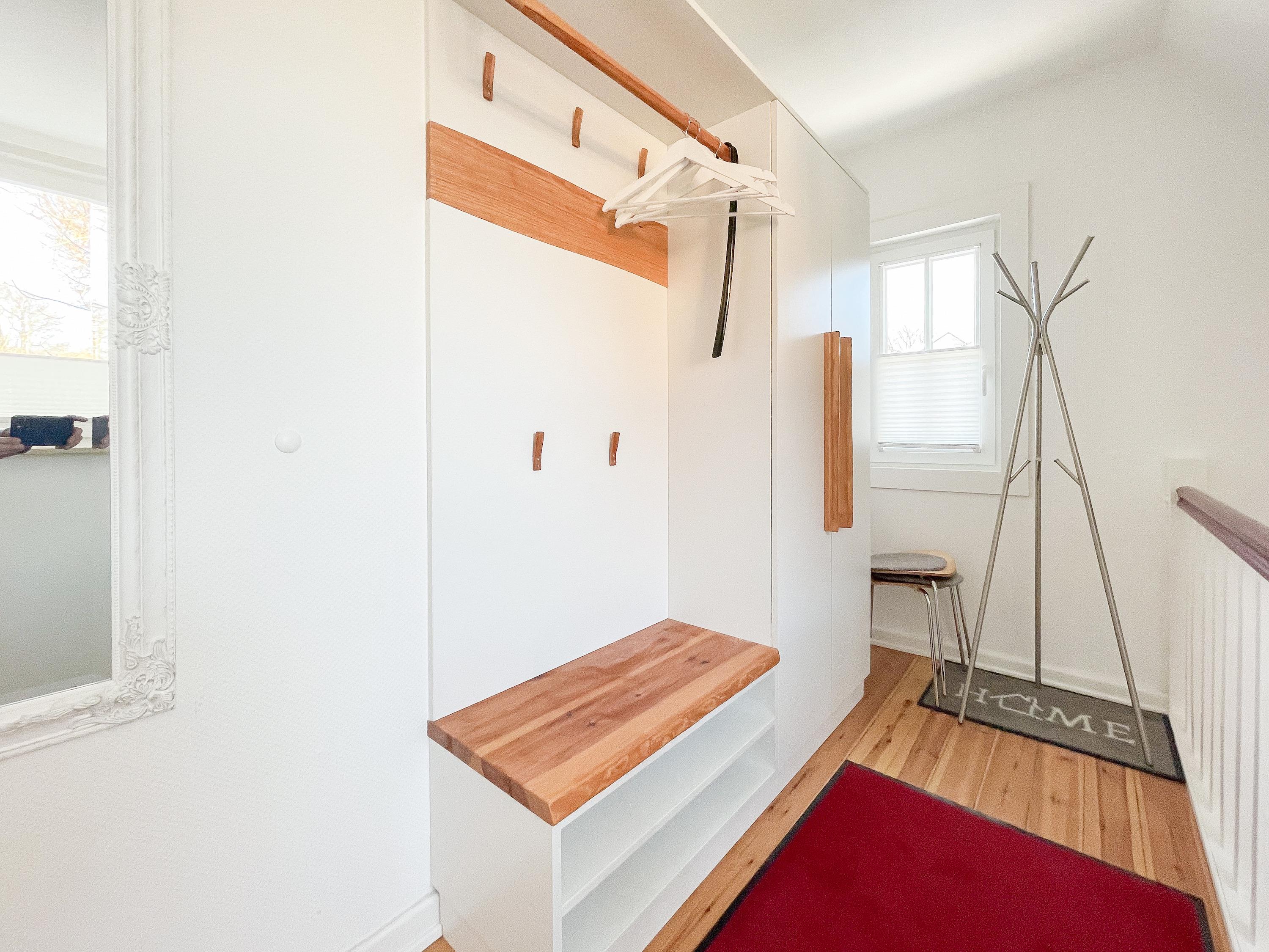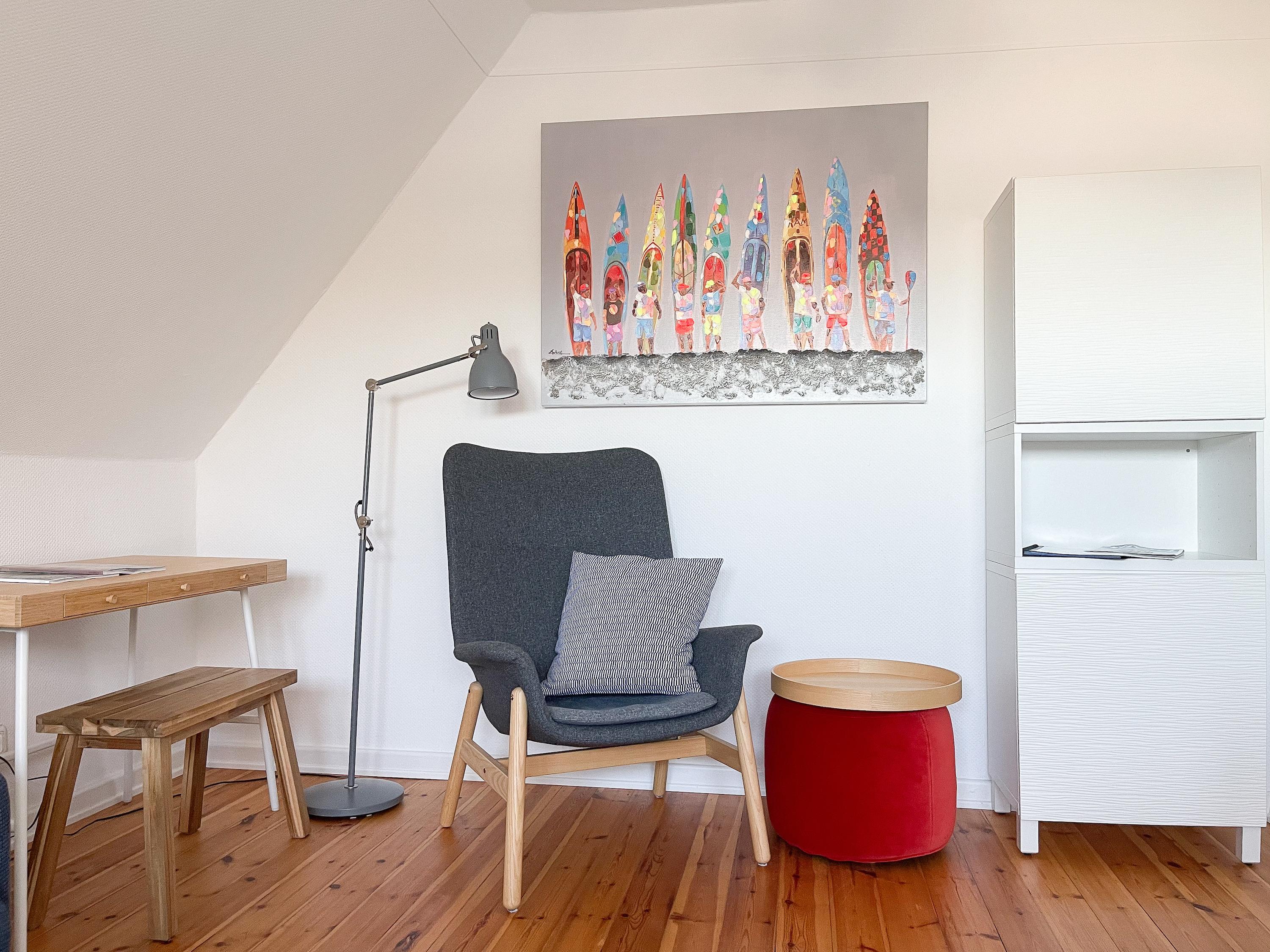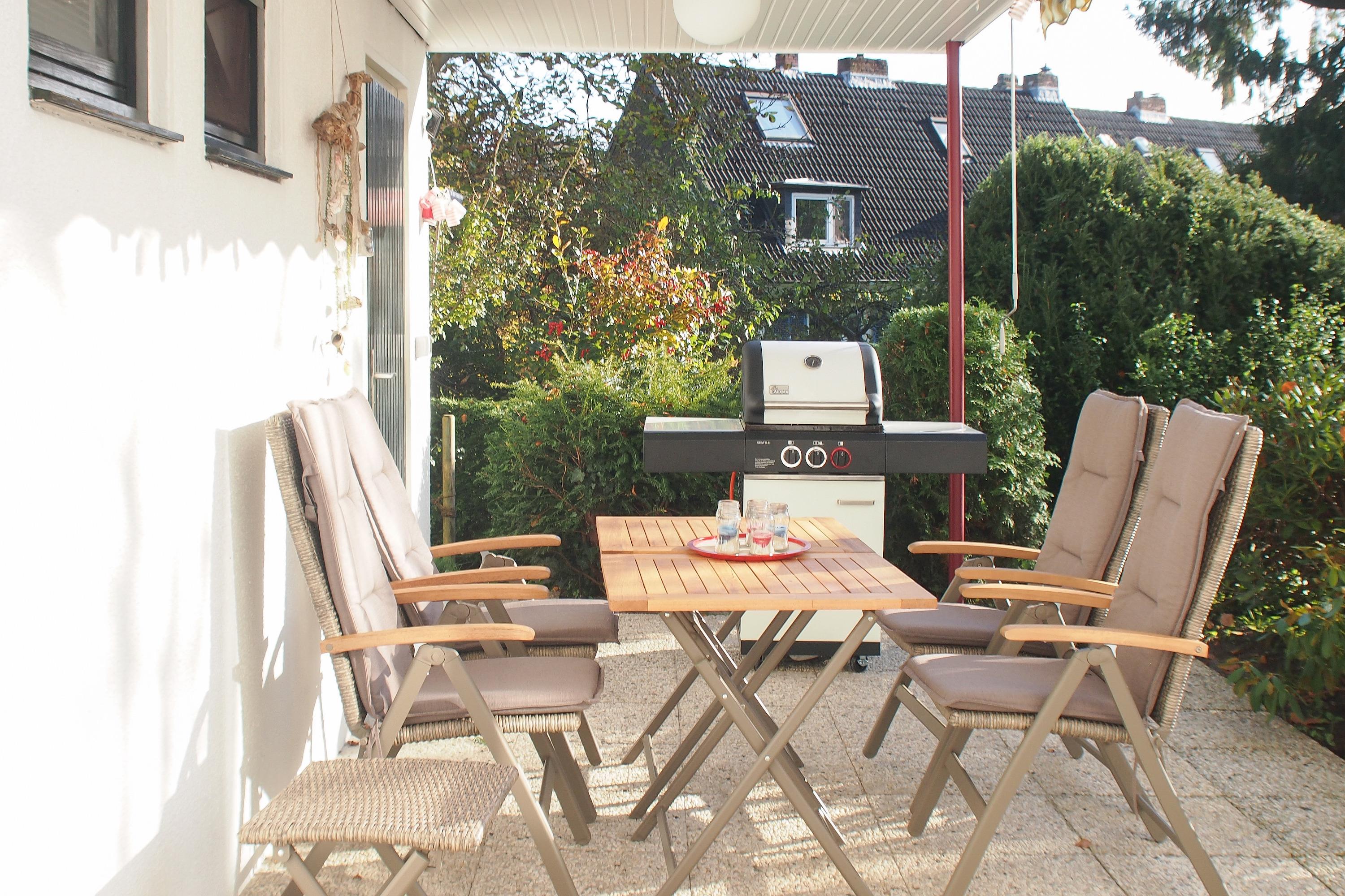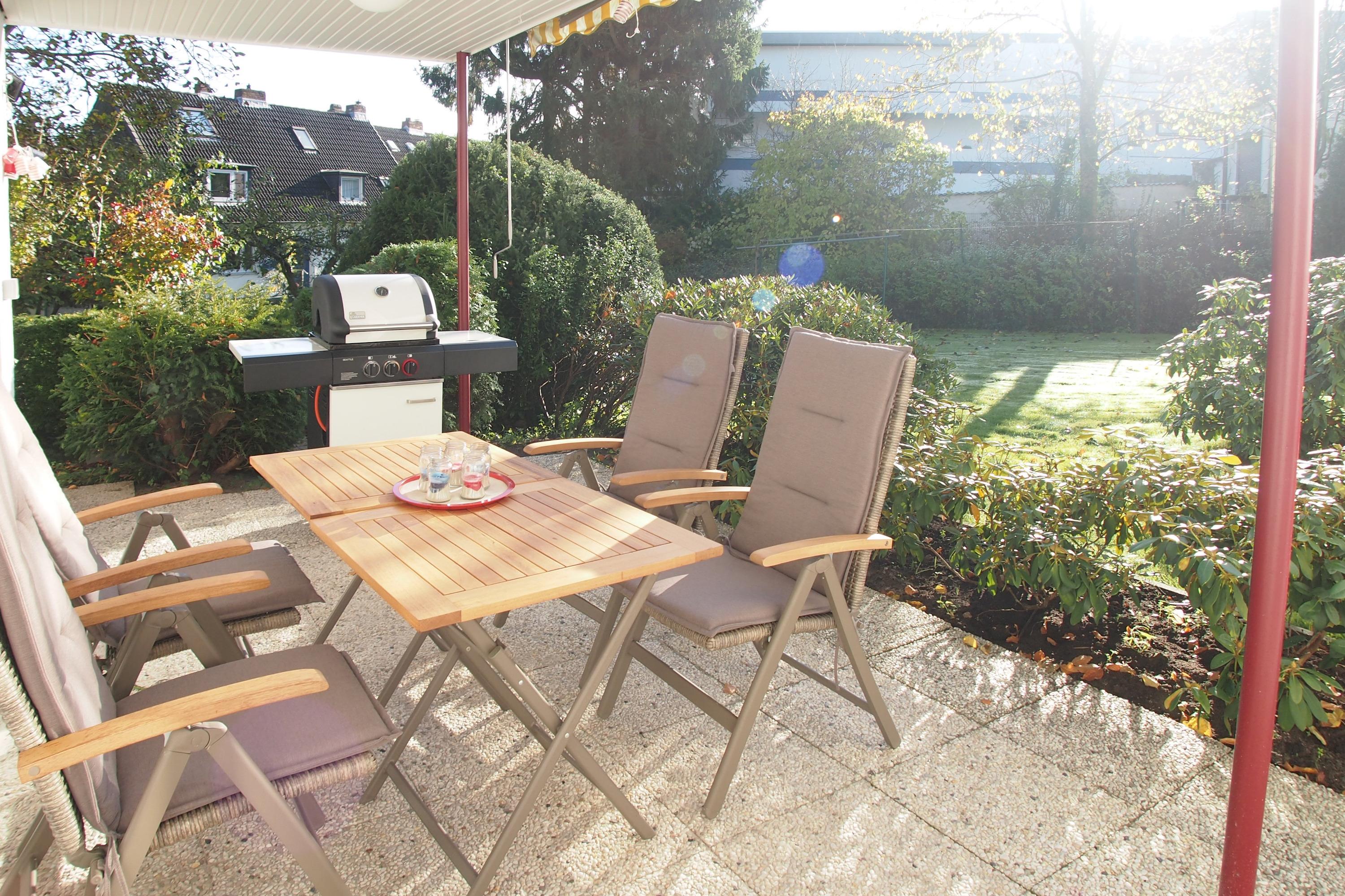 Die liebevoll renovierte Ferienwohnung befindet sich im ersten Obergeschoss eines äußerst charmanten Hauses mit nur 2 Einheiten. Im EG ist eine Praxis für Physiotherapie untergebracht, sodass der gesamte Außenbereich mit großem, eingewachsenen Garten mit Terrasse, Markise, Sonnenliegen, Strandkorb und Gasgrill ausschließlich den Gästen der Ferienwohnung zur Verfügung steht. Zusätzlich steht ein Strandkorb (saisonbedingt Mitte Mai bis Mitte September) zur kostenlosen Nutzung am Strand bereit.