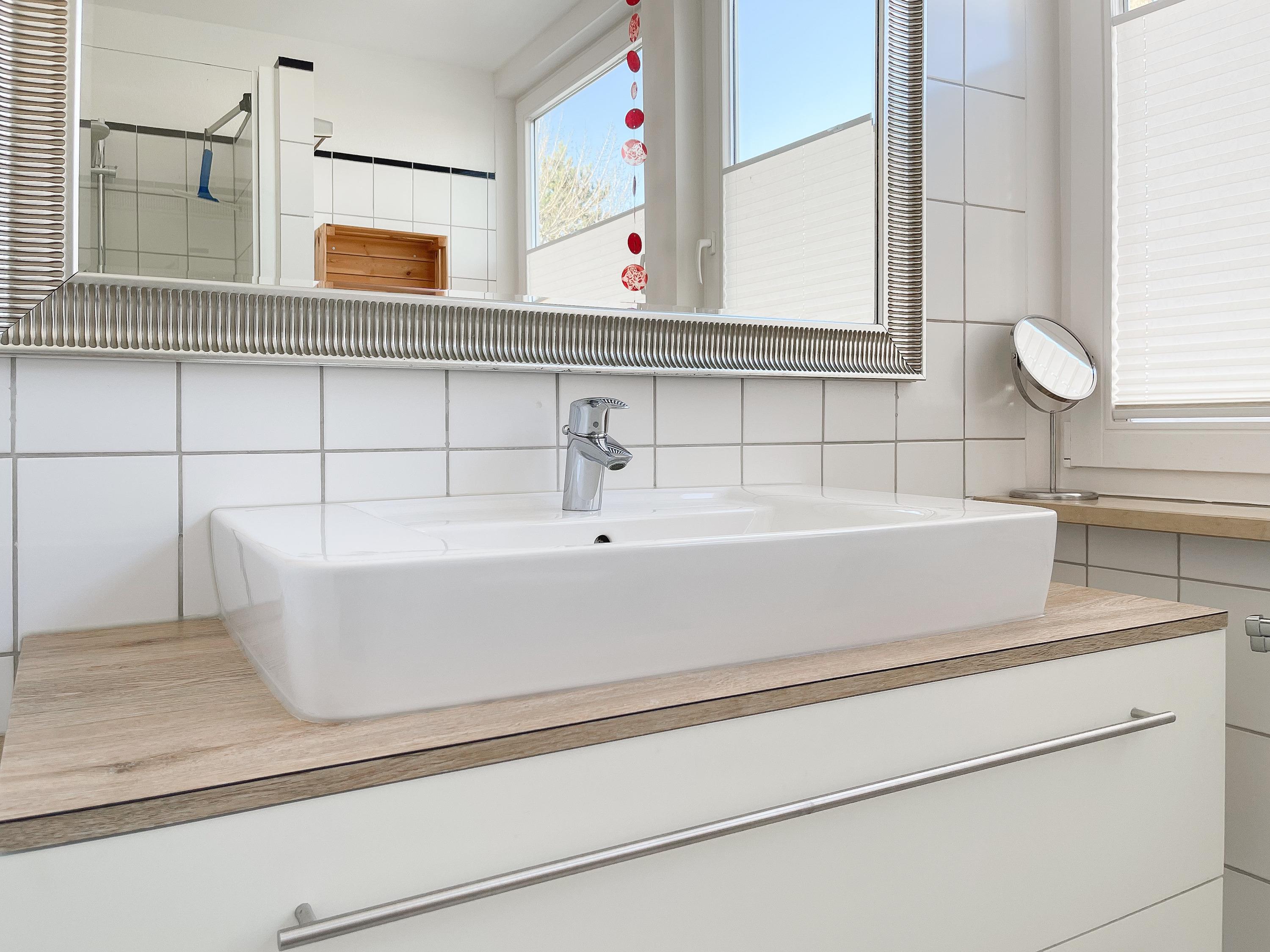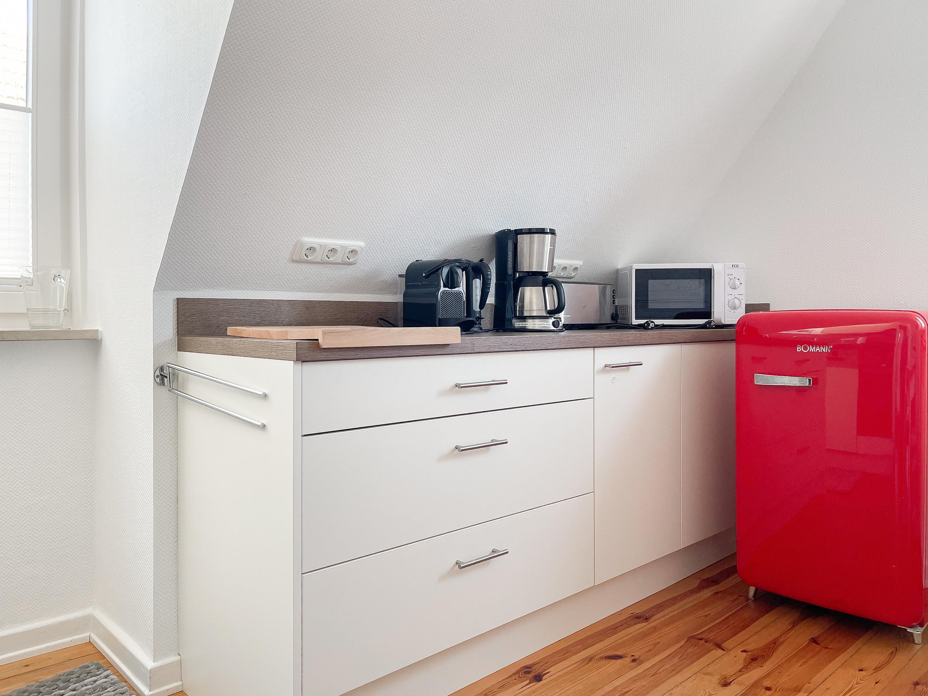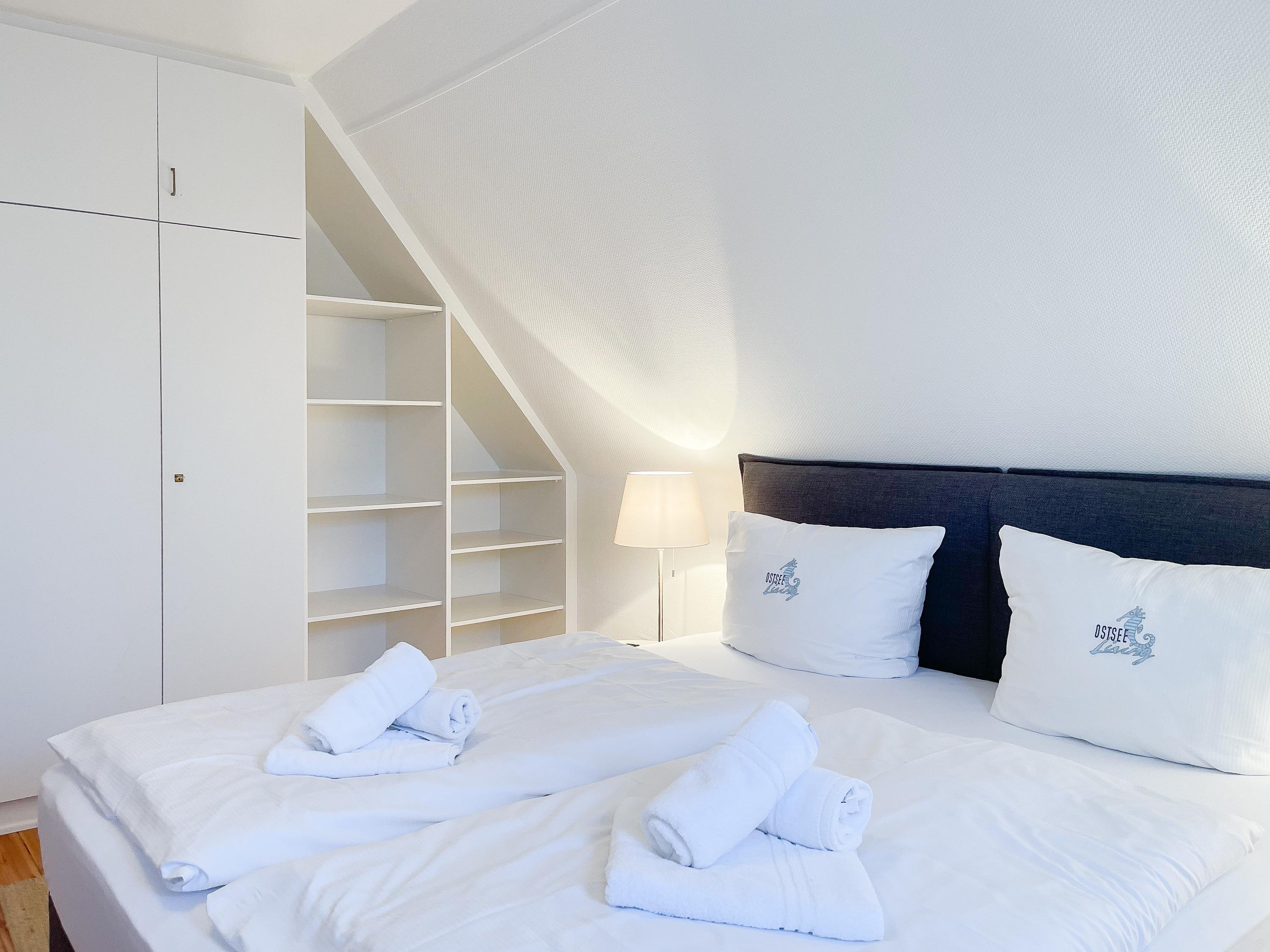 Die Wohnung verfügt über ein großzügiges Schlafzimmer mit Boxspringbett (180x200) und TV, ein helles Duschbad mit viel Tageslicht und ein gemütliches Wohnzimmer mit Schlafsofa (140x200), TV,[nbsp] Bluetoothanlage und WLAN. Die gesamte Einrichtung ist hochwertig und vermittelt eine tolle Strandatmosphäre. Die separate, neue Küche mit Essbereich für 2 - 4 Personen, ist bestens ausgestattet mit Spülmaschine, Backofen und Mikrowelle.