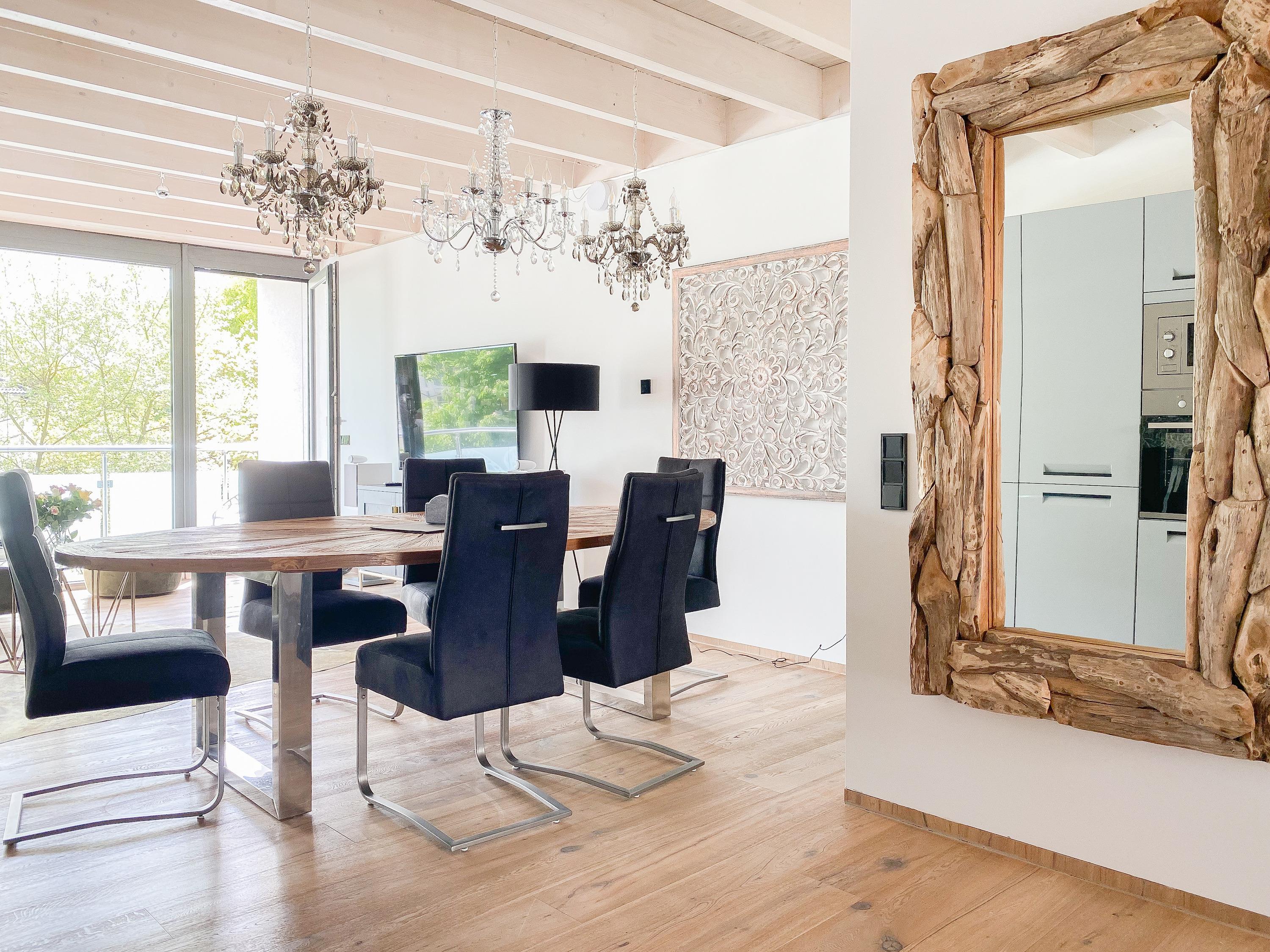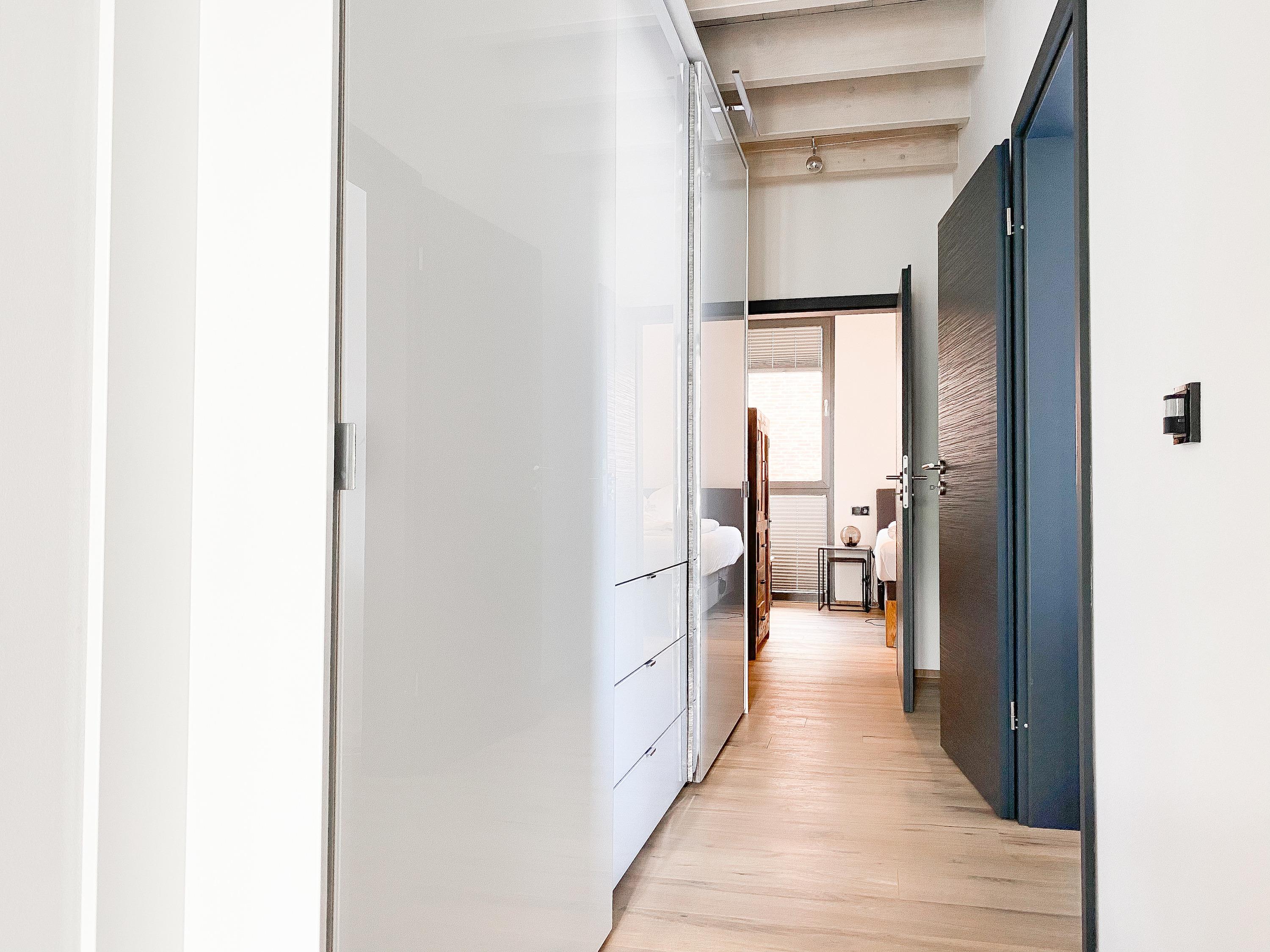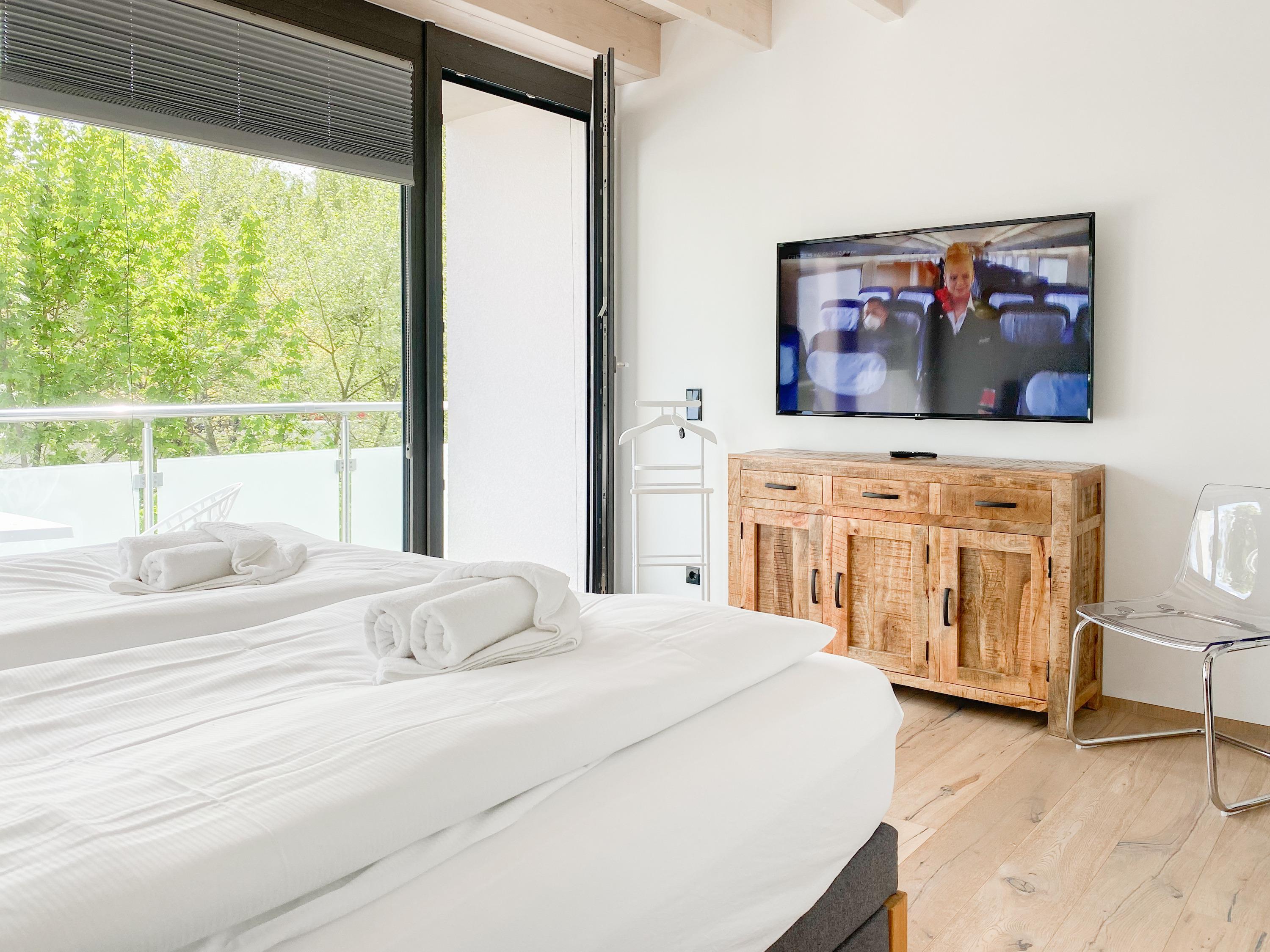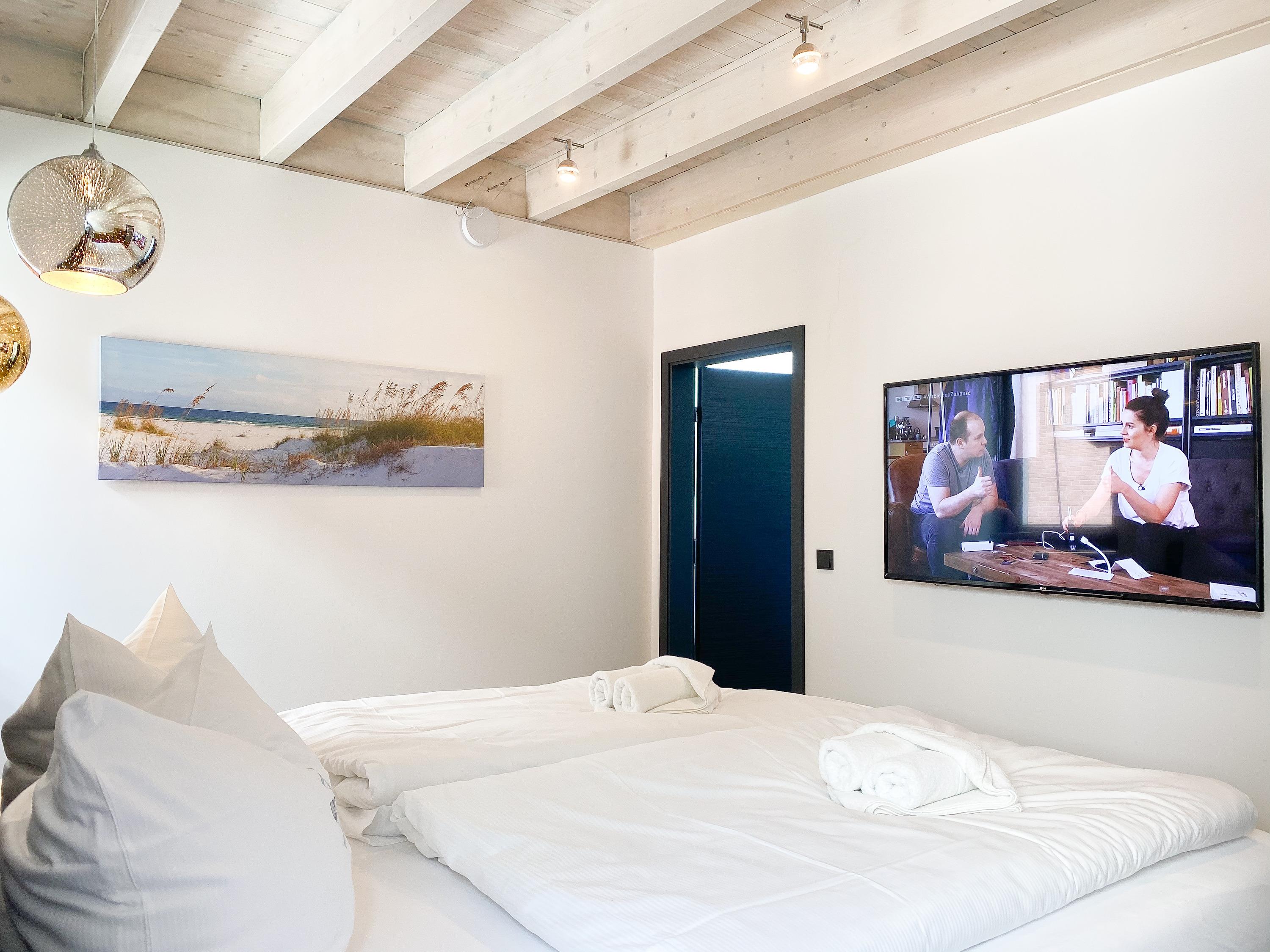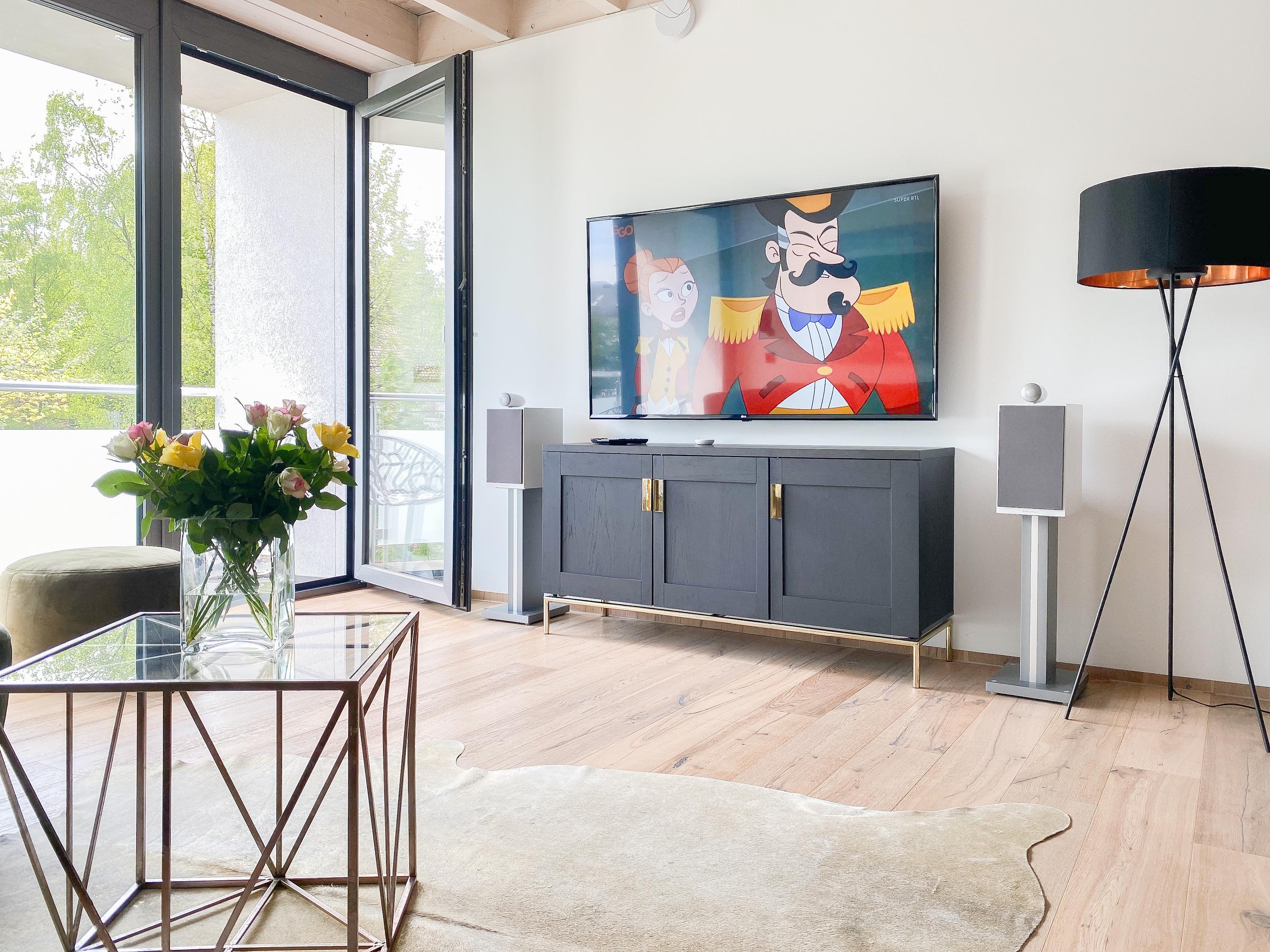 Die Ferienwohnung Meerchenwald 2 liegt im ersten Obergeschoss und verfügt über 3 separate Schlafzimmer mit elektromotorisch verstellbaren Boxspringbetten (180x200), Verdunkelungsplissees und TV, zwei moderne Duschbäder en Suite sowie ein zusätzliches Gäste WC im Eingangsbereich. Im Flur bietet ein großer Einbauschrank ausreichend Stauraum für Ihre Urlaubsgarderobe. Bitte beachten Sie, dass im kleinen Schlafzimmer das Bett nur über das Fußende zu erreichen ist. Der großzügige Wohnbereich mit riesigen Glasfronten zum Südbalkon verfügt über ein hochwertiges Loungesofa, TV, DVD-Player und Surround Anlage. Selbstverständlich steht Ihnen WLAN zur kostenlosen Nutzung zur Verfügung. Der anschließende Essbereich ist für 6 Personen eingerichtet und die perfekt ausgestattete, hochmoderne Wohnküche lässt garantiert keine Wünsche offen.