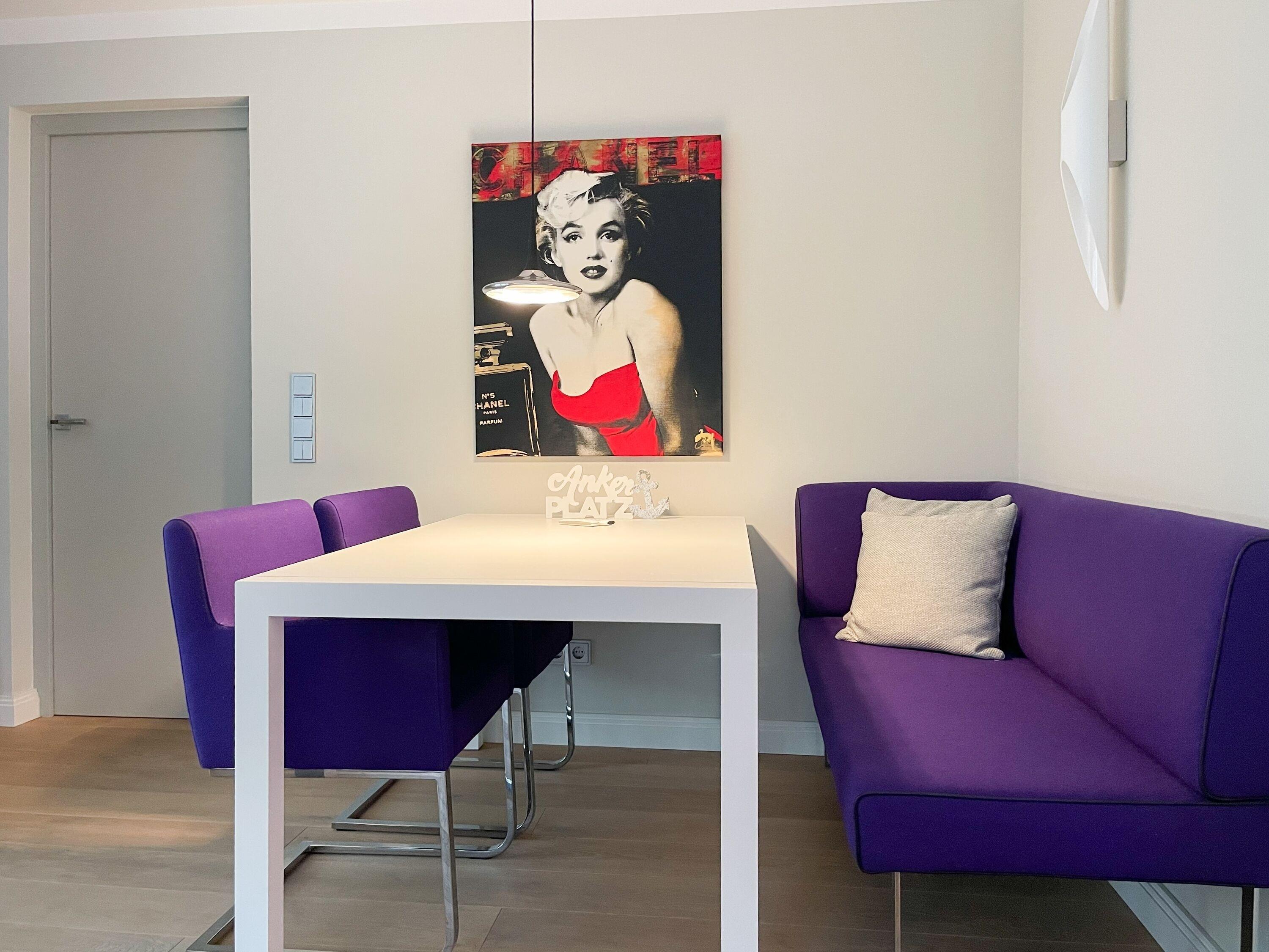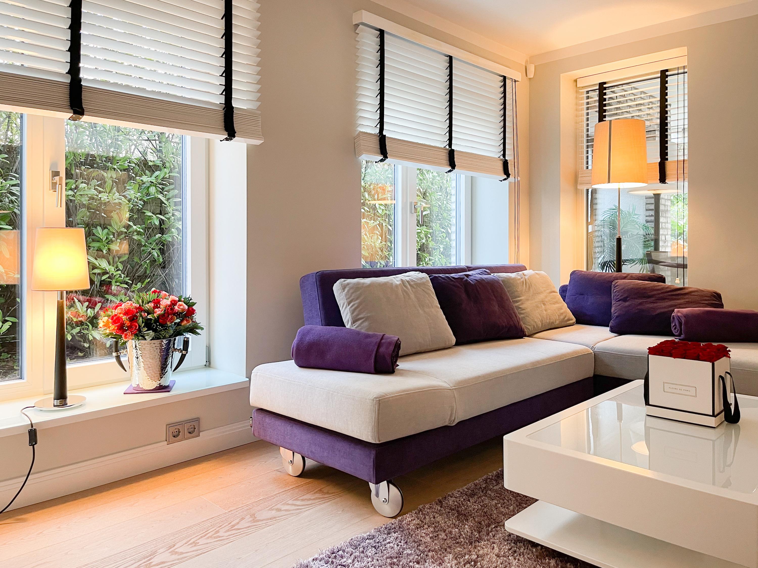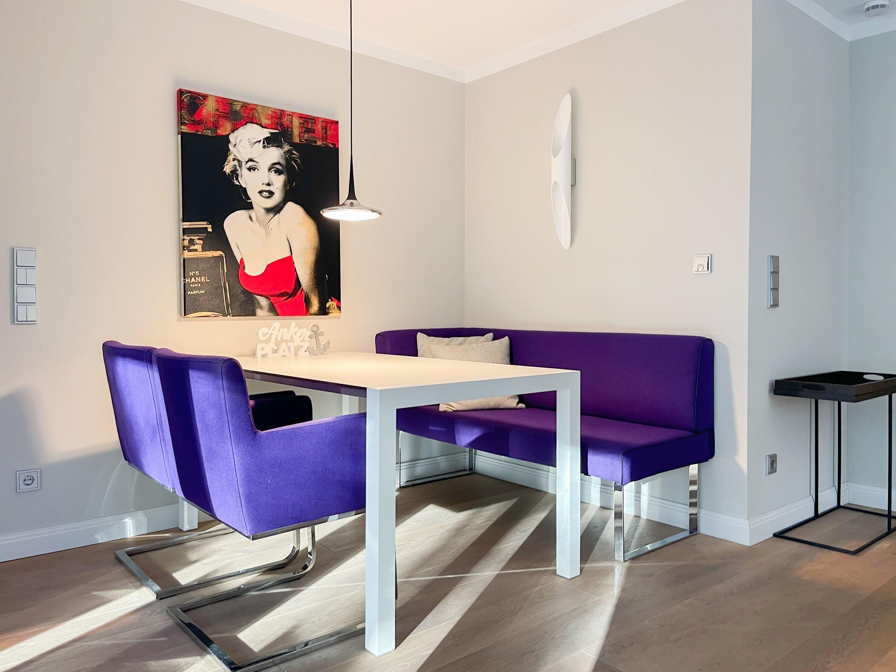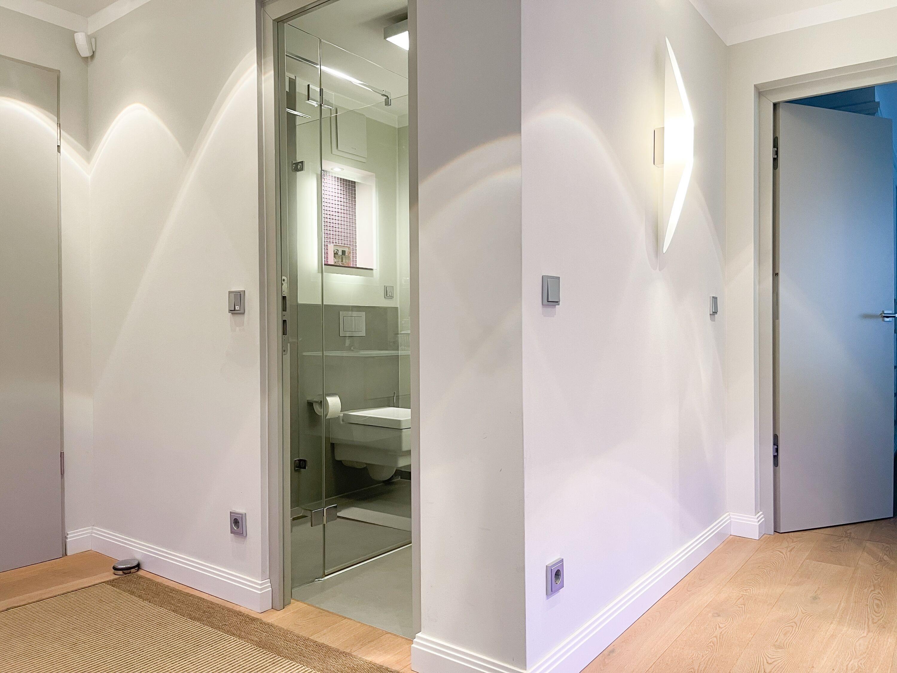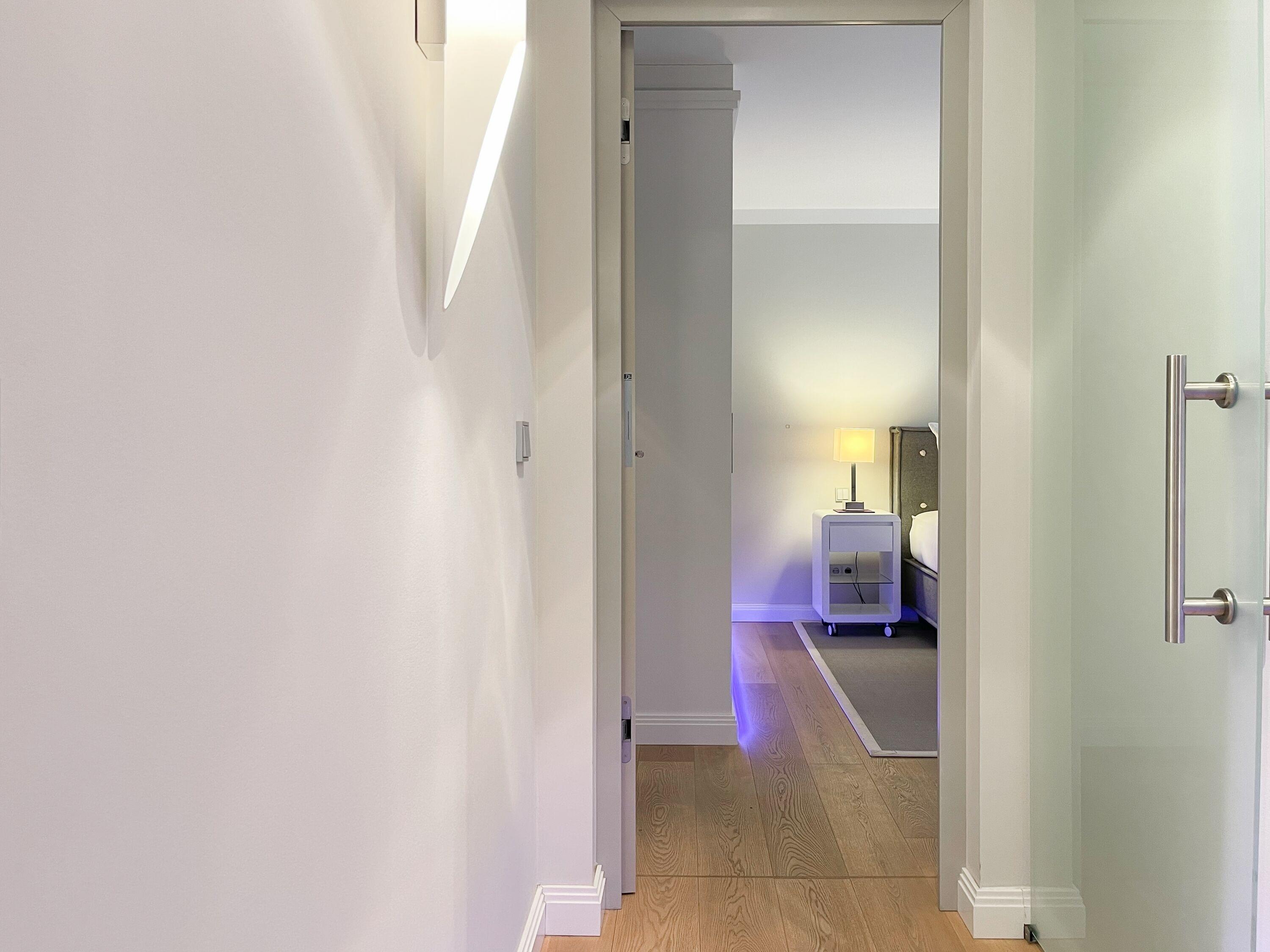 Die Wohnung bietet zeitgemäßen Luxus auf 85 qm Wohnfläche für 4 Personen und jeglichen Komfort wie Fußbodenheizung, Echtholzböden und bodentiefe Fensterelemente für ein offenes Raumgefühl. Die äußerst hochwertige Ausstattung der Wohnung gewährleistet einen respektablen Wohnstandard in einem herrlichen Ambiente. Es erwartet Sie ein offener, großzügig gestalteter Wohn-/Essbereich mit Blick auf die umlaufende, teilweise überdachte XL-Terrasse in Südausrichtung, die mit einer Markise ausgestattet ist und ausreichend Privatsphäre bietet. Die Highend Küche in perfekter Ausstattung wird Hobbyköche begeistern. Bei der Anordnung der zwei separaten Schlafzimmer, ausgestattet mit Boxspringbetten (180x200) und TV, wurde viel Wert auf Privatsphäre gelegt, indem die Räume vollständig durch die Wohnbereiche getrennt wurden. Die Fenster des einen Schlafzimmers sind mit blackout Vorhängen versehen, das andere mit Raffstores. Beide Schlafzimmer haben einen Zugang zur umlaufenden Terrasse. Es stehen zwei moderne, hochwertige Bäder zur Verfügung, ein Duschbad mit Walk In Dusche und ein Wannenbad ensuite. Zur technischen Ausstattung gehören unter anderem 3 TV, eine Sonos Soundbar, ein Radio und WLAN steht selbstverständlich zur Verfügung.
