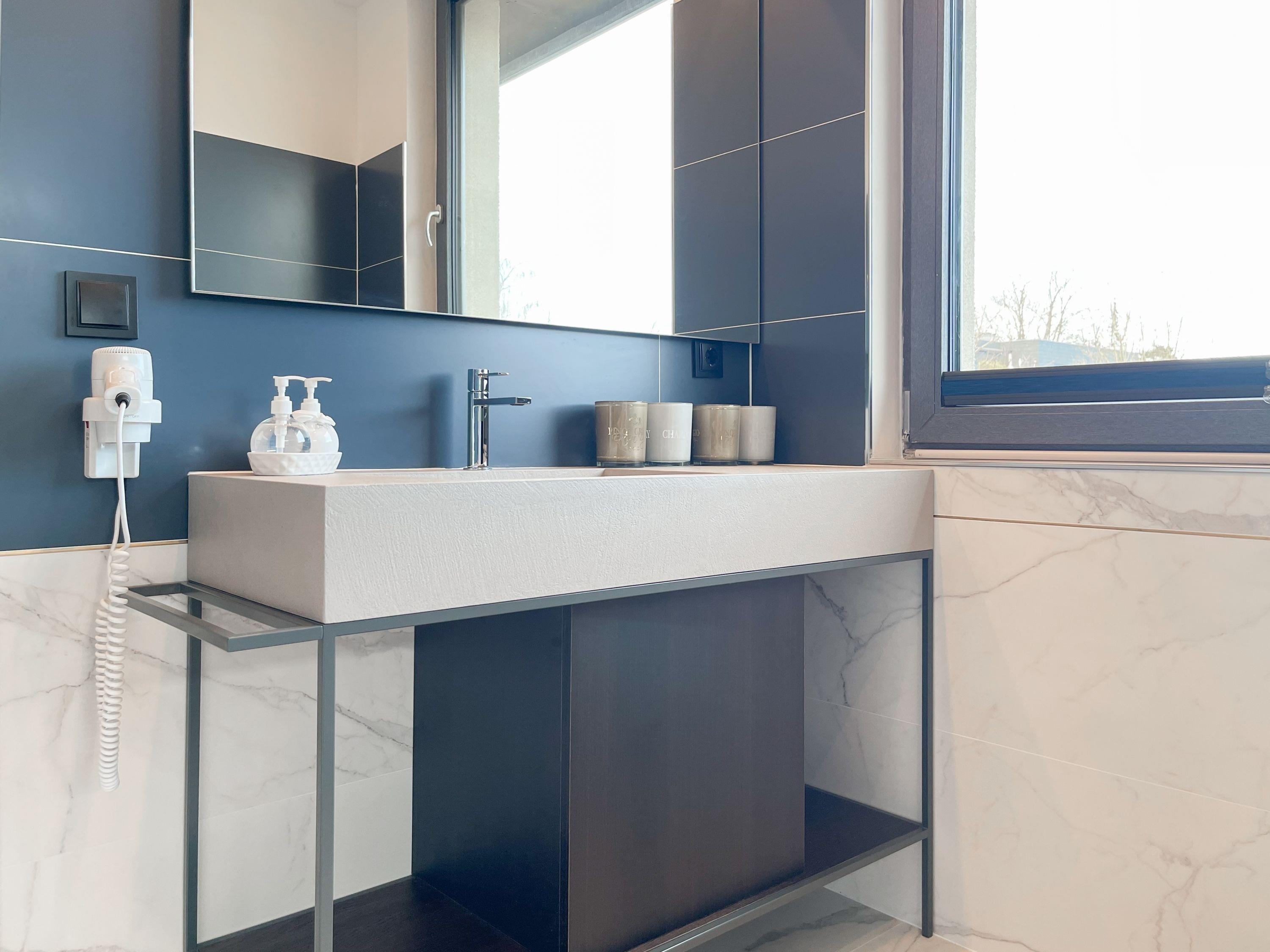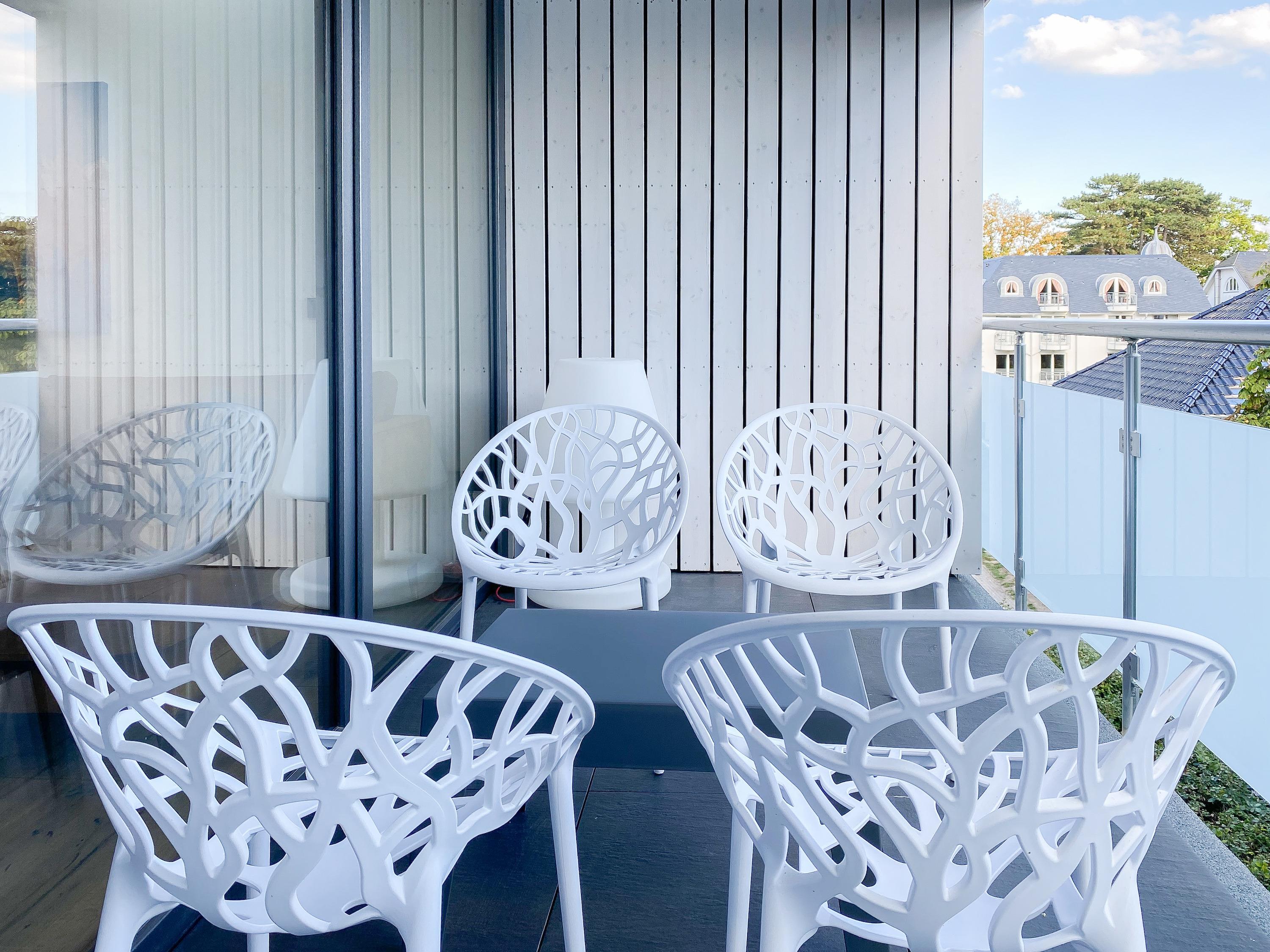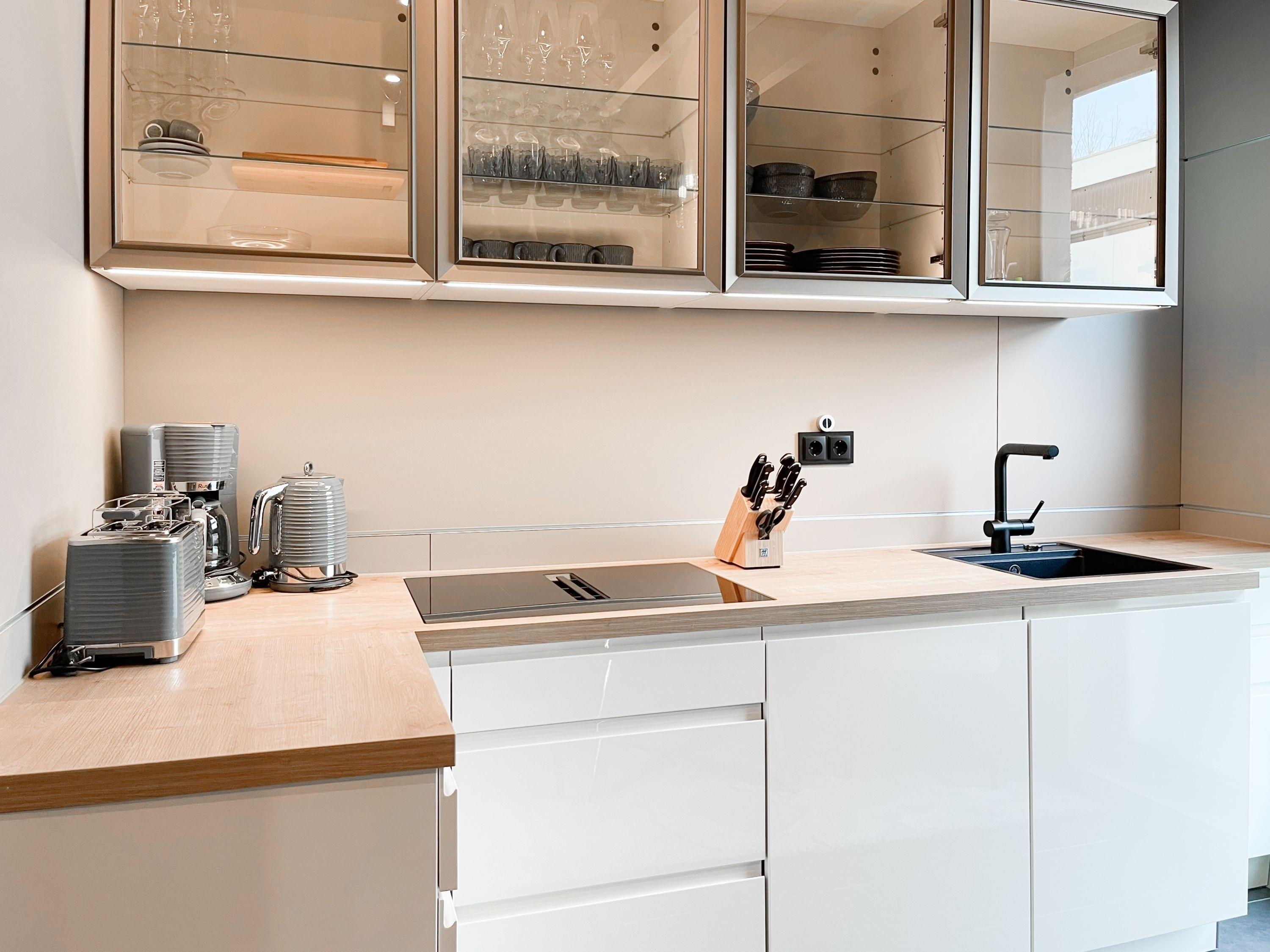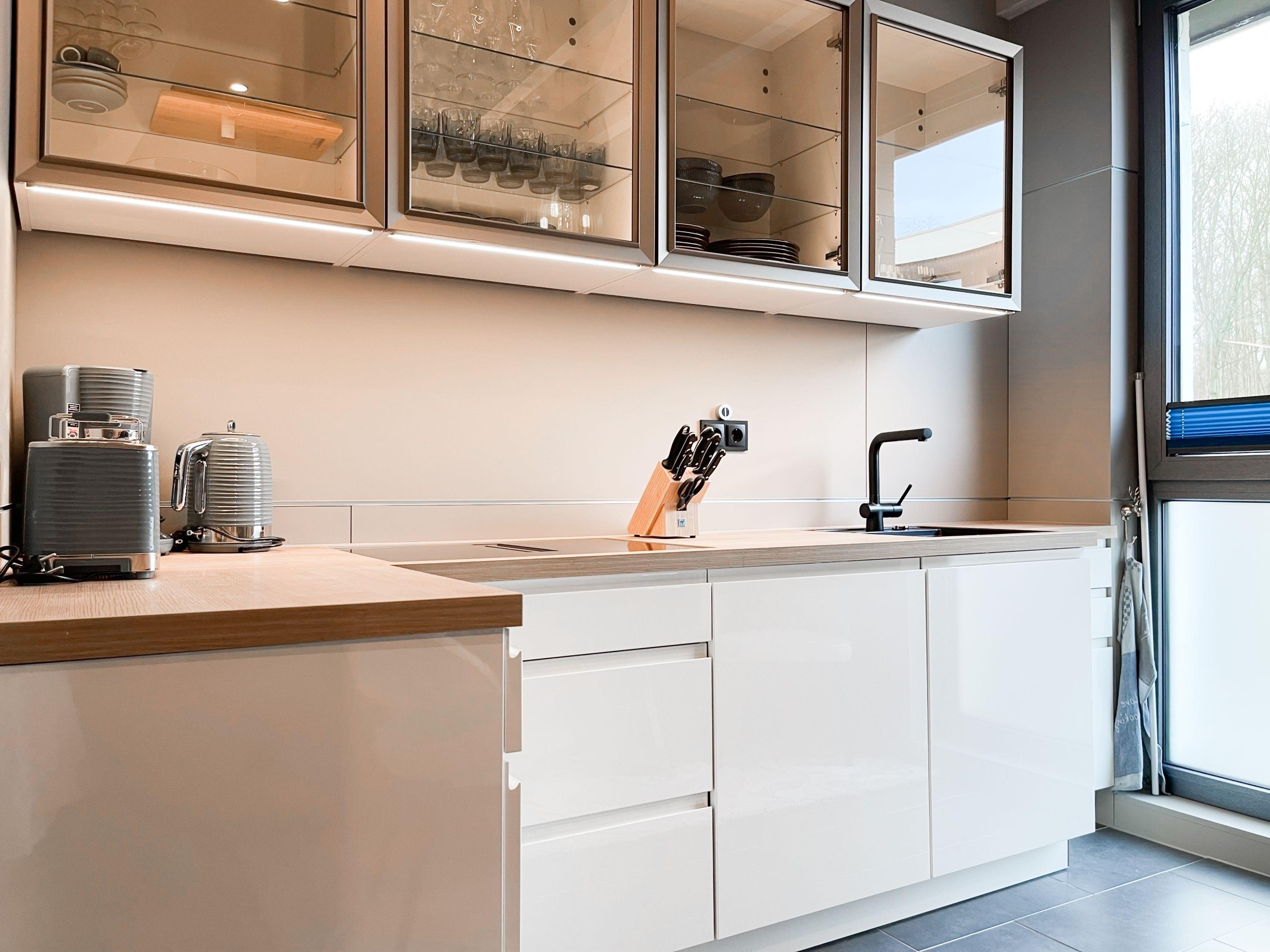 Das traumhafte Penthouse gewährleistet einen hohen Wohnstandard in einem herrlichen Ambiente und bietet jeglichen Komfort für 4 Personen, um einen entspannten Urlaub in Strandnähe zu verleben. Das Penthouse befindet sich im 2. Obergeschoss und verfügt über zwei separate Schlafzimmer mit Boxspringbetten (180x200 und 160x200), TV und teilweise Plissees zur Abdunkelung der Räumlichkeiten (keine vollständige Verdunkelung) sowie ein exklusives Bad mit Walk In Dusche, das sich zwischen den beiden Schlafzimmern befindet. Zusätzlich steht ein separates Gäste WC zur Verfügung. Der großzügige Wohnbereich mit bodentiefen Fensterflächen zum Südbalkon, ist mit einem gemütlichen Sofa, 2 Sesseln und TV ausgestattet. WLAN steht selbstverständlich zur kostenlosen Nutzung zur Verfügung. Die hochmoderne Wohnküche ist bestens ausgestattet. Gekocht wird in der modernen Wohnküche in bester Ausstattung, die mit einen stylischen Sofa, Tisch und 3 Stühlen eingerichtet ist und nicht nur zum Essen, sondern auch zum gemütlichen Beisammensein einlädt.