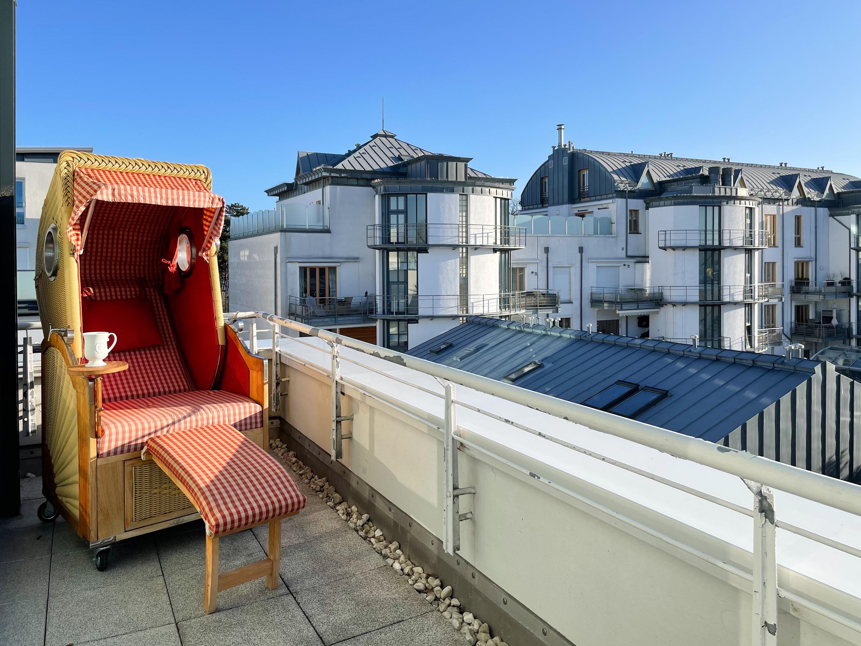 Penthouse mit 94 m² in Timmendorfer Strand, nahe Ostsee und Strand, mit drei Dachterrassen, Tiefgarage und exklusivem Fahrstuhlzugang.