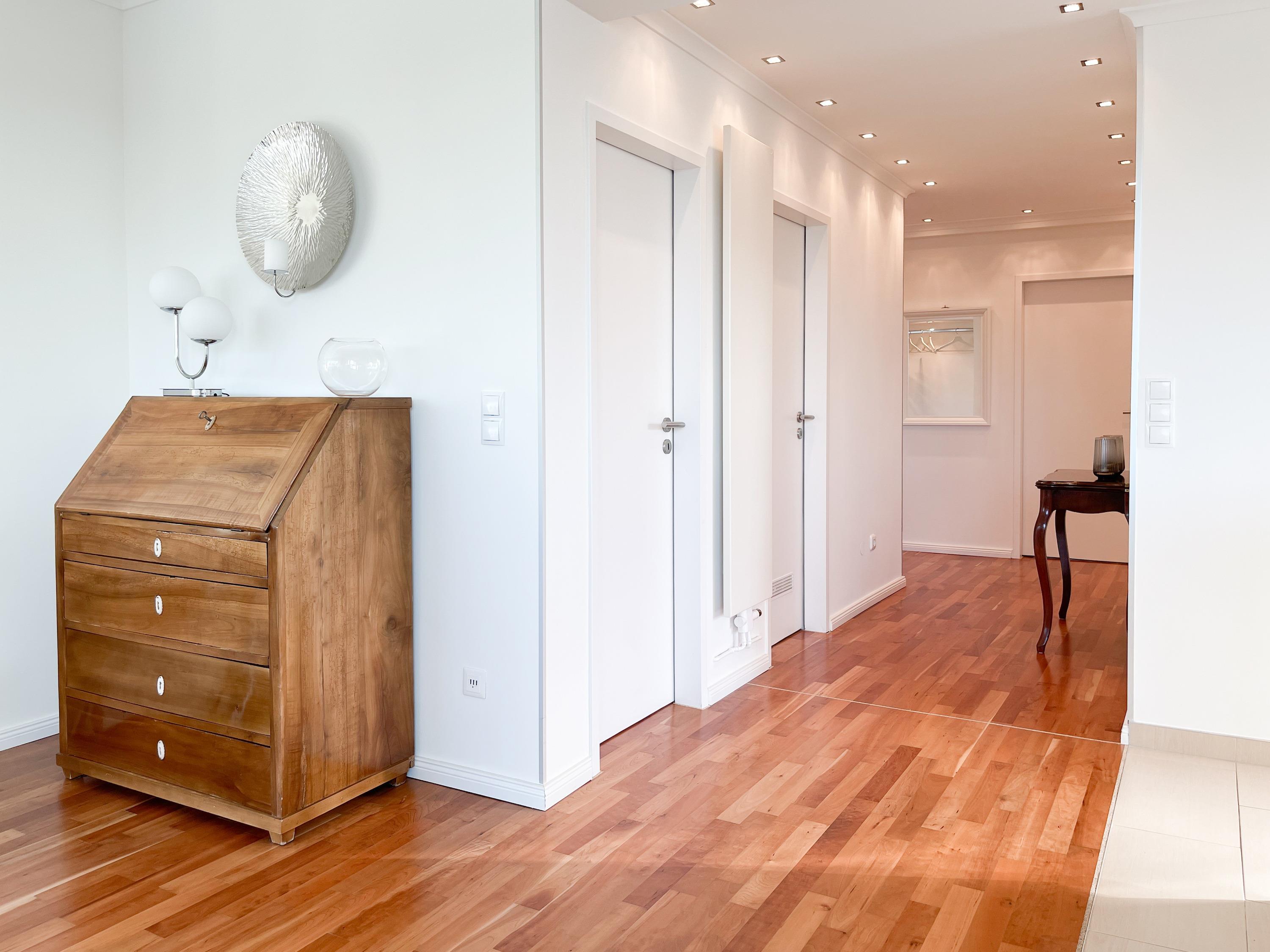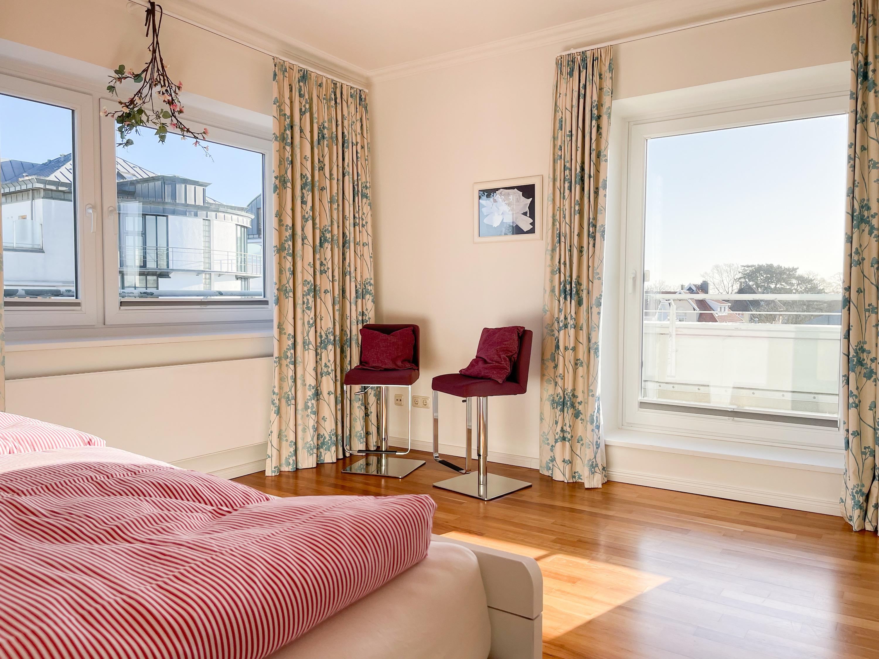 Das Penthouse Sun wird seinem Namen gerecht, denn es bietet helle, sonnige Räumlichkeiten und auf 3 Dachterrassen rund um das Penthouse sind von morgens bis abends sowohl sonnige als auch schattige Plätze zu finden. Mit dem Fahrstuhl gelangen Sie, ganz privat über den Wohnungsschlüssel, direkt zum Eingang der Wohnung. Dieser Bereich ist für die anderen Bewohner nicht zugänglich.