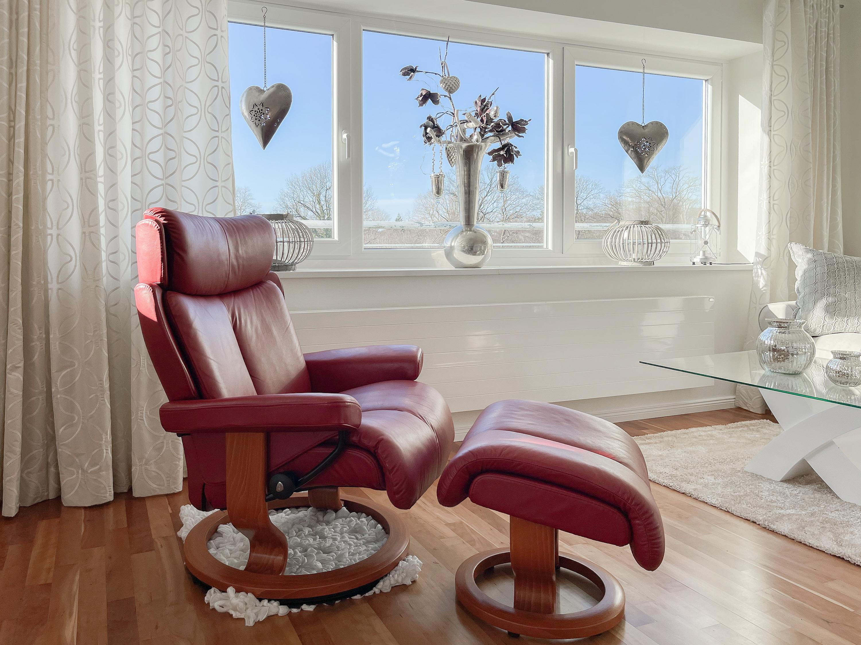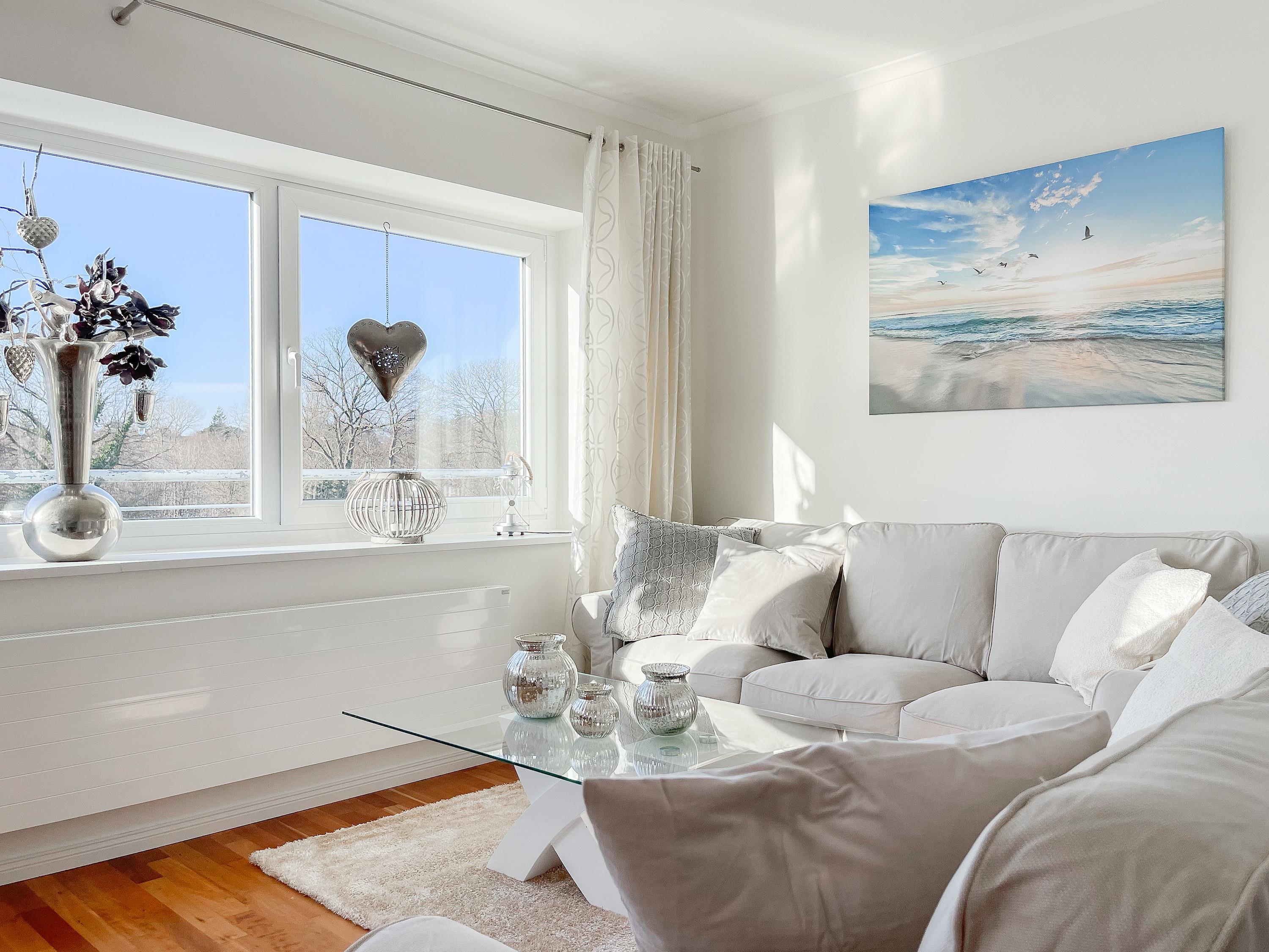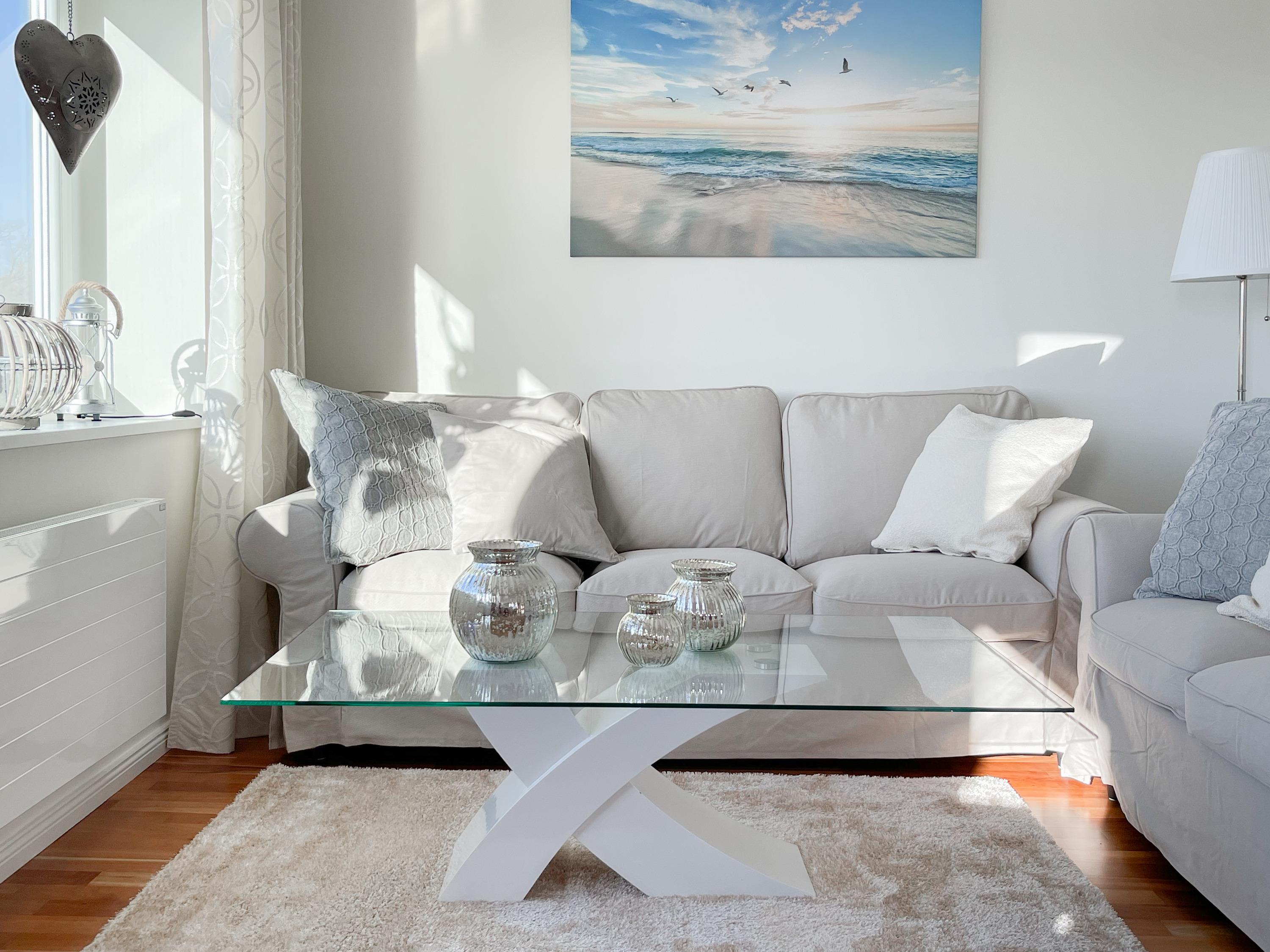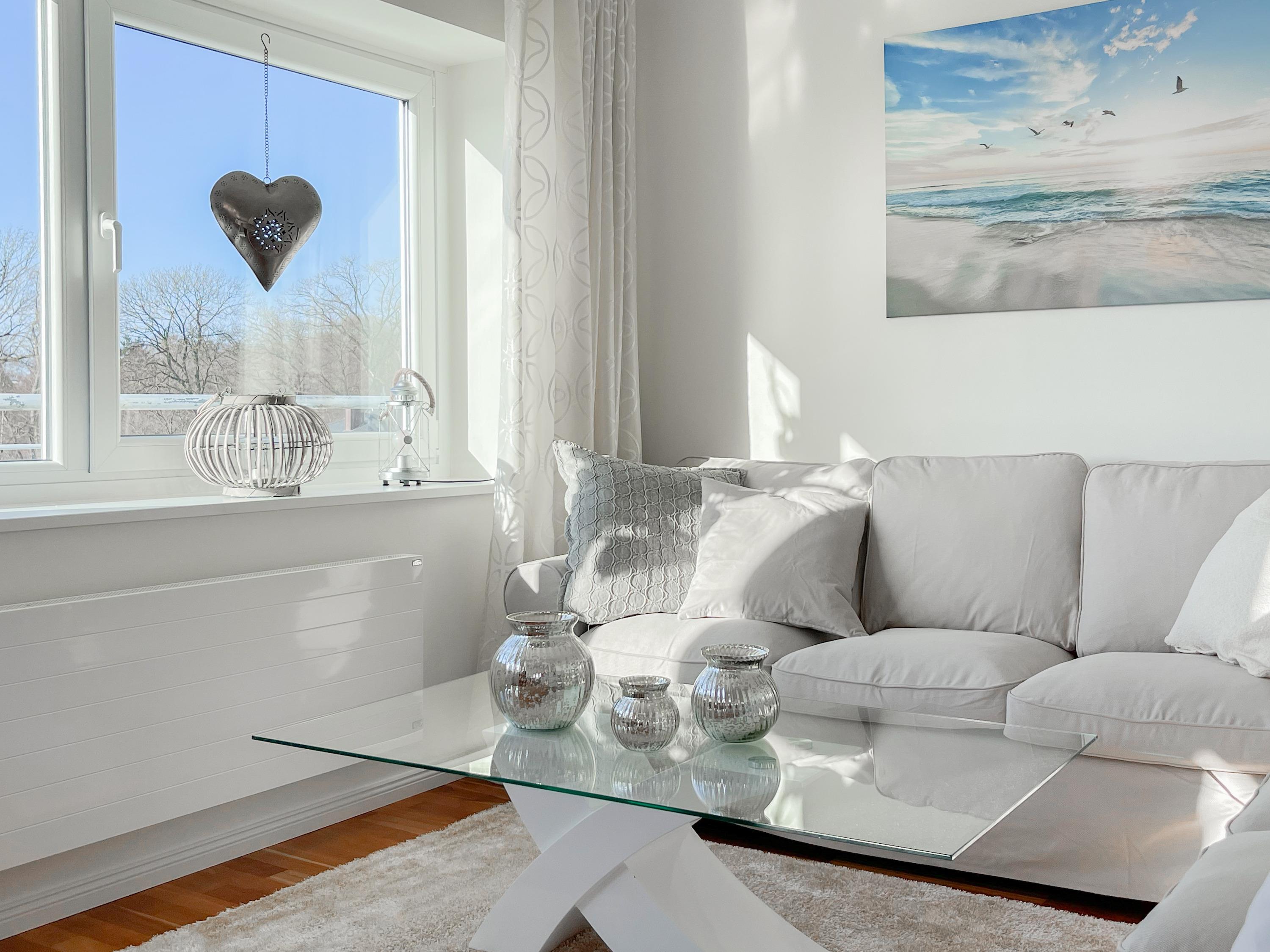 Mittelpunkt der Wohnung bildet die gemütliche Wohnküche mit integriertem Essbereich und Zugang auf die kleine Dachterrasse in westlicher Ausrichtung. Genießen Sie hier die letzten Sonnenstunden bei einem Glas Wein mit herrlichem Blick auf den Kurpark. Der anschließende Wohnbereich ist mit zwei Sofas, TV und einem bequemen Relaxsessel ausgestattet. Es gibt 2 separate Schlafzimmer, die beide mit Doppelbetten (200x200 und 180x200), Kleiderschränken mit ausreichend Stauraum sowie Verdunkelungsplissees und zusätzlichen Verdunkelungsvorhängen ausgestattet sind.[nbsp] Schlafzimmer 1 verfügt zusätzlich über elektromotorisch verstellbare Lattenroste (200x200) und Zugang auf die große Dachterrasse 2 in südlicher Ausrichtung mit Gartenmöbeln, Strandkorb (für 1 Person) und kleinem Meerblick. Schlafzimmer 2 mit einem weiteren TV bietet den Zugang zu Dachterrasse 2 in nordwestlicher Ausrichtung, ebenfalls mit kleinem Meerblick. Das großzügig angelegte Bad verfügt über Badewanne, Dusche, Waschtisch und einen kombinierten Waschtrockner. Ein separates Gäste WC ist ebenfalls vorhanden. WLAN steht selbstverständlich zur kostenlosen Nutzung zur Verfügung.