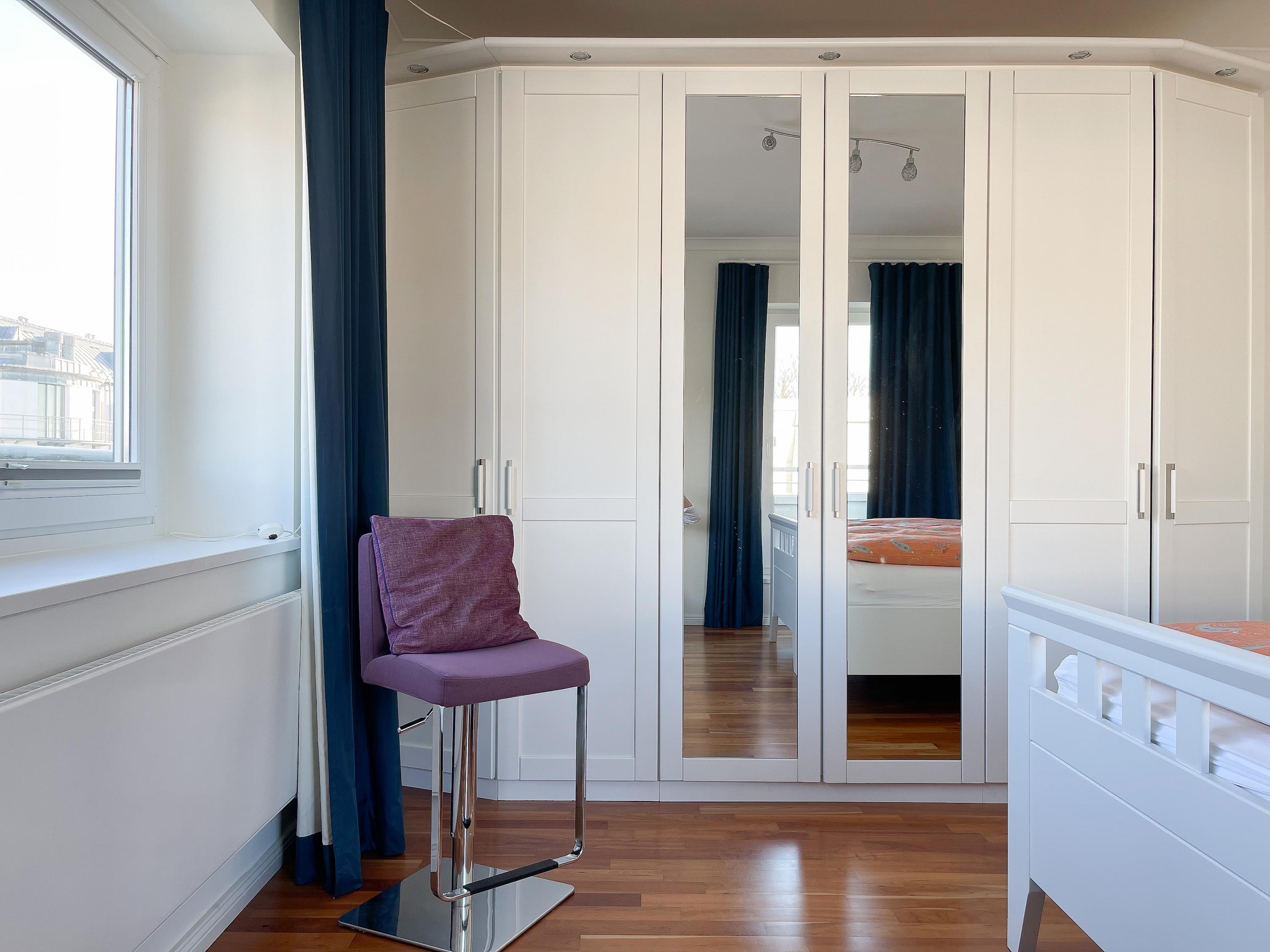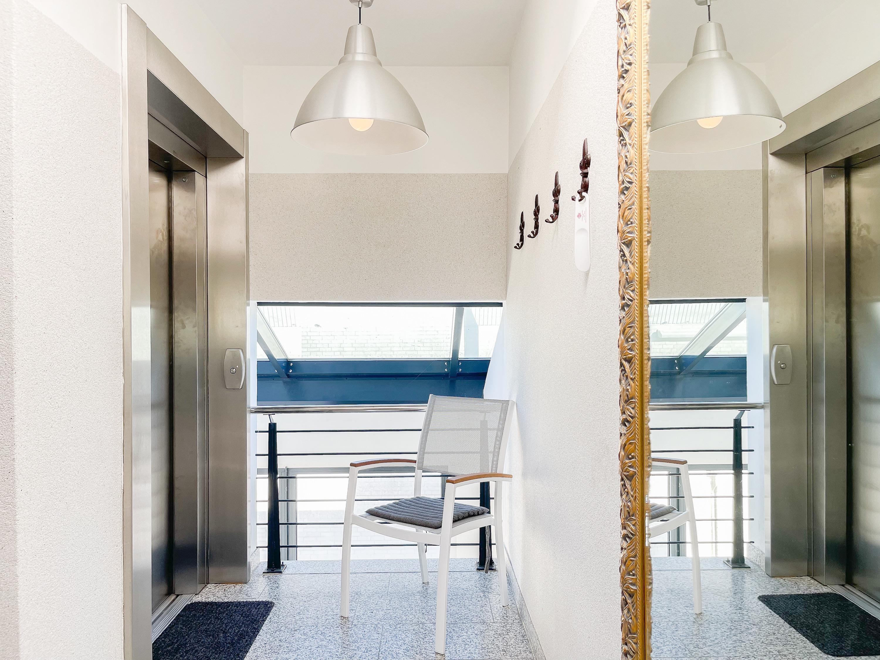 Ein fester Tiefgaragenstellplatz gehört zum Penthouse. Der Fahrstuhl befindet sich neben dem Stellplatz, sodass Urlaubsgepäck auf kurzem Wege bequem in die Wohnung gelangt. Ein abschließbarer Fahrradraum mit Lademöglichkeit für E-Bikes steht ausschließlich den Gästen des Penthouses zur Verfügung.