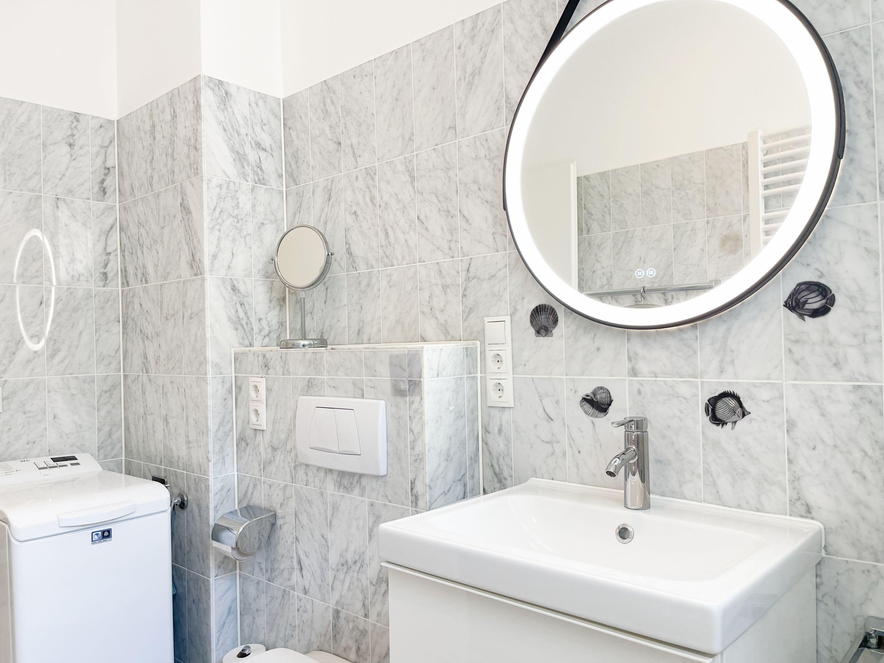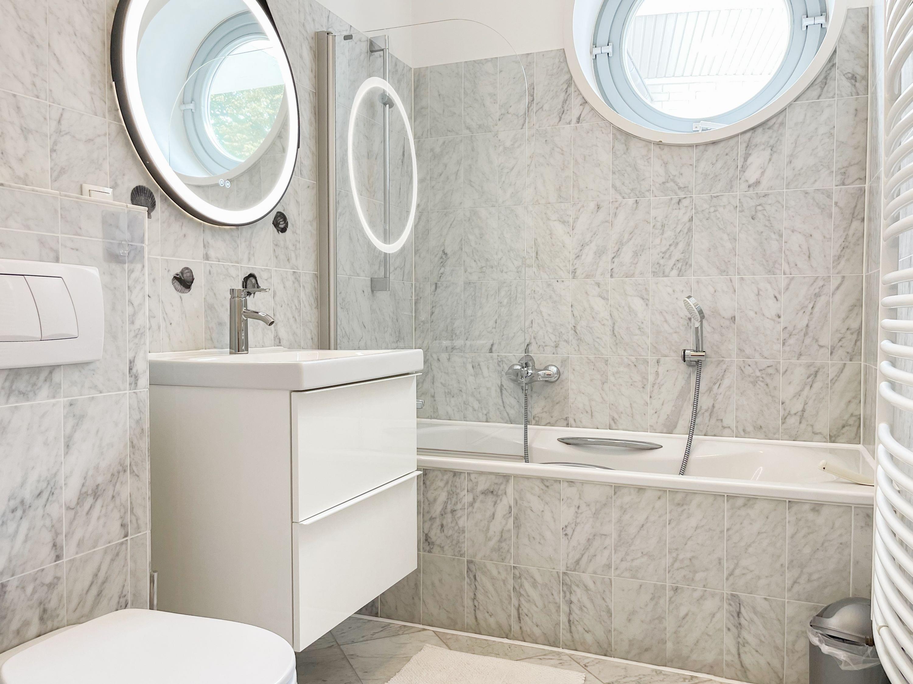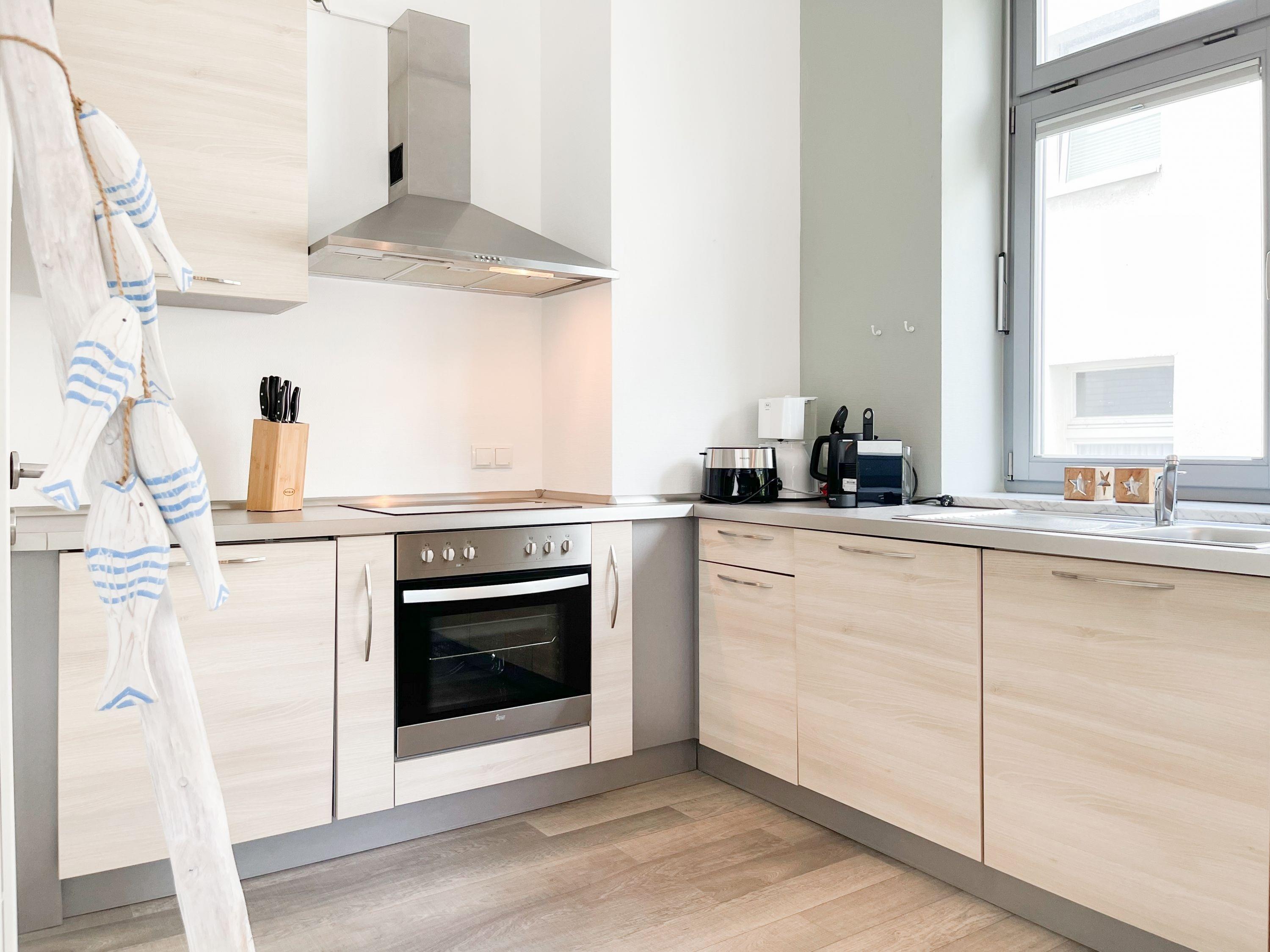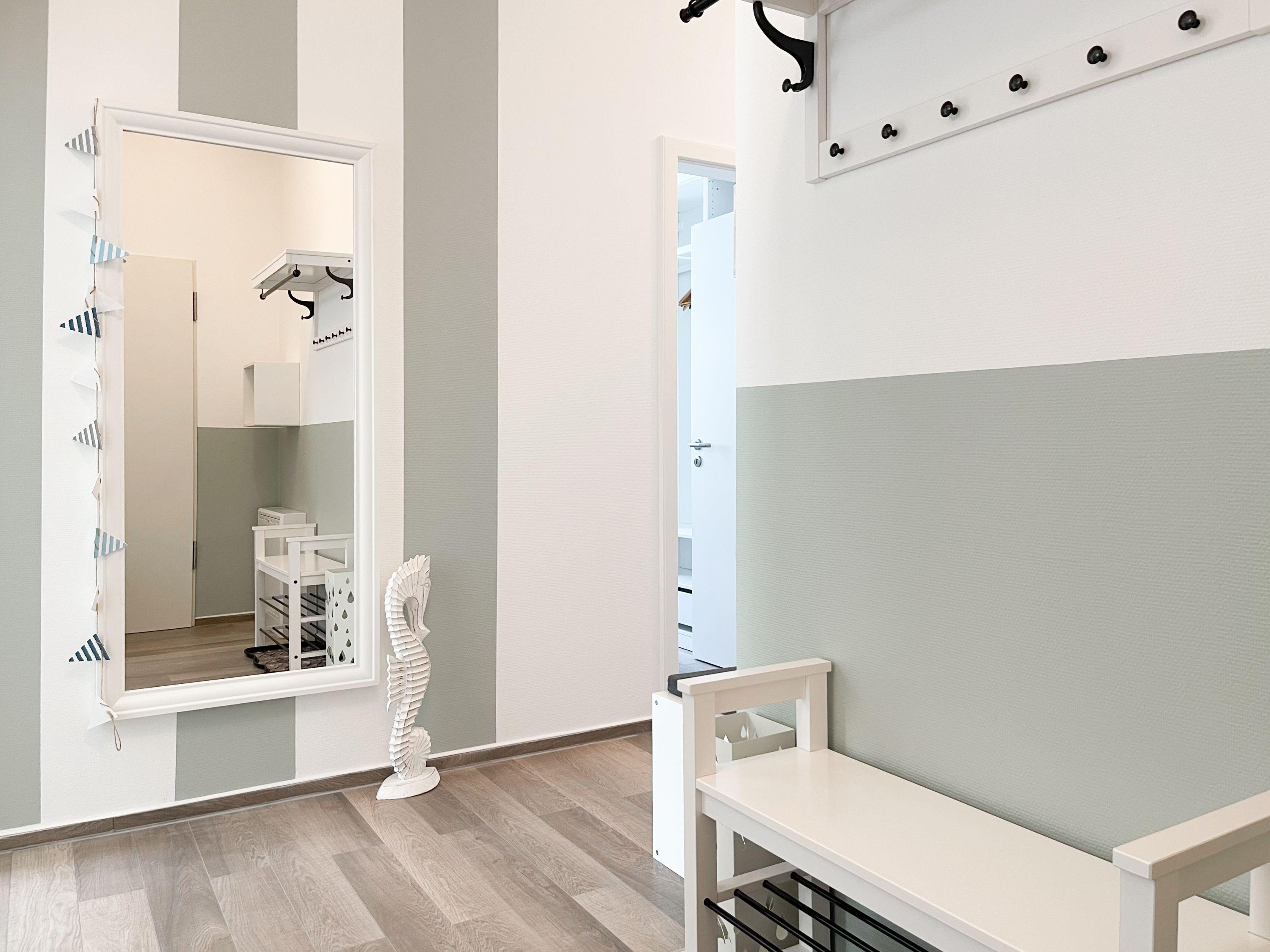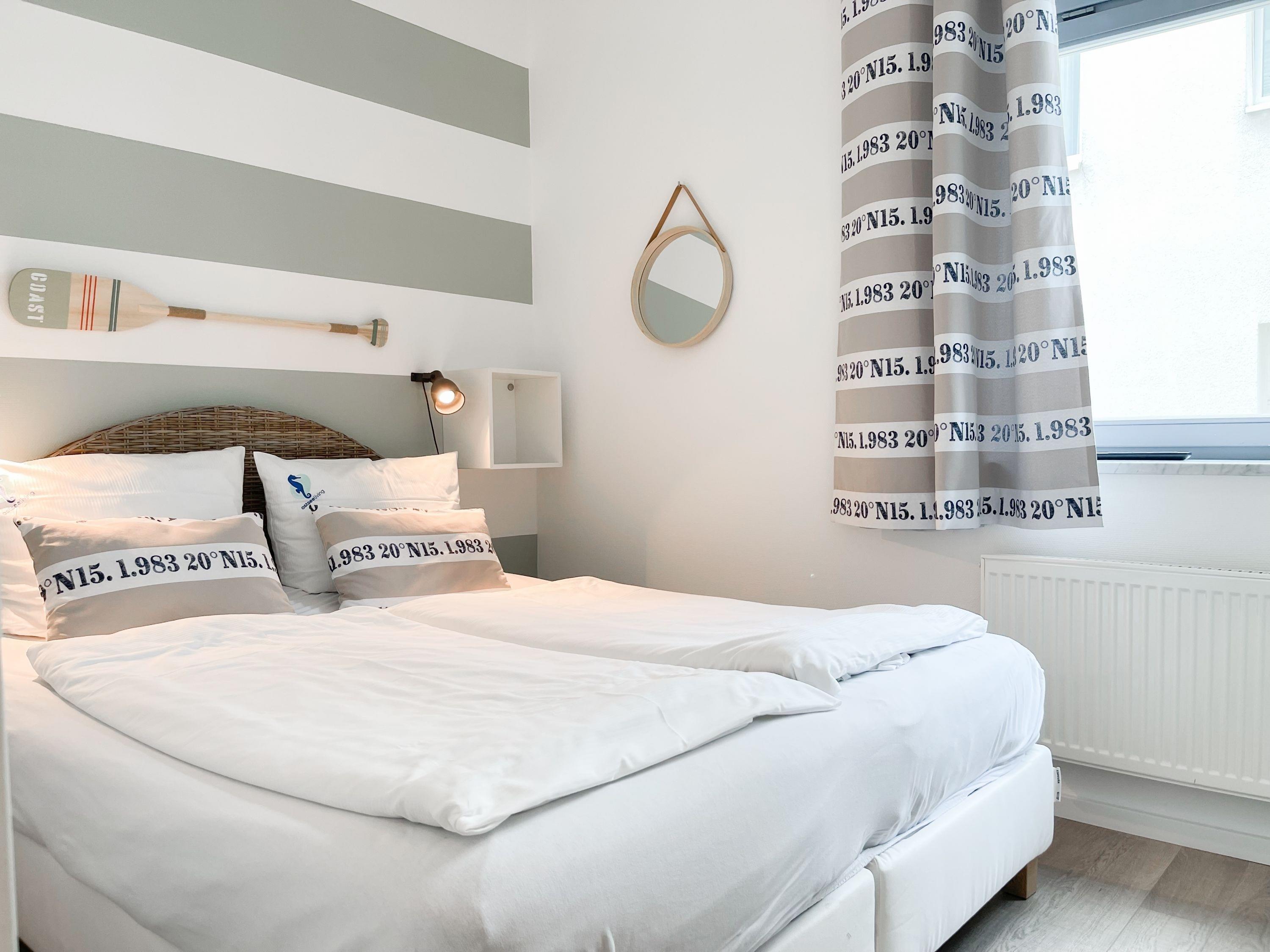 Die Ferienwohnung Promenaden Loge befindet sich in der ersten Etage und bietet auf 75 qm mit 2 Schlafzimmern ausreichend Raum für 4 Personen, um einen entspannten Urlaub zu verleben, das Auto kann getrost stehen bleiben. Besonders hervorzuheben ist, dass die Wohnung über 2 Balkone verfügt, einer in Ostausrichtung vor dem Wohnbereich zur Seeseite und einer in Westausrichtung vor dem Hauptschlafzimmer nach hinten heraus, d.h. zur abgewandten Seite der Promenade. Im großzügigen Wohnraum erwartet Sie ein gemütliches Sofa, TV, WLAN und der vorgelagerte Balkon, Ihre private Loge, um das lebhafte Treiben auf der Promenade zu beobachten. Der integrierte Essbereich bietet ausreichend Platz für 4 Personen zum gemeinsamen Essen und Beisammensein. In der anschließenden Wohnküche, die über alle technischen Geräte wie Ceranfeld, Backofen, Spülmaschine und eine gute Ausstattung verfügt, kann gemeinsam gekocht werden. Es gibt 2 separate Schlafzimmer, die mit Doppelbetten (180x200 und 160x200), Kleiderschränken, Verdunkelungsvorhängen (nicht blickdicht) und TV ausgestattet sind. Das moderne Bad ist großzügig angelegt und verfügt über eine Badewanne kombiniert mit Dusche, einen Handtuchtrockner und ein Fenster sowie einer Waschmaschine. Zur Ferienwohnung gehört eine fester Tiefgaragen Stellplatz (höhe 1,90 m) und das Haus verfügt selbstverständlich über einen Fahrstuhl. [nbsp]