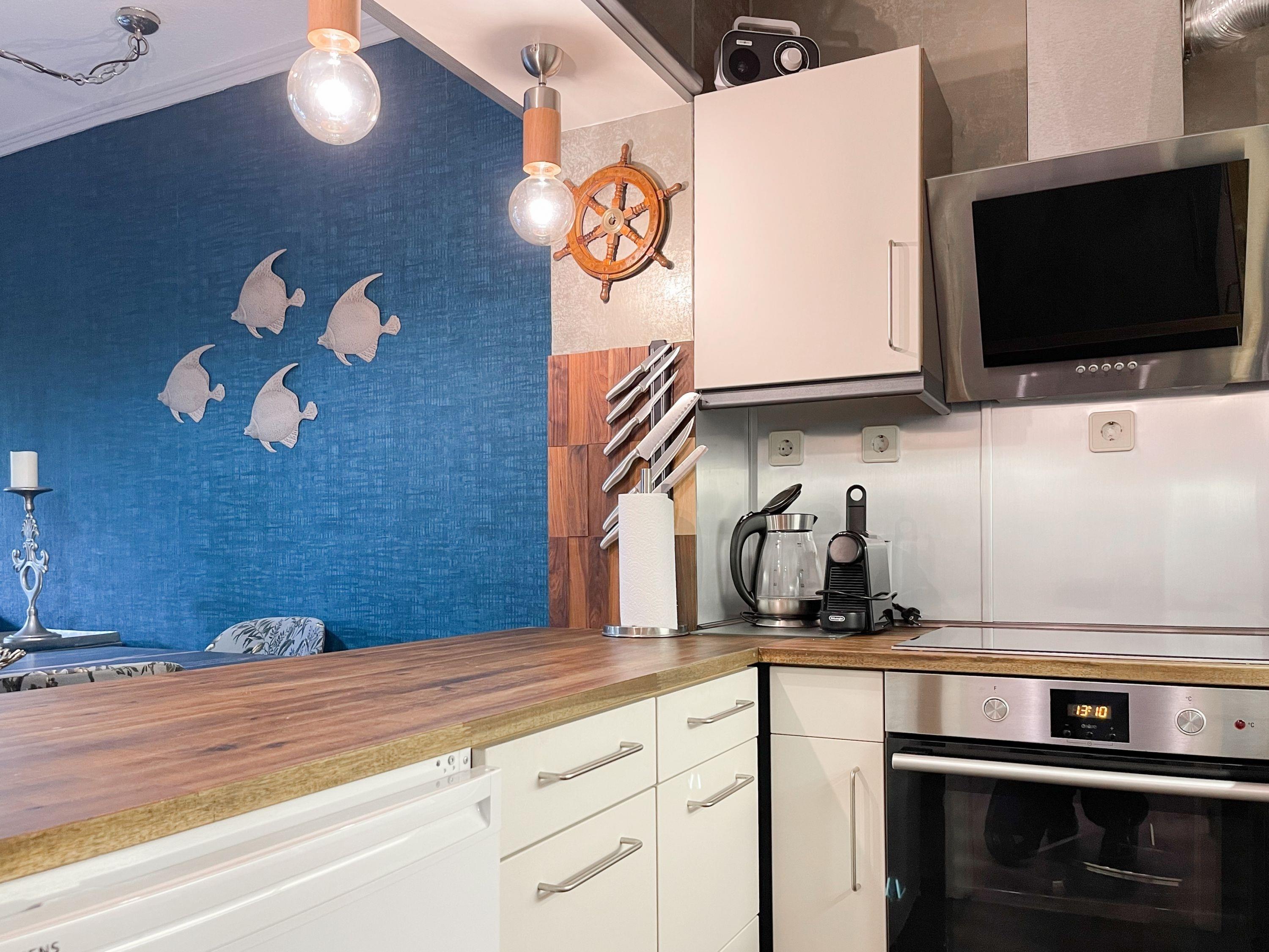 Es erwartet Sie eine gemütlich eingerichtete Ferienwohnung mit ausreichen Raum für 2 Personen, um einen entspannten Urlaub in Strandnähe zu verleben. Highlight ist die riesige, liebevoll bepflanzte Terrasse von 70 qm, die sich über die gesamte Breite der Wohnung erstreckt und mit Gartenmöbeln und einem Strandkorb ausgestattet ist. Ein herrlicher Rückzugsort zu jeder Tageszeit. Der Wohnbereich ist mit einem XL Sofa plus Recamiere und TV ausgestattet, der anschließende Essbereich bietet ausreichend Platz für 4 Personen für gemeinsame Mahlzeiten und gemütliches Beisammensein. Die integrierte Küche ist gut ausgestattet und durch einen Tresen vom Wohnbereich getrennt. Das Schlafzimmer ist mit einem Doppelbett (180x200), einem Kleiderschrank mit ausreichend Stauraum. Die Fenster sind mit vertikal Lamellen versehen, die etwas Licht nehmen, jedoch nicht vollständig verdunkeln. Das Bad verfügt über einen Waschtisch, Föhn, WC und eine Badewanne kombiniert mit einer Dusche.
