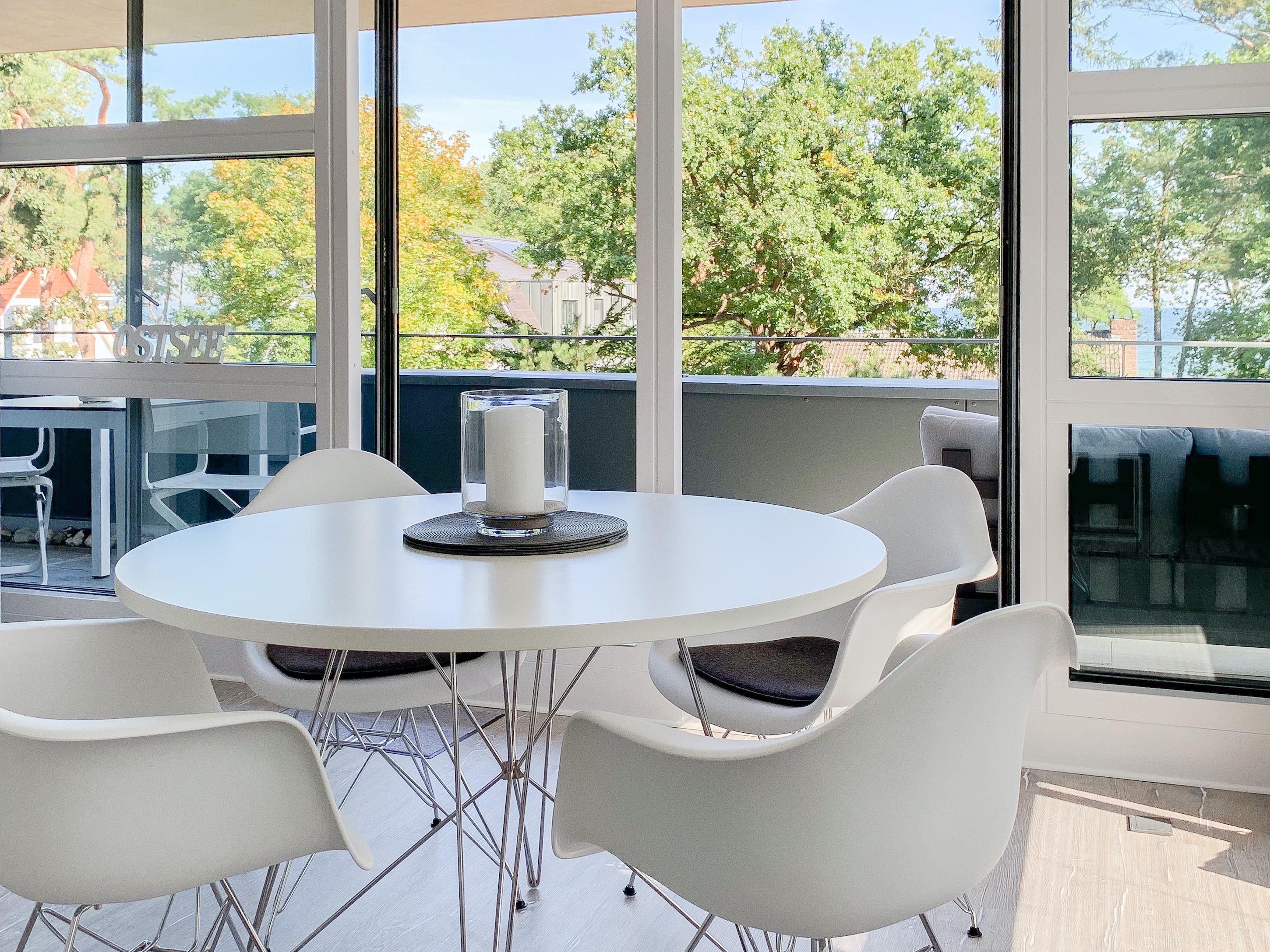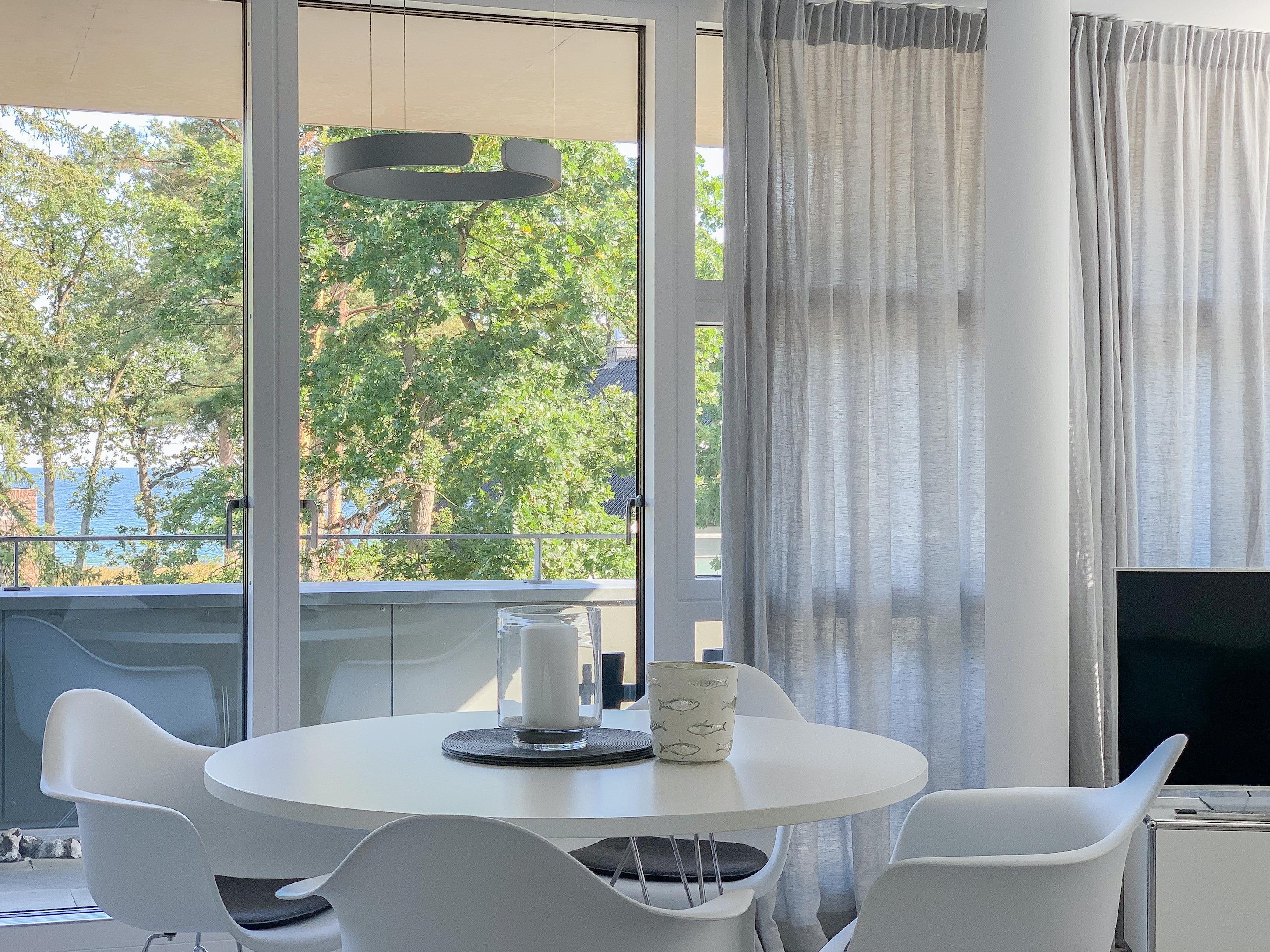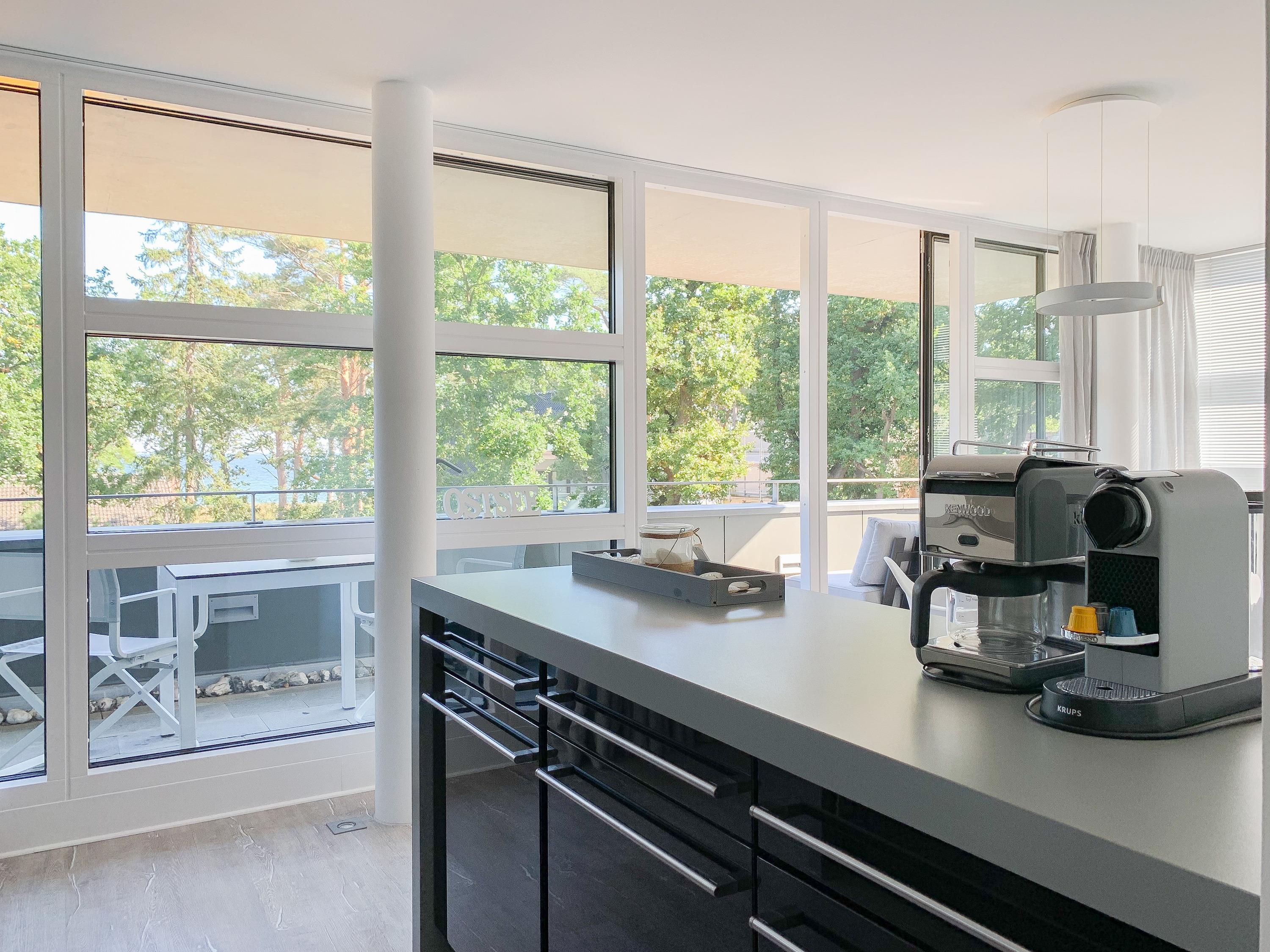 Die Ferienwohnung „Sea View“ bietet zeitgemäßen Luxus für 2 Personen. Große Fensterflächen sorgen für helle Räumlichkeiten[nbsp] mit schönem Blick bis auf die Ostsee. Der großzügige, überdachte Balkon[nbsp] ist mit Garten- und Loungesofa ausgestattet und erstreckt sich über den gesamten Wohnbereich. Die Ferienwohnung verfügt über ein Schlafzimmer mit Boxspringbett und begehbarem Kleiderschrank, ein modernes Duschbad und einen offen gestalteten Wohn-, Essbereich mit integrierter Einbauküche. Die absolut hochwertige, designorientierte[nbsp] Einrichtung machen dieses Objekt zu etwas Besonderem.