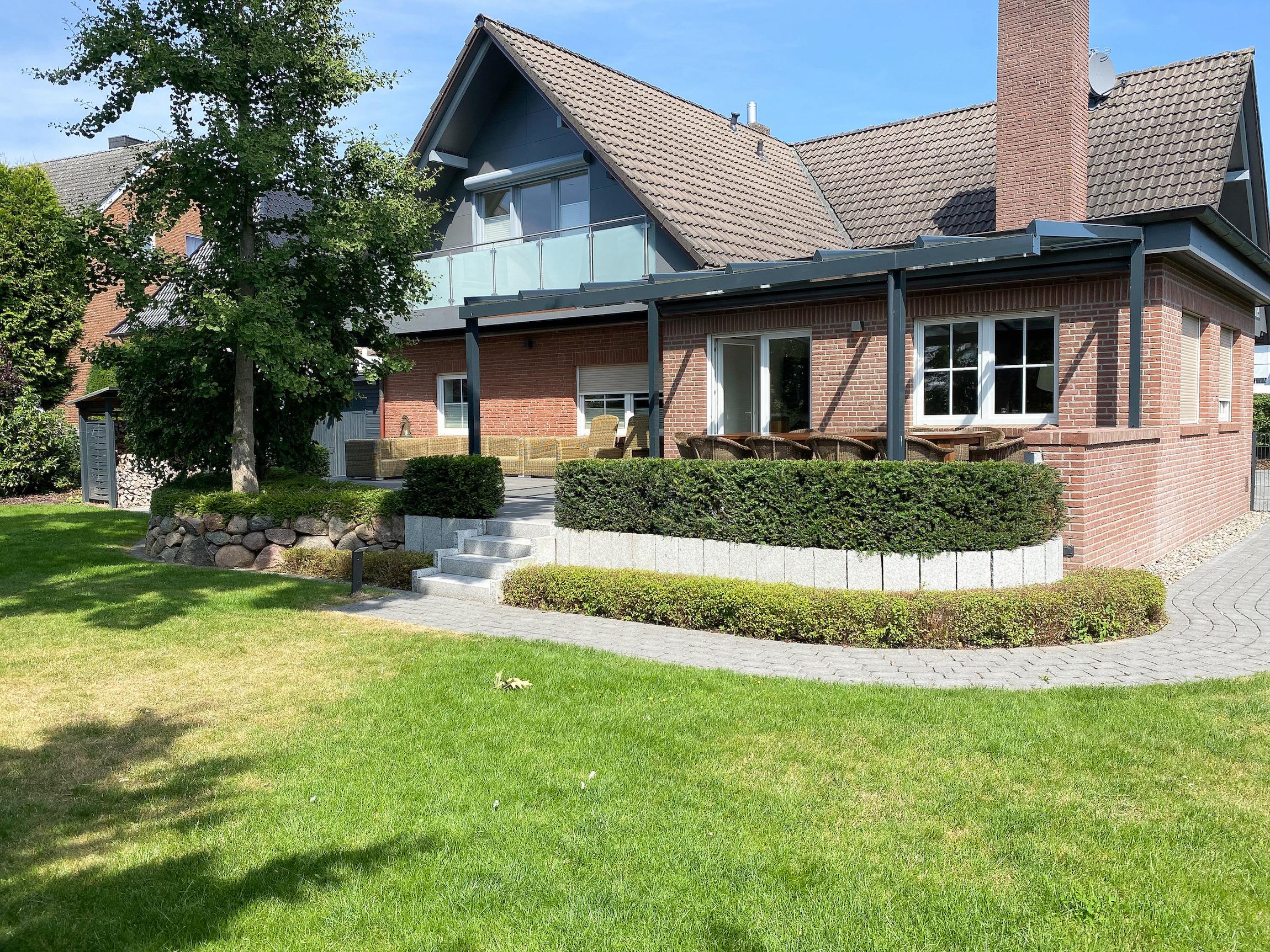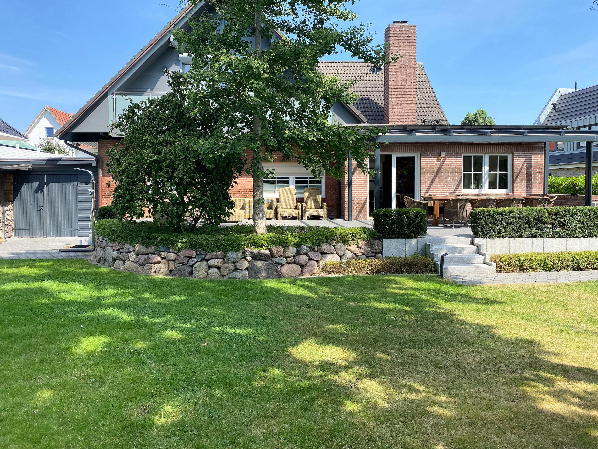 Das Ferienhaus "Seepferd" bietet auf 240 m² zeitgemäßen Luxus und eine Atmosphäre zum Wohlfühlen. Das äußerst großzügige, neu angelegte Gartengrundstück (eingezäunt) lässt keine Wünsche offen. Es gibt eine überdachte Sonnenterrasse mit elektrischer Markise, einen Essbereich für 10 Personen, einen gemütlichen Loungebereich und eine Gartendusche.