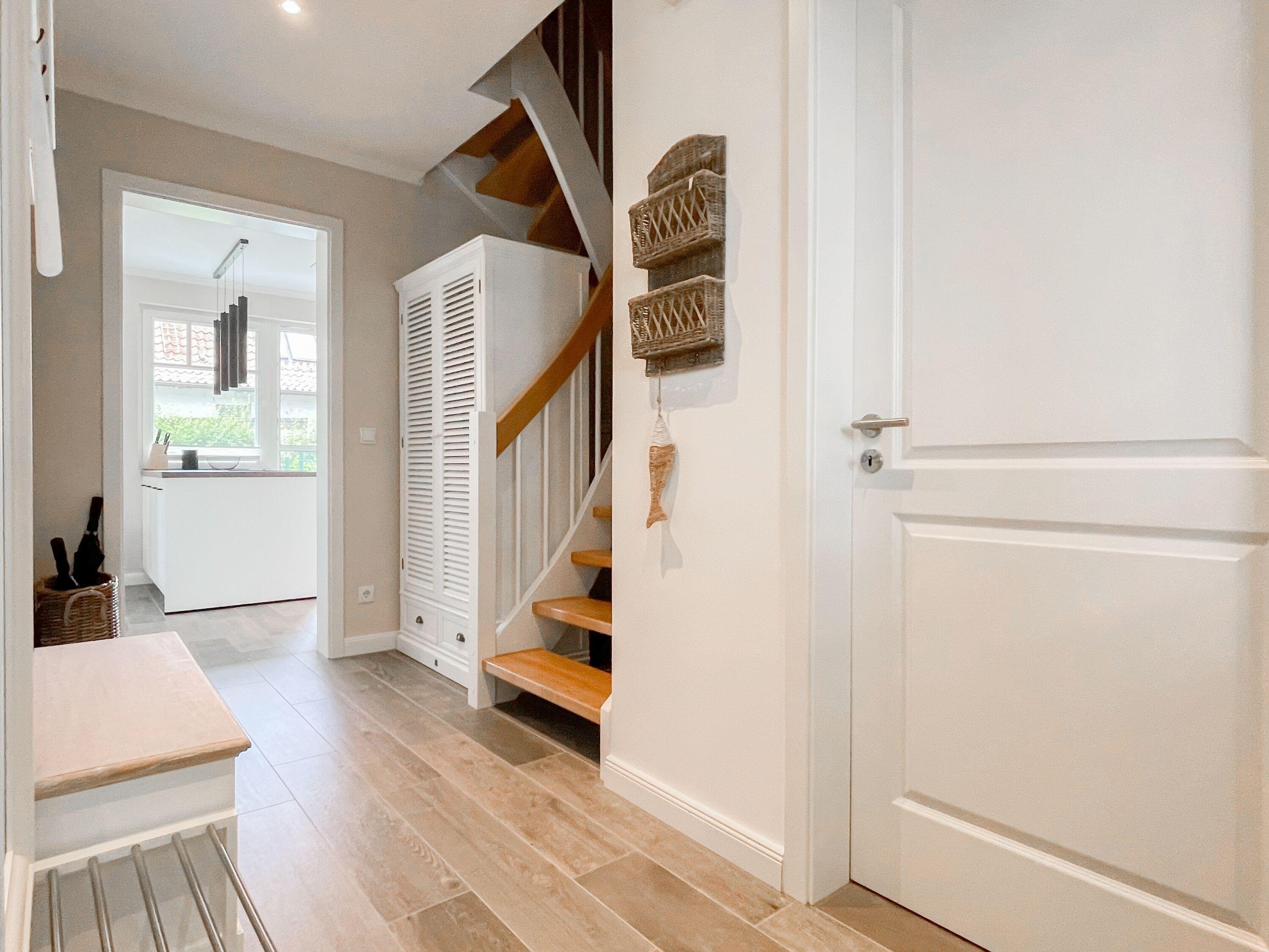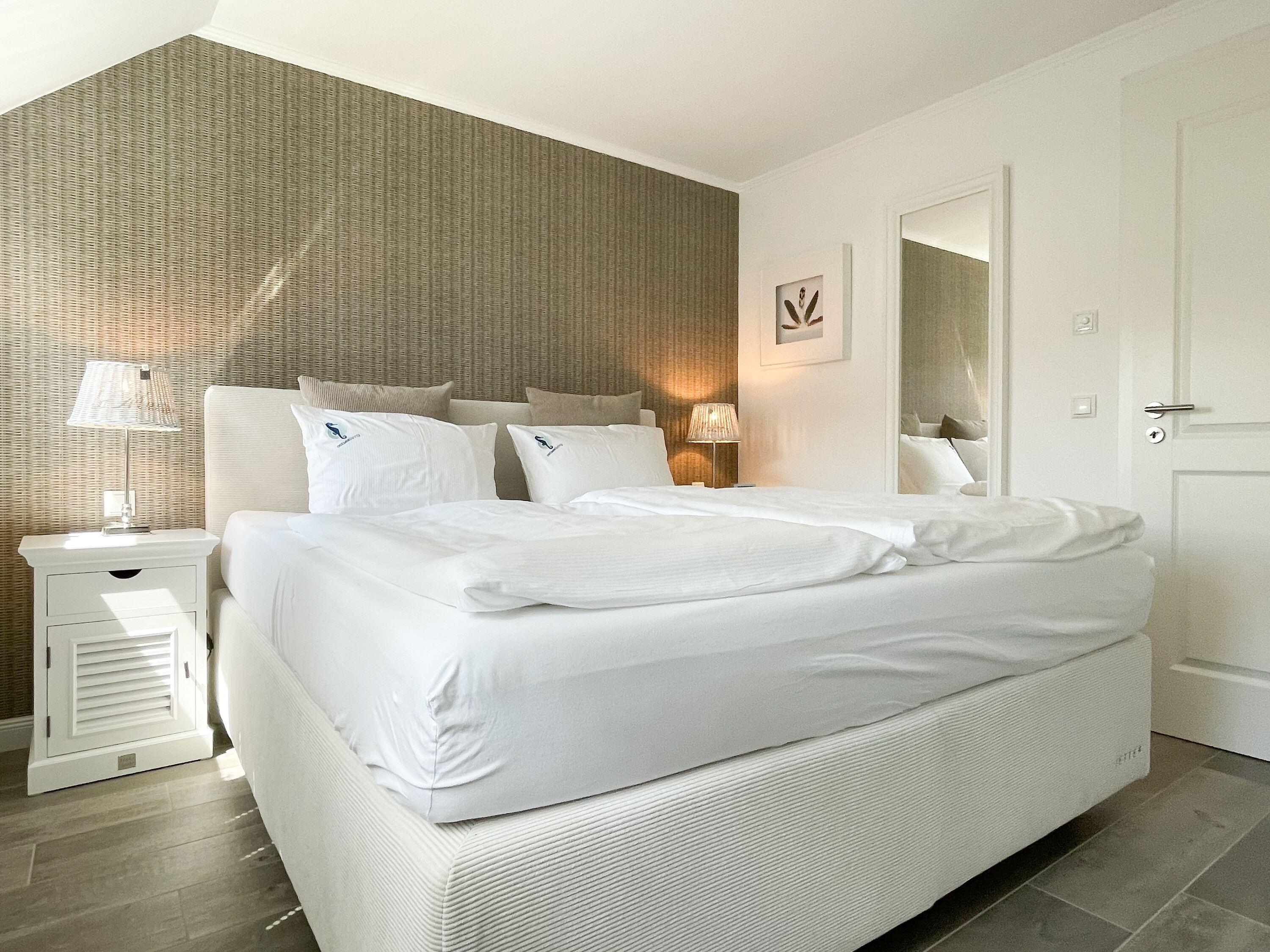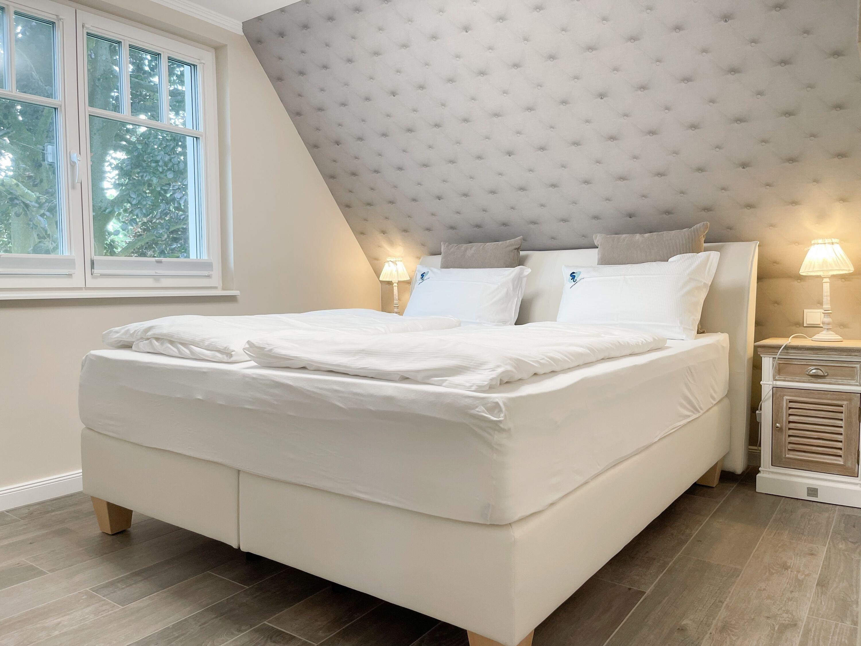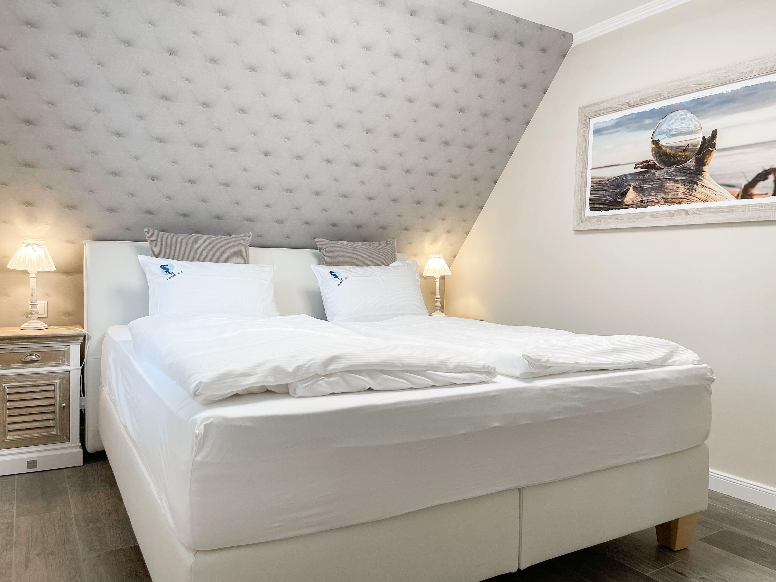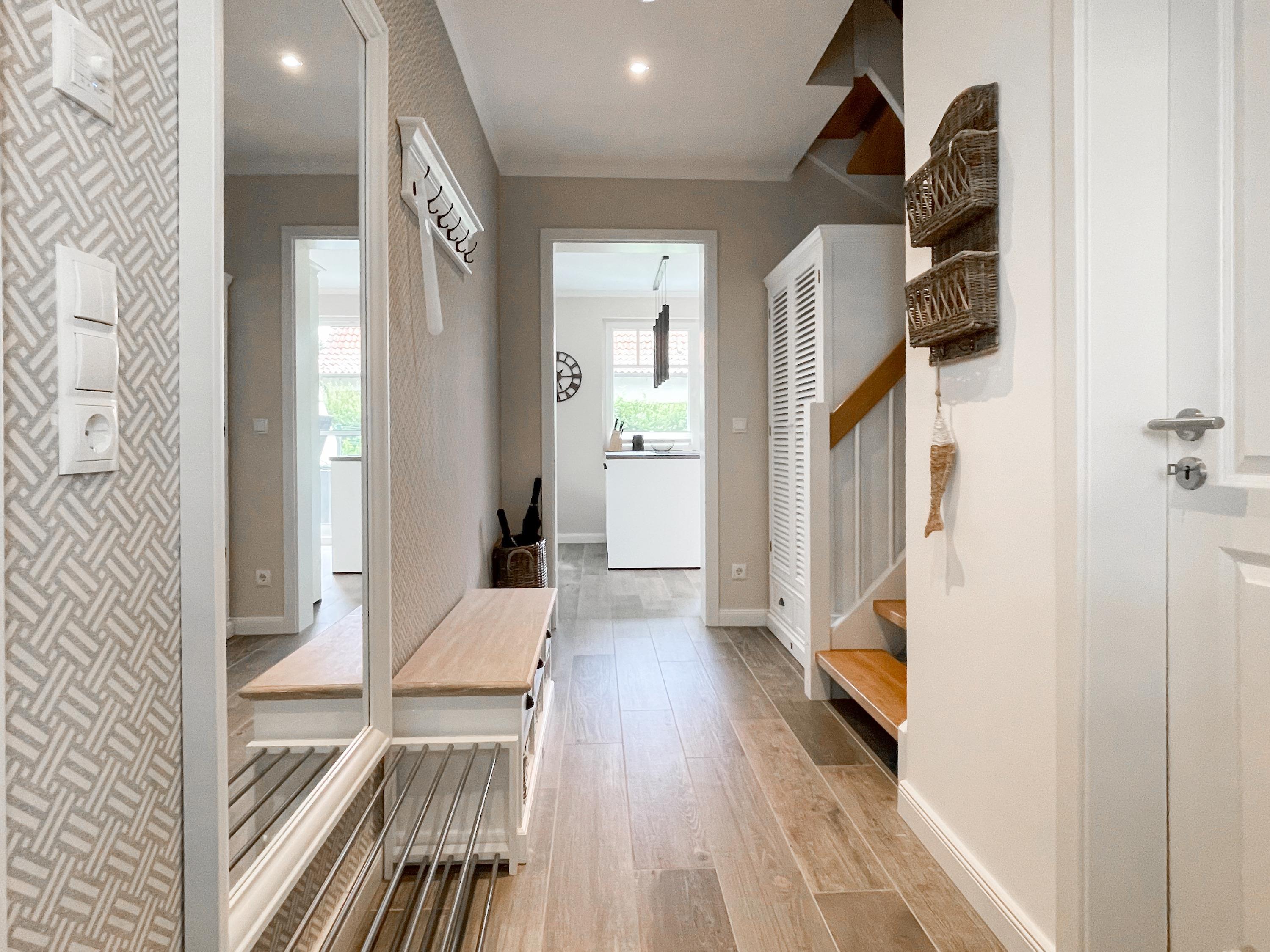 Es erwartet Sie eine wunderschönes Doppelhaus, das bereits beim Eintreten Behaglichkeit und Wohlbefinden spüren läßt. Warme Farben, viel Licht und die hochwertige Einrichtung sorgen für einen hohen Wohnstandard in einer wunderbaren Atmosphäre. Mit 3 Schlafzimmern, zwei Bädern und Sauna bietet das Haus auf[nbsp] über 100 qm Wohnfläche ausreichend Raum für 5 Personen, um einen erholsamen Ostseeurlaub ganz nah am Strand zu verleben. Im Erdgeschoss erwartet Sie ein lichtdurchfluteter Wohn- Essbereich, großzügig geschnitten und hochwertig möbliert. Die integrierte Einbauküche in perfekter Ausstattung eignet sich hervorragend für gemeinsames Kochen. Die vorgelagerte Sonnenterrasse in Südausrichtung ist mit Gartenmöbeln und Sonnenliegen ausgestattet und von einem privaten Gartengrundstück umgeben, das vollständig eingezäunt ist. Im Eingangsbereich befindet sich die Garderobe und ein modernes Bad mit Walk-In Dusche und Fenster. Die Waschmaschine ist im separaten Hauswirtschaftsraum untergebracht. Im Obergeschoss gibt es zwei separate Schlafzimmer, die mit Boxspringbetten (180x200), Kleiderschränken und TV eingerichtet sind. Der Zugang zu dem dritten kleinen Einzelschlafzimmer, das ebenfalls über ein Boxspringbett verfügt (90x200), erfolgt über eines der Doppelschlafzimmer. Das exklusive Wellnessbad mit Badewanne, Walk-In Dusche und integrierter Sauna befindet sich ebenfalls im Obergeschoss. Das Dachgeschoss ist für das home office mit einem Schreibtisch eingerichtet. Alle Fenster der Schlafräume sind mit Blackout Plissees versehen.