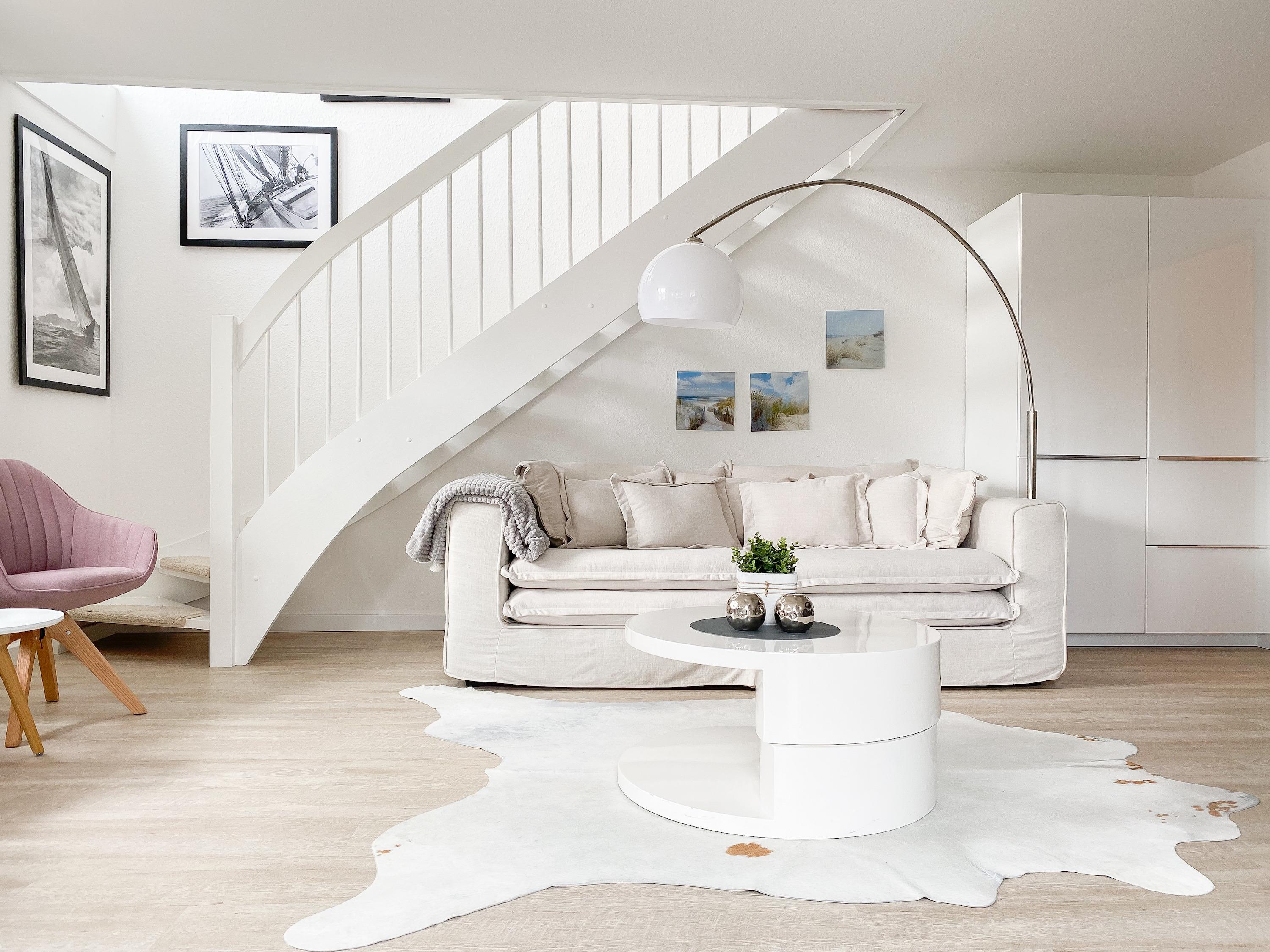 Die Ferienwohnung präsentiert sich als wunderschönes, lichtdurchflutetes Loft über 2 Ebenen in Südausrichtung. Die Wohnung verfügt über zwei Balkone und befindet sich in der obersten Etage (2. OG) des Feriendomizils Strandburg. Die hochwertige, äußerst geschmackvolle Einrichtung vermittelt ein herrliches Wohngefühl. Auf der unteren Ebene befindet sich der gemütliche Wohnbereich mit Sonnenbalkon, TV, Musikanlage und WLAN, der anschließende Essbereich und die offene, bestens ausgestattete Wohnküche sowie ein Gäste WC und ein Abstellraum mit kombiniertem Waschtrockner. Auf der oberen Ebene gibt es zwei großzügige Schlafzimmer mit Boxspringbetten, eines mit Balkon und zusätzlichem TV, ein hochwertiges Duschbad und eine gemütliche Leseecke. Die Schlafräume lassen sich mittels Plissees und Vorhängen verdunkeln.
