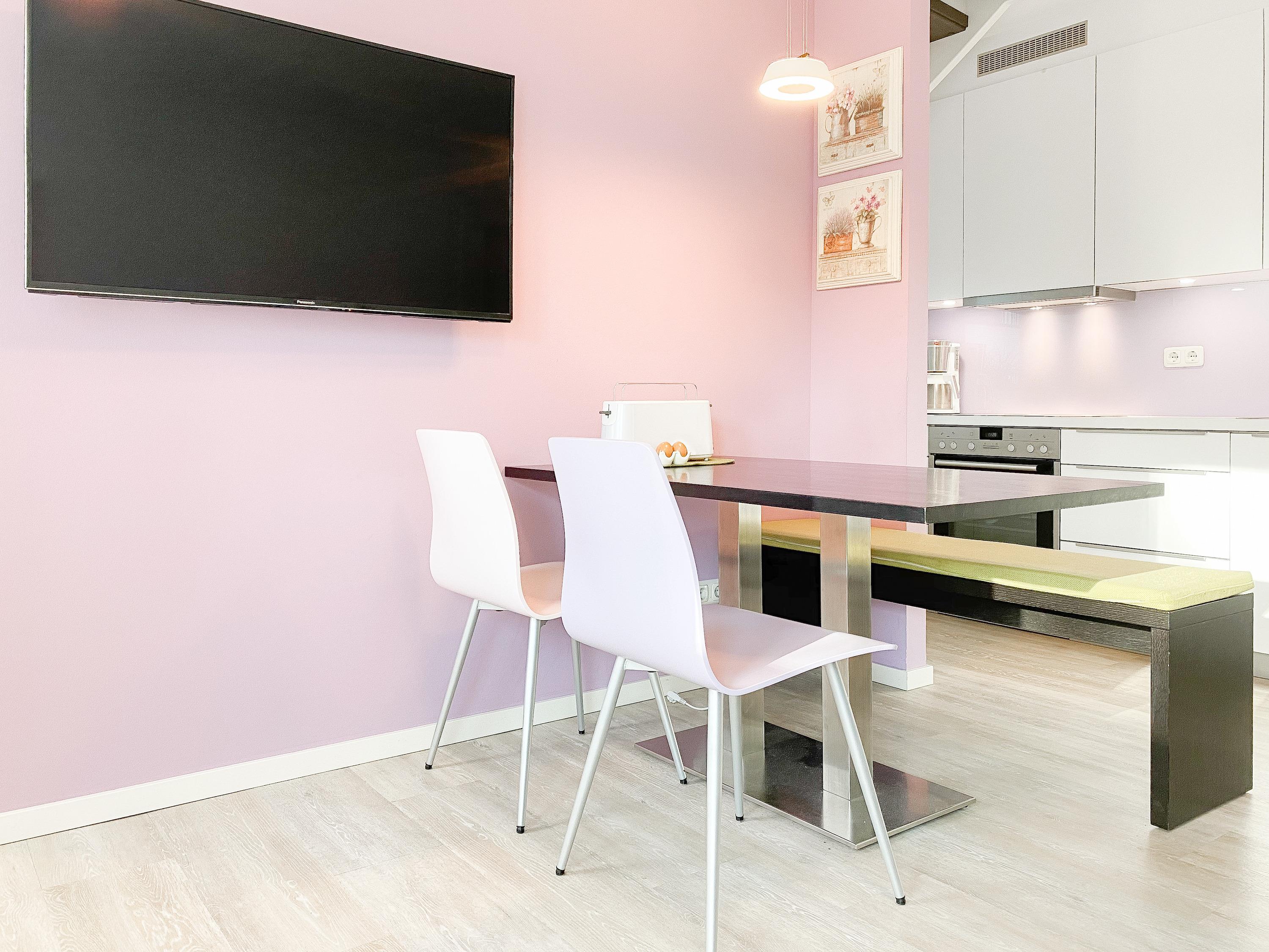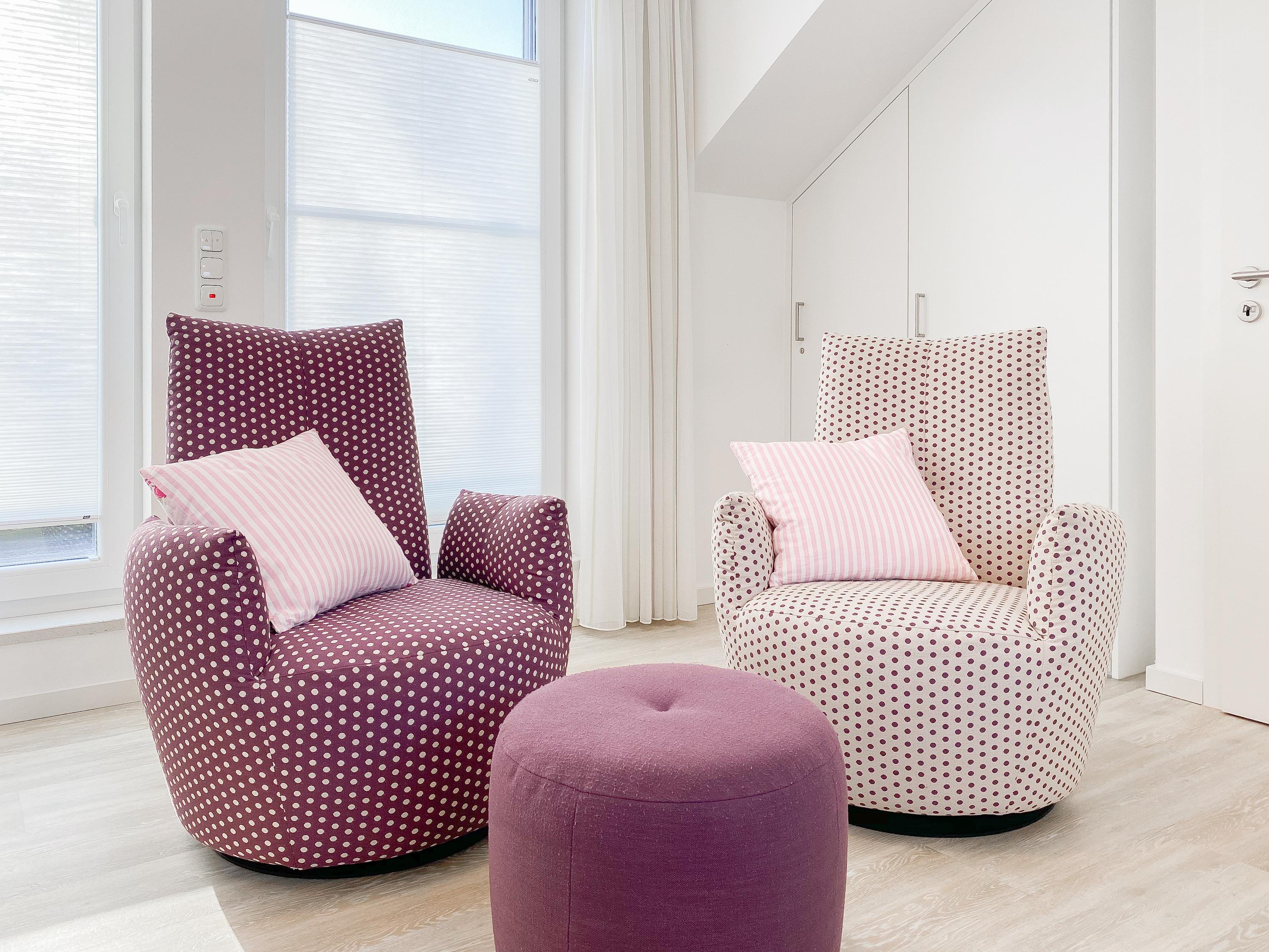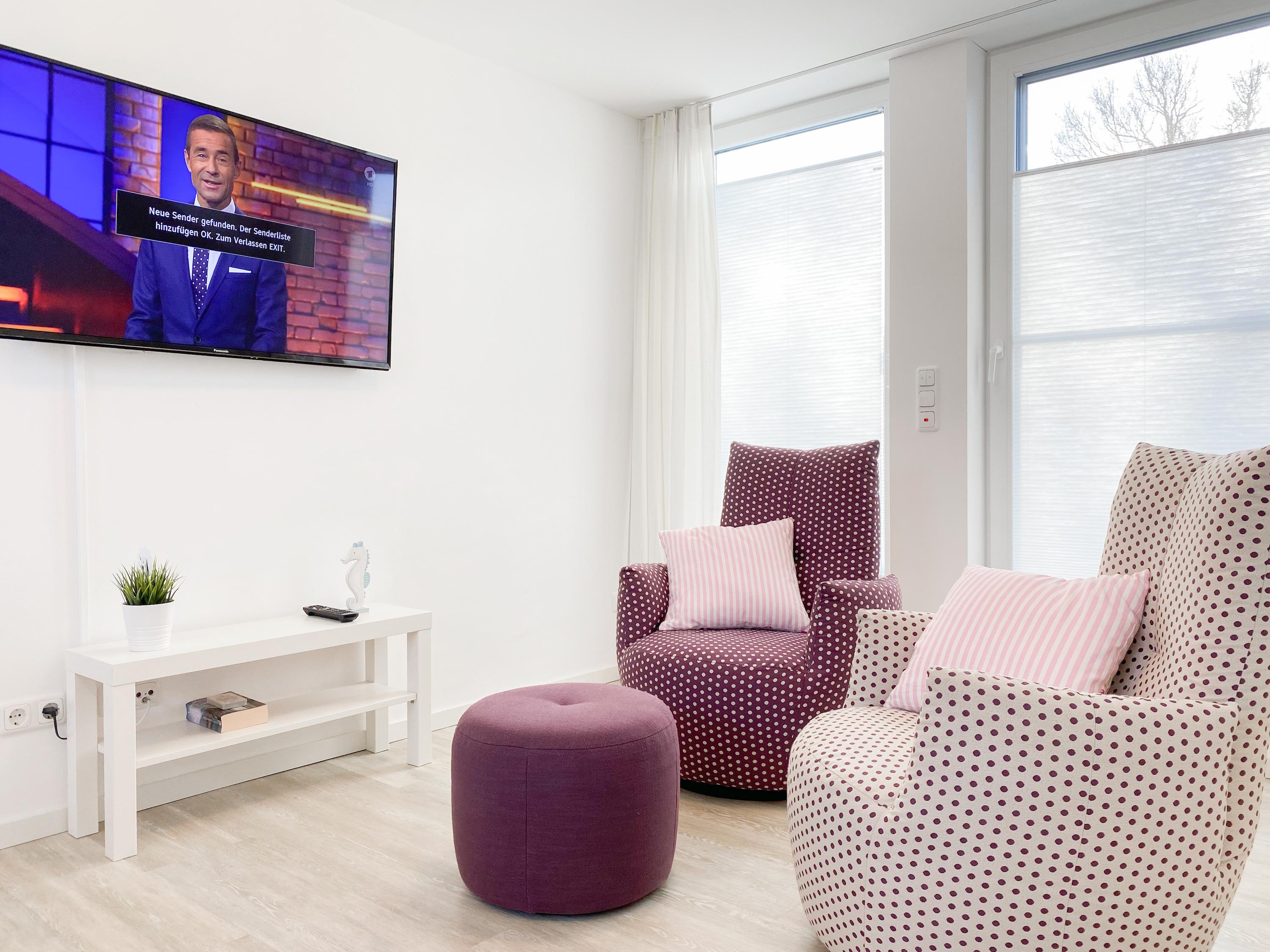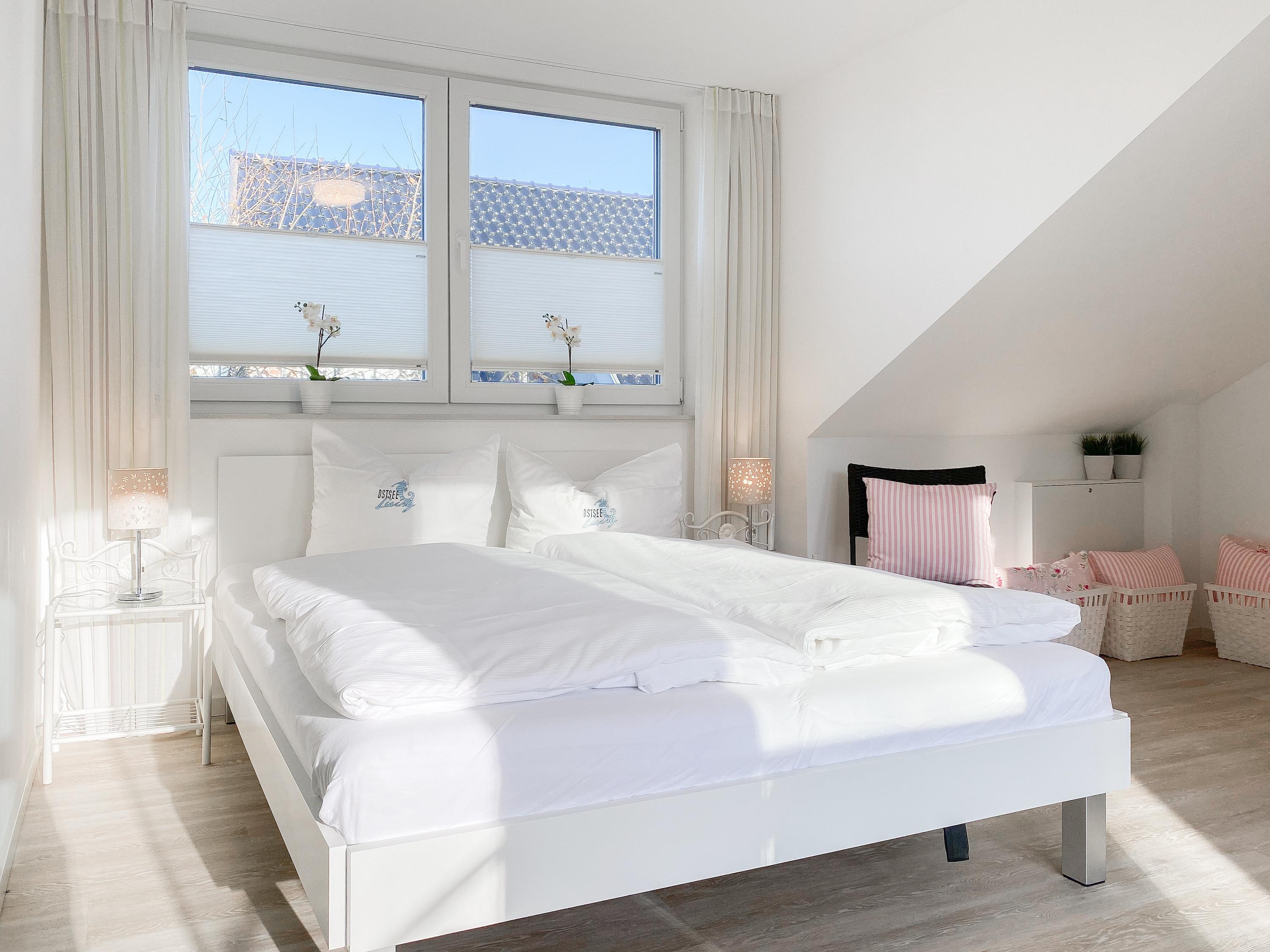 Die lichtdurchflutete Maisonette mit zwei separaten Schlafzimmern, zwei Bädern und zwei Balkonen erstreckt sich über zwei Wohnebenen. Fröhliche Farben und ein jugendlich- modernes Innendesign sorgen für gute Laune. In der unteren Etage erwartet Sie ein offener Wohn-Essbereich, an den sich eine voll ausgestattete moderne Küche anschließt. Der möblierte Balkon in Südwest Lage lädt zu Mahlzeiten an der frischen Seeluft ein. Hier können Sie gemütlich die Sonnenstunden am Nachmittag und späten Abend genießen. Das Schlafzimmer ist mit einem hochwertigen und großen Doppelbett (200 x 200) ausgestattet und verspricht erholsame Stunden nach einem ereignisreichen Urlaubstag. Gegenüber befindet sich ein Tageslichtbad mit komfortabler Walk In Dusche. Über eine Holztreppe gelangen Sie zur oberen Wohnebene. Das zweite Schlafzimmer ist ebenfalls mit einem Doppelbett (160 x 200) eingerichtet und verfügt über einen Sitzbereich mit TV. Ein modernes, großzügiges Bad mit Badewanne schließt sich direkt an das Schlafzimmer an und[nbsp] bietet Ihnen entsprechende Privatsphäre. Das Highlight ist der eigene Zugang zur hochwertig möblierten Dachterrasse, ausgestattet mit bequemen Rattansesseln, die in eine Liegeposition verstellbar sind. In jedem Raum ist ein Fenster mit einem Fliegengitter ausgestattet, sodass mückenfreies Lüften gewährleistet ist. Auf Wunsch können alle Wohnräume mit elektrischen Außenjalousien verdunkelt werden. Eine zusätzliche, zentrale Steuerung befindet sich im Eingangsbereich. Die Temperatur der Fußbodenheizung lässt sich für jeden Raum separat regulieren. Zwei TV, ein[nbsp] Radio und kostenloses WLAN gehören zum Entertainment-Paket. Ein Fahrstuhl ist selbstverständlich vorhanden.