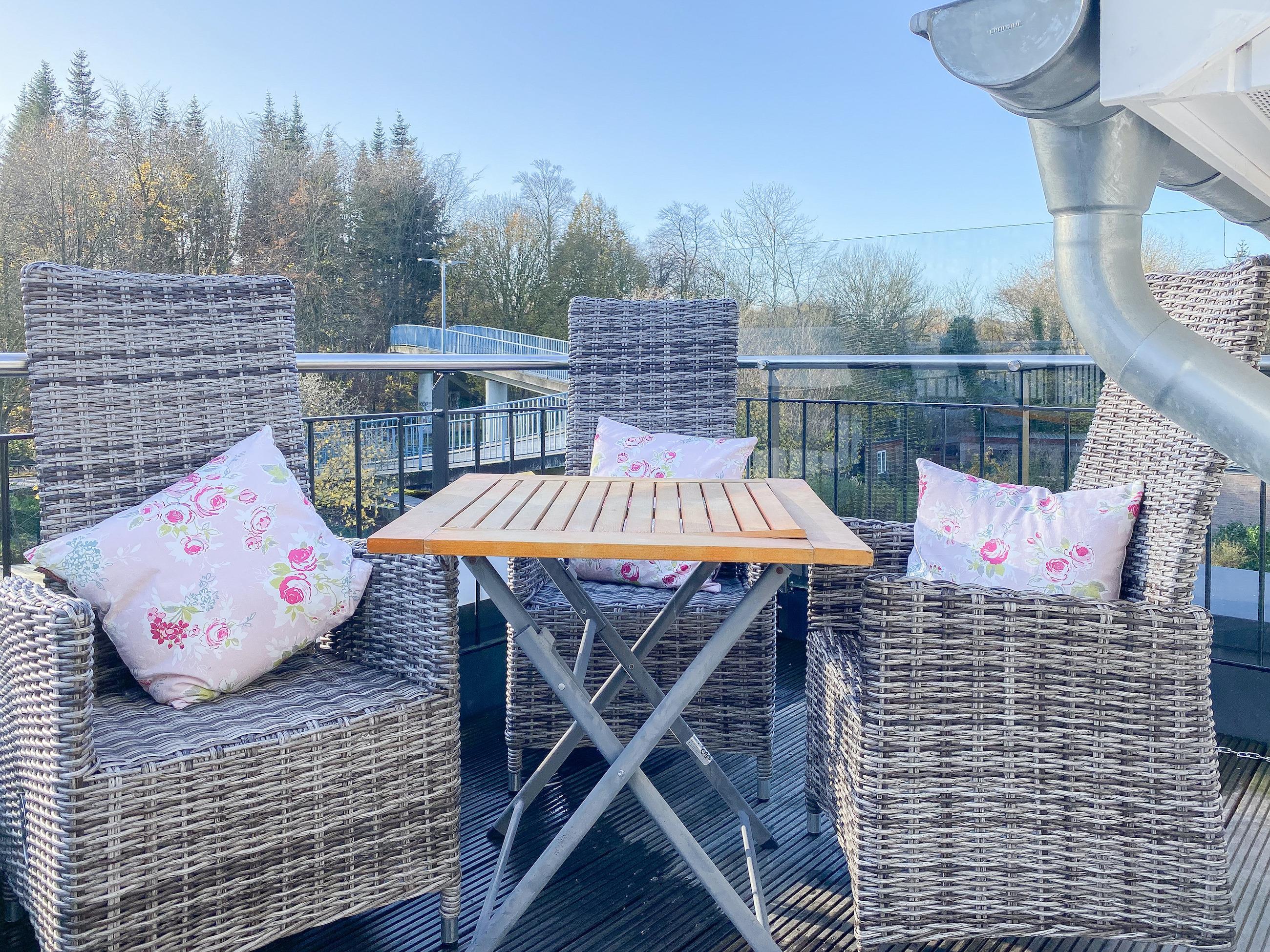 Moderne Ferienwohnung "Sommerwind" in Timmendorfer Strand mit Dachterrasse, zwei Balkonen und Fußbodenheizung.