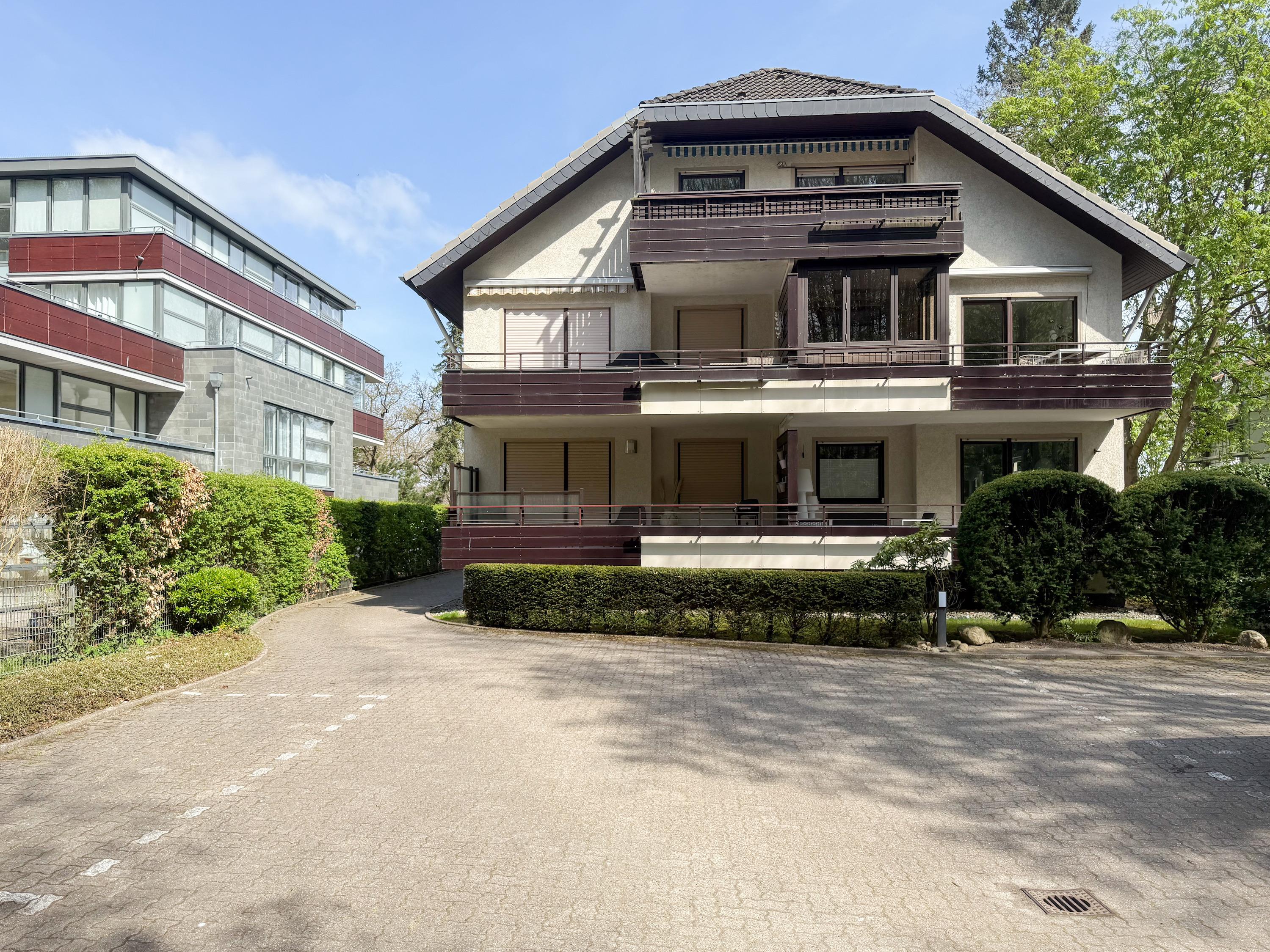 Ein Stellplatz befindet sich am Haus, Fahrradständer und Fahrradkeller sind vorhanden. Das Haus verfügt über keinen Fahrstuhl.
