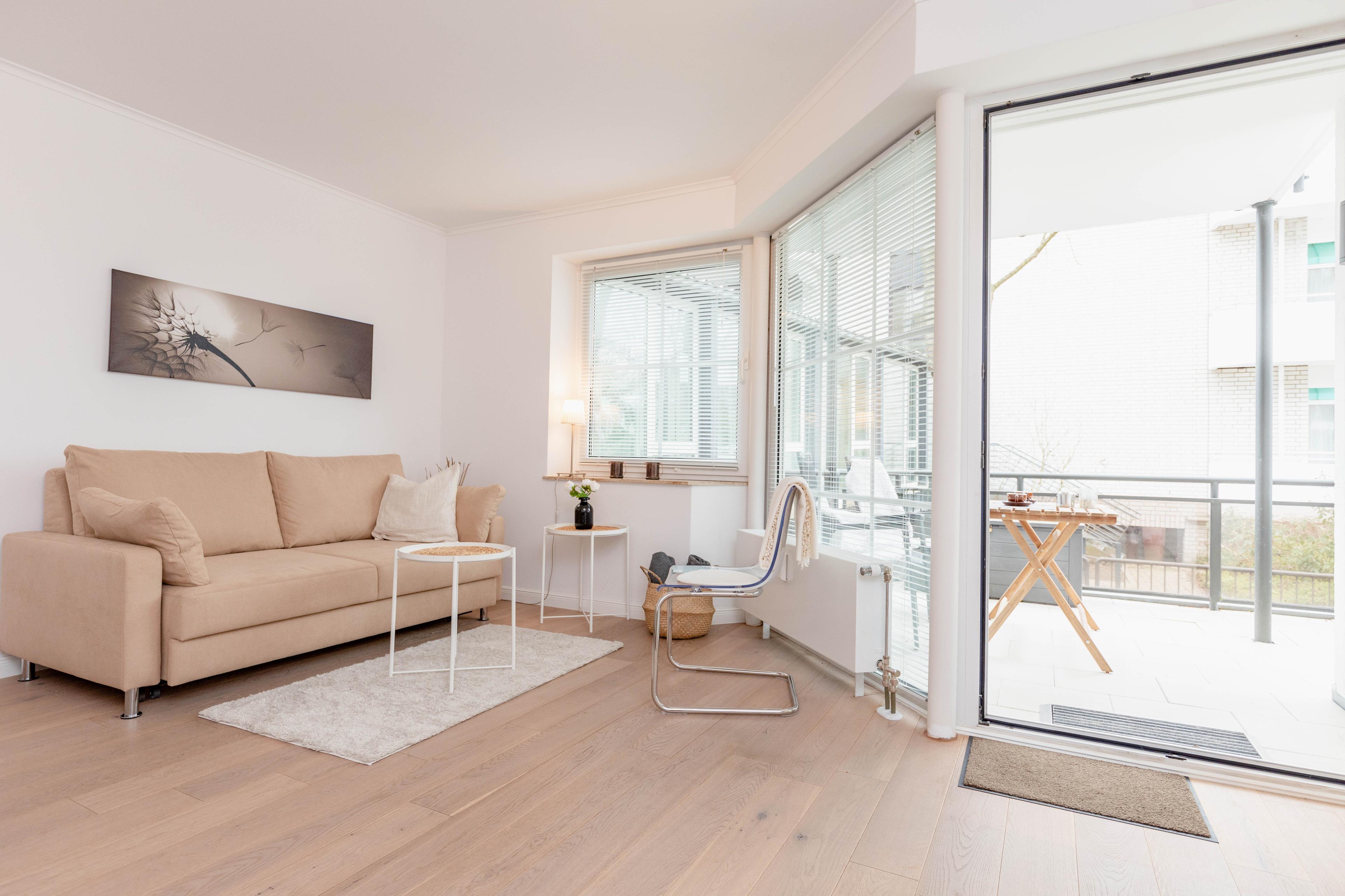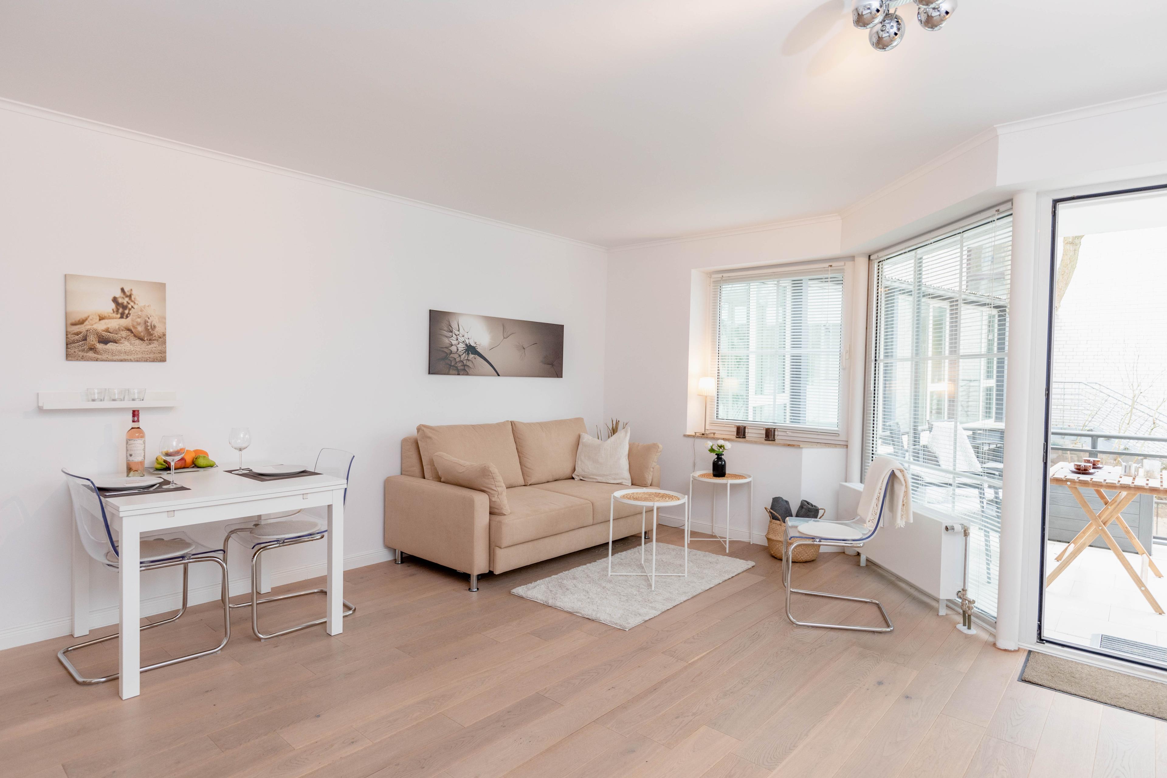 Moderne Ferienwohnung am Timmendorfer Strand mit Terrasse und Ostseeblick, ideal für erholsame Tage zu zweit.