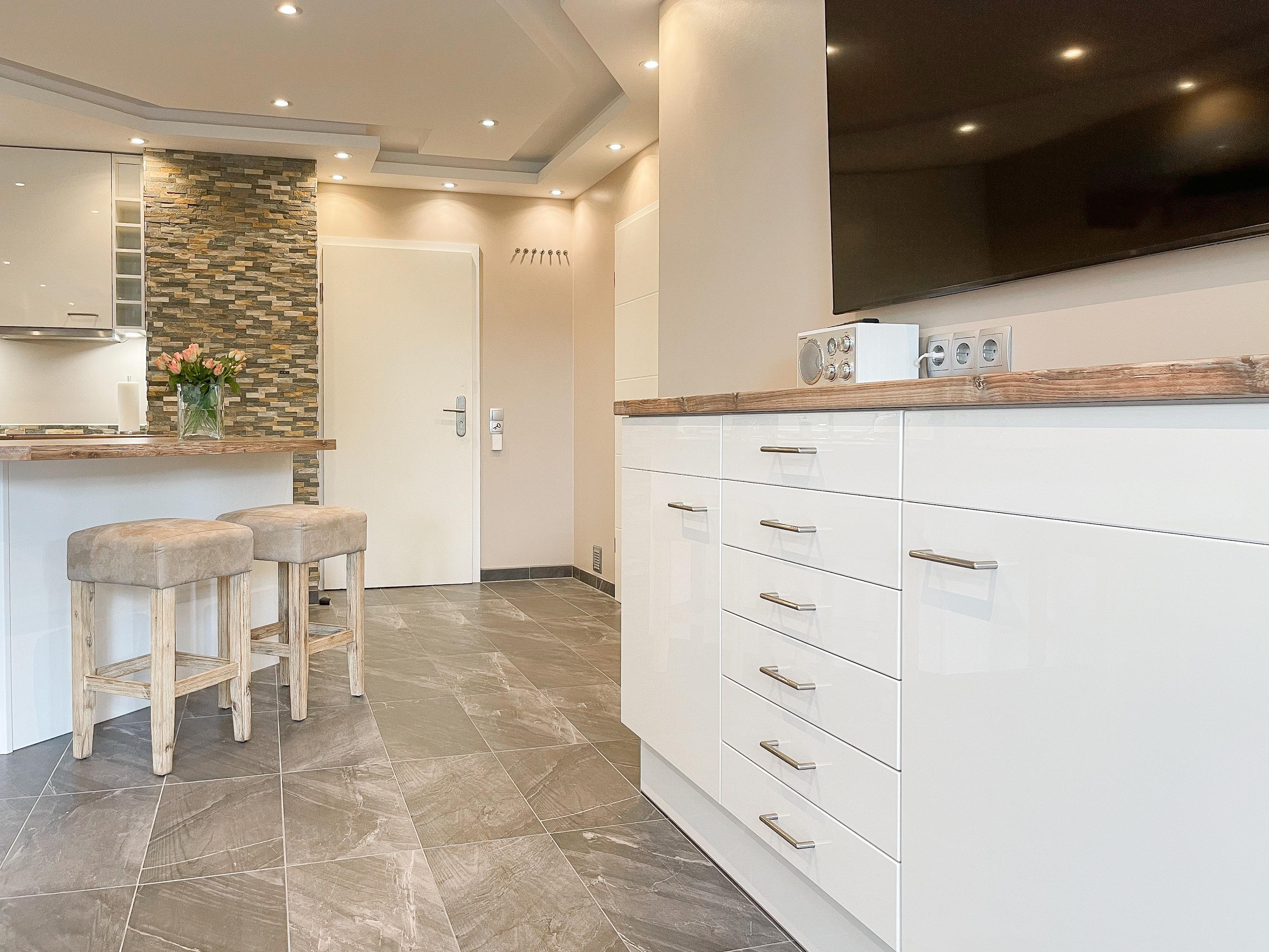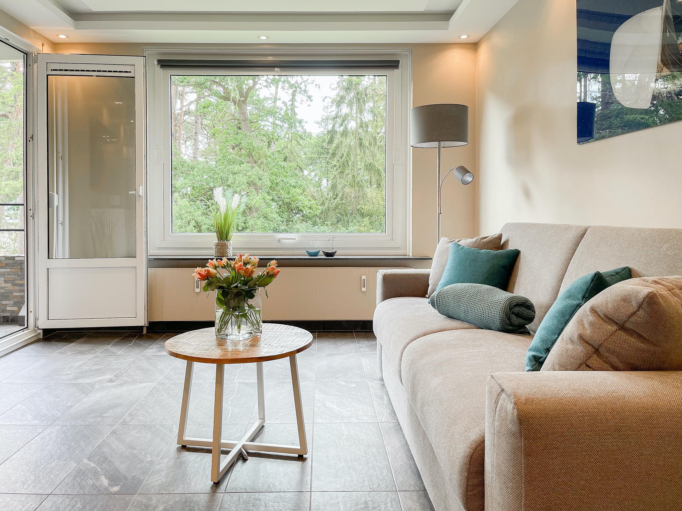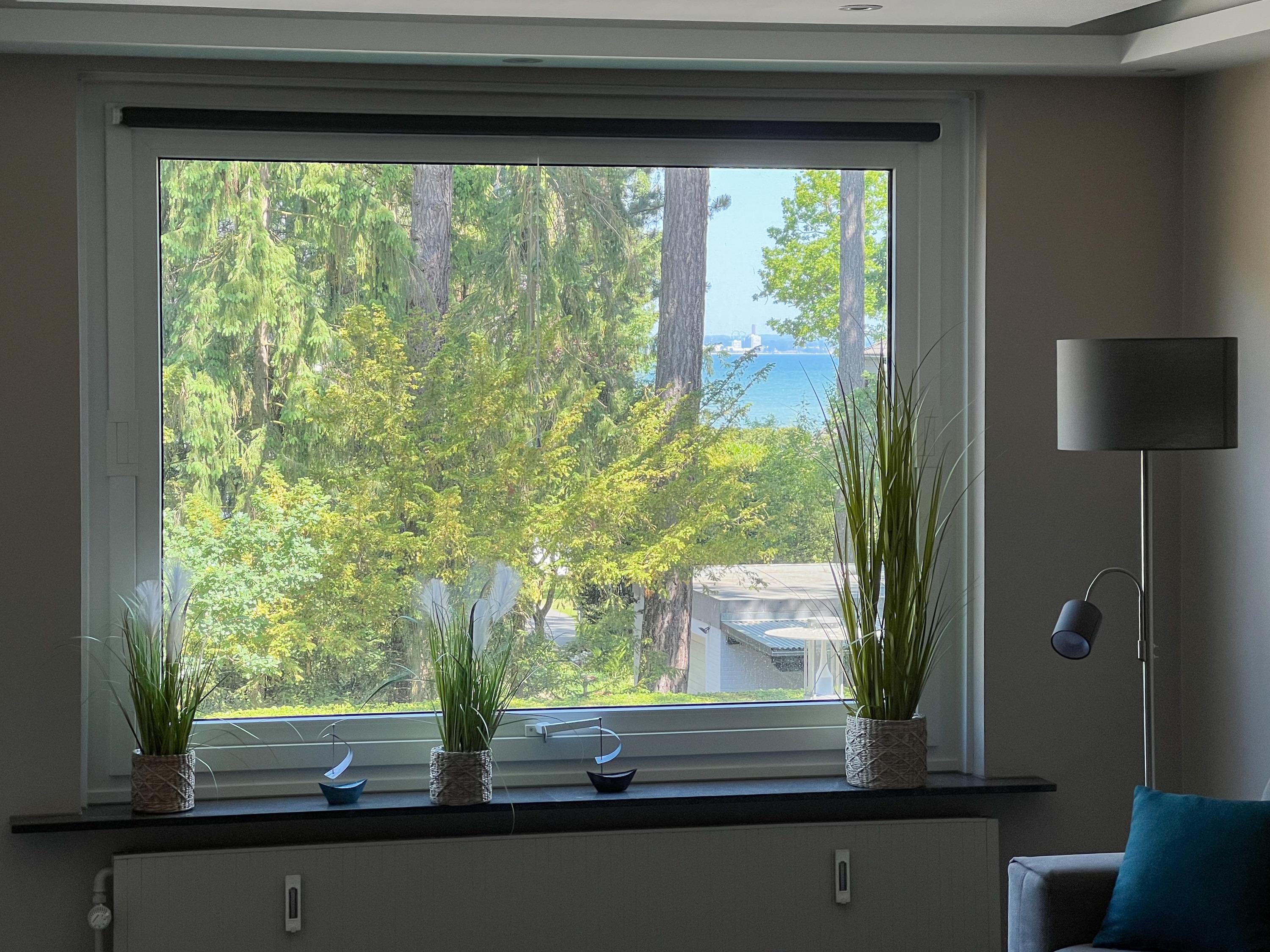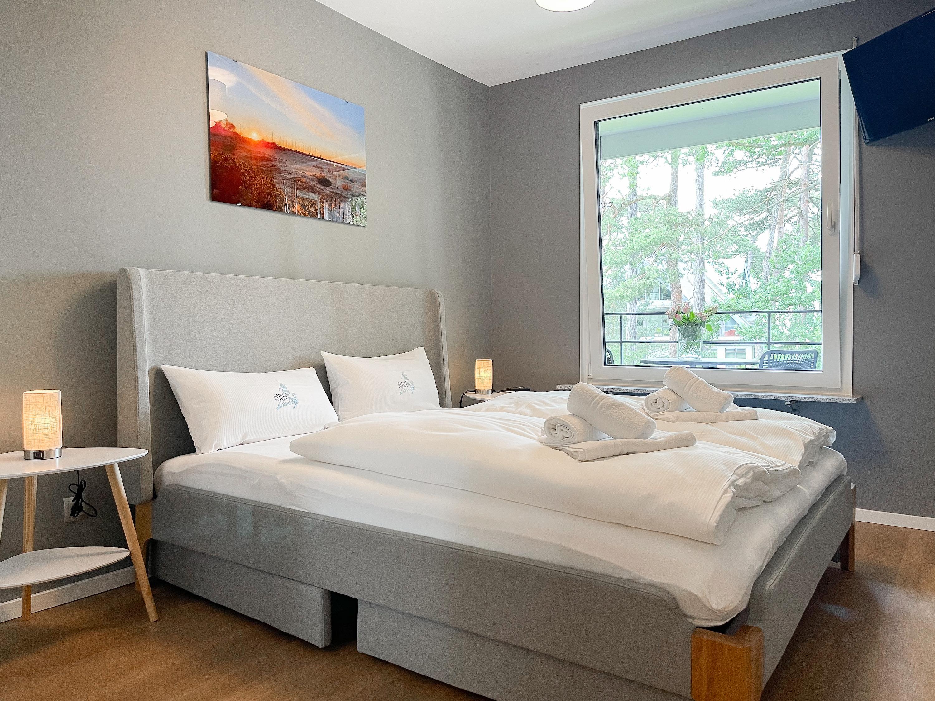 Die aufwendig renovierte und hochwertig eingerichtete Ferienwohnung befindet sich in der ersten Etage im Carpe Diem Haus 2, einer gepflegten Wohnanlage. Es erwartet Sie ein moderner Wohnbereich mit einem hochwertigen Schlafsofa, TV, Bluetooth Radio und WLAN. Die integrierte Einbauküche ist sehr gut ausgestattet und verfügt über einen Esstresen mit ausreichend Platz für 4 Personen. Der vorgelagerte Balkon zur Meerseite bietet einen sehr schönen Ausblick. Je nach Jahreszeit kann man die Ostsee durch die Bäume blitzen sehen. Meeresrauschen und die frische Seeluft sind garantiert. Das separate Schlafzimmer ist mit einem Doppelbett (160x200), einem Kleiderschrank und einem zusätzlichen TV ausgestattet. Zur Wohnung gehört ein fester Außenstellplatz.