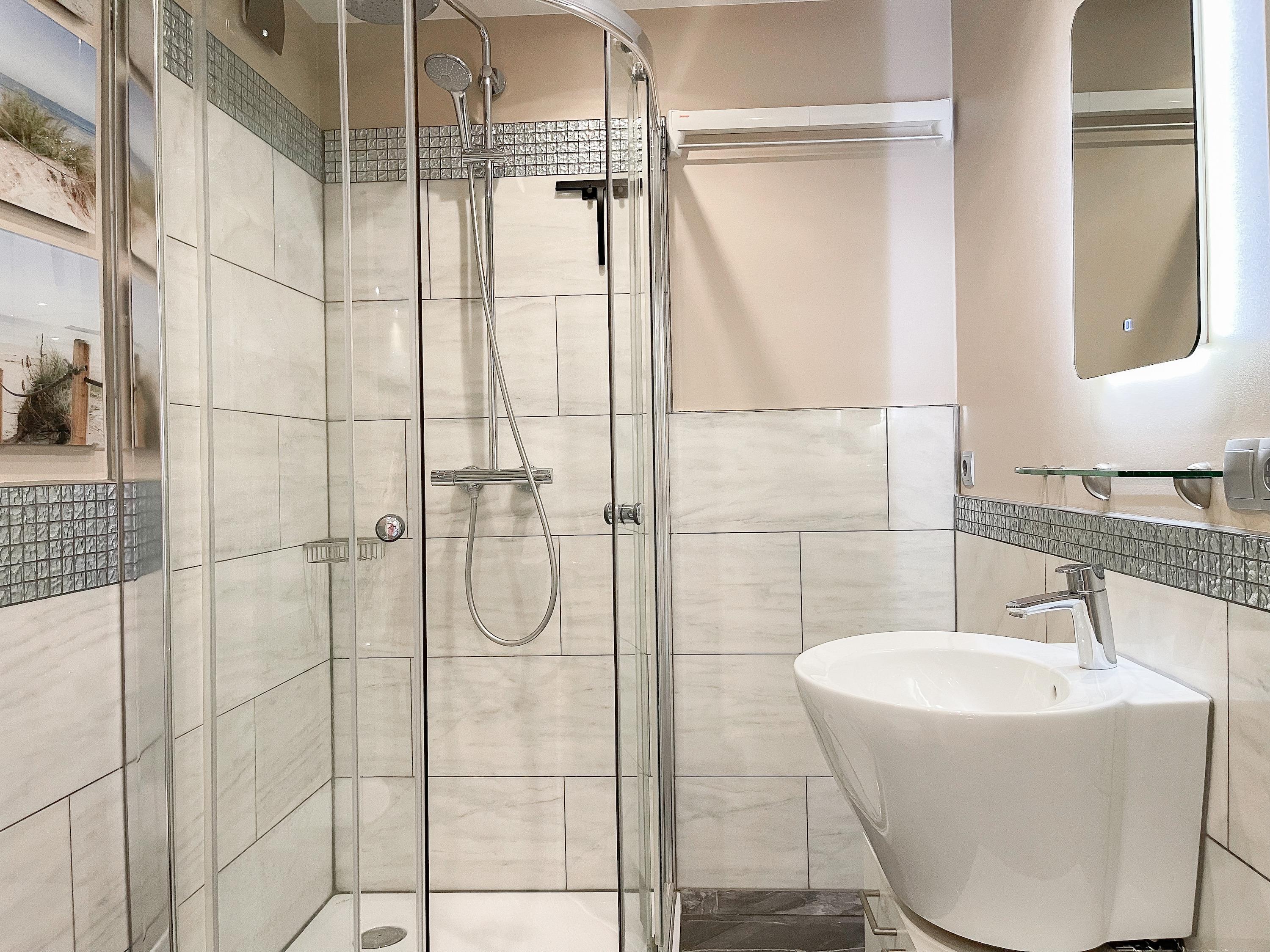 Wellness zum Ausspannen bieten das Schwimmbad mit schönem Blick auf die Ostsee und die Sauna, die sich in der obersten Etage des Hauses befinden und zu den Öffnungszeiten kostenlos genutzt werden können. Bitte beachten Sie, dass die Sauna nur von Freitag bis Sonntag und an den Feiertagen betriebsbereit ist. Das Schwimmbad ist im November aufgrund von Wartungsarbeiten geschlossen sind.