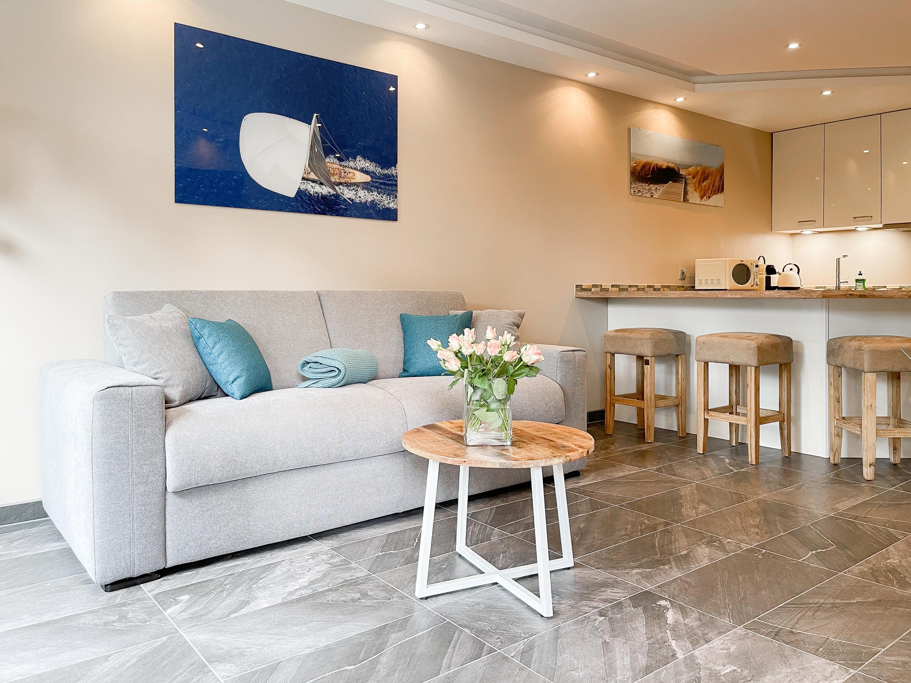 Moderne Ferienwohnung in Timmendorfer Strand, nur 100 m vom Ostseestrand mit Balkon und Pool.