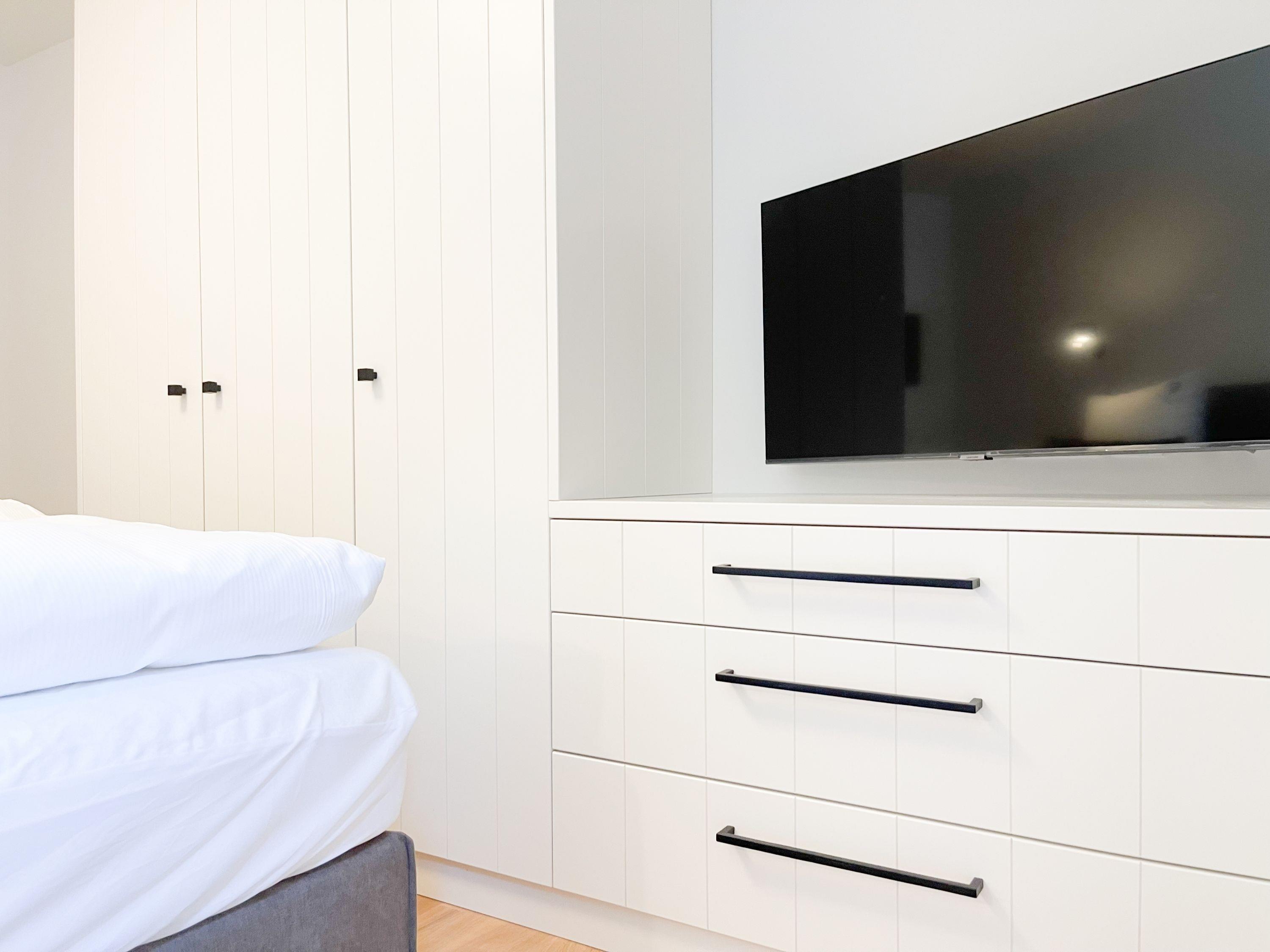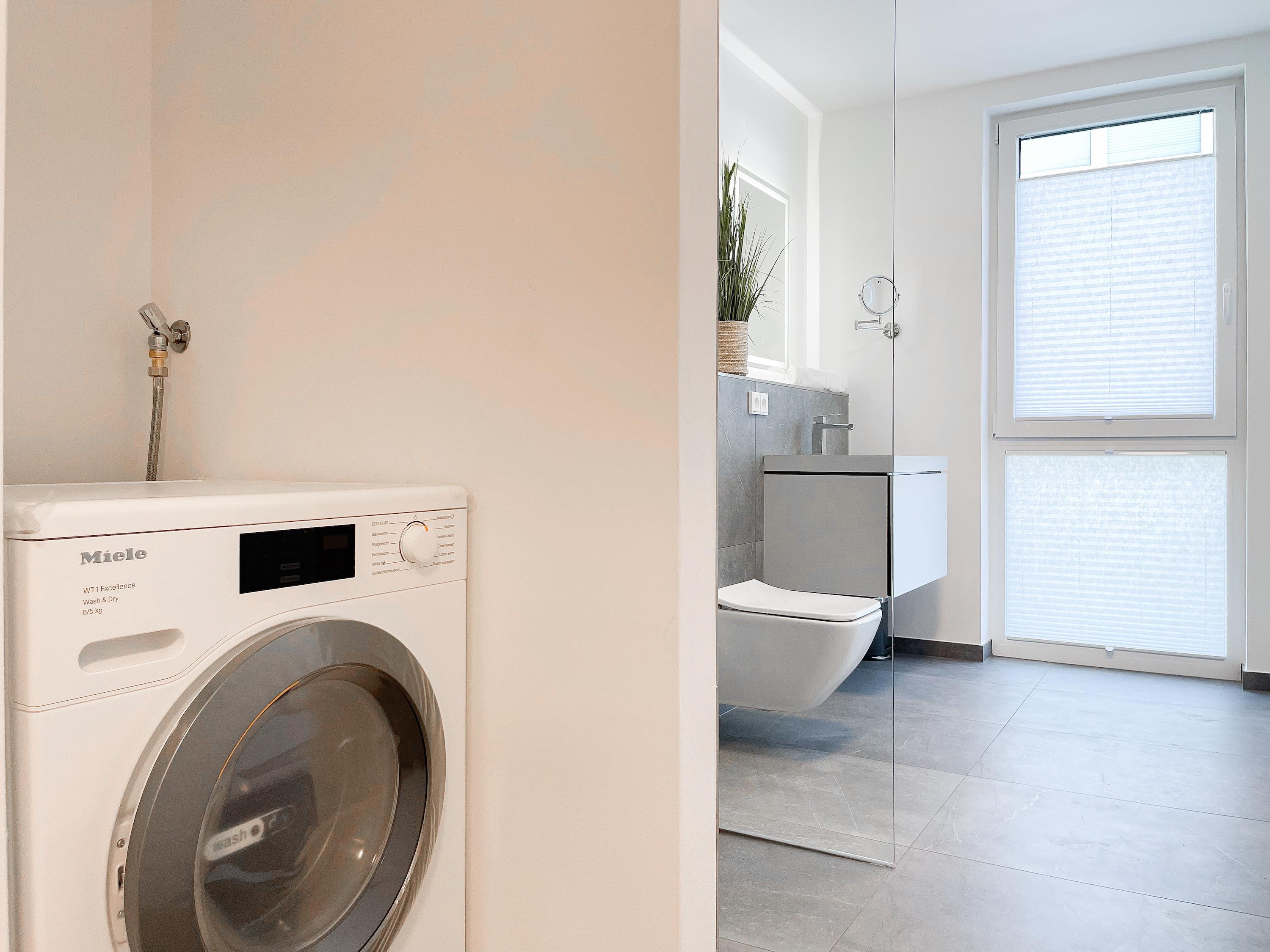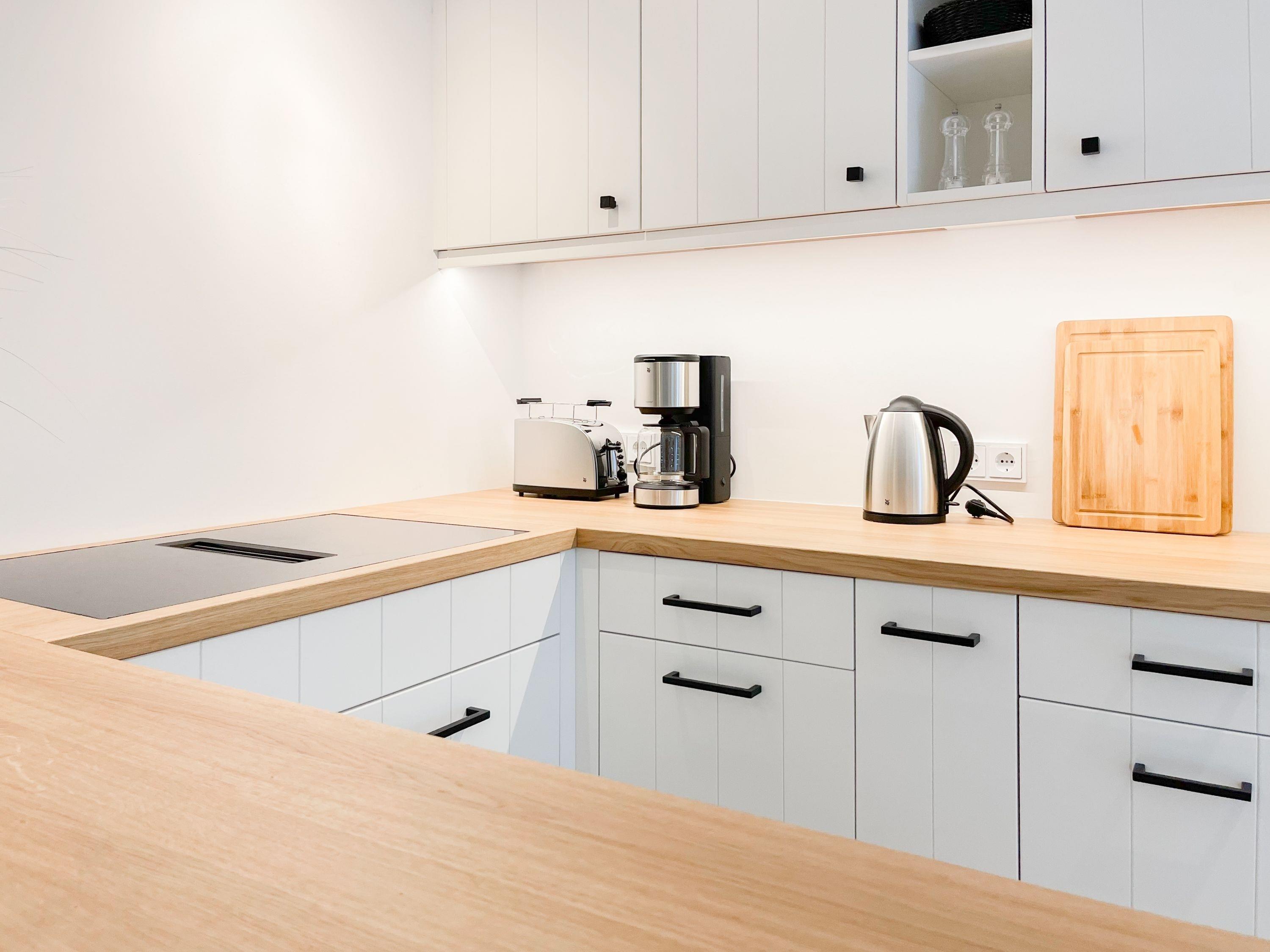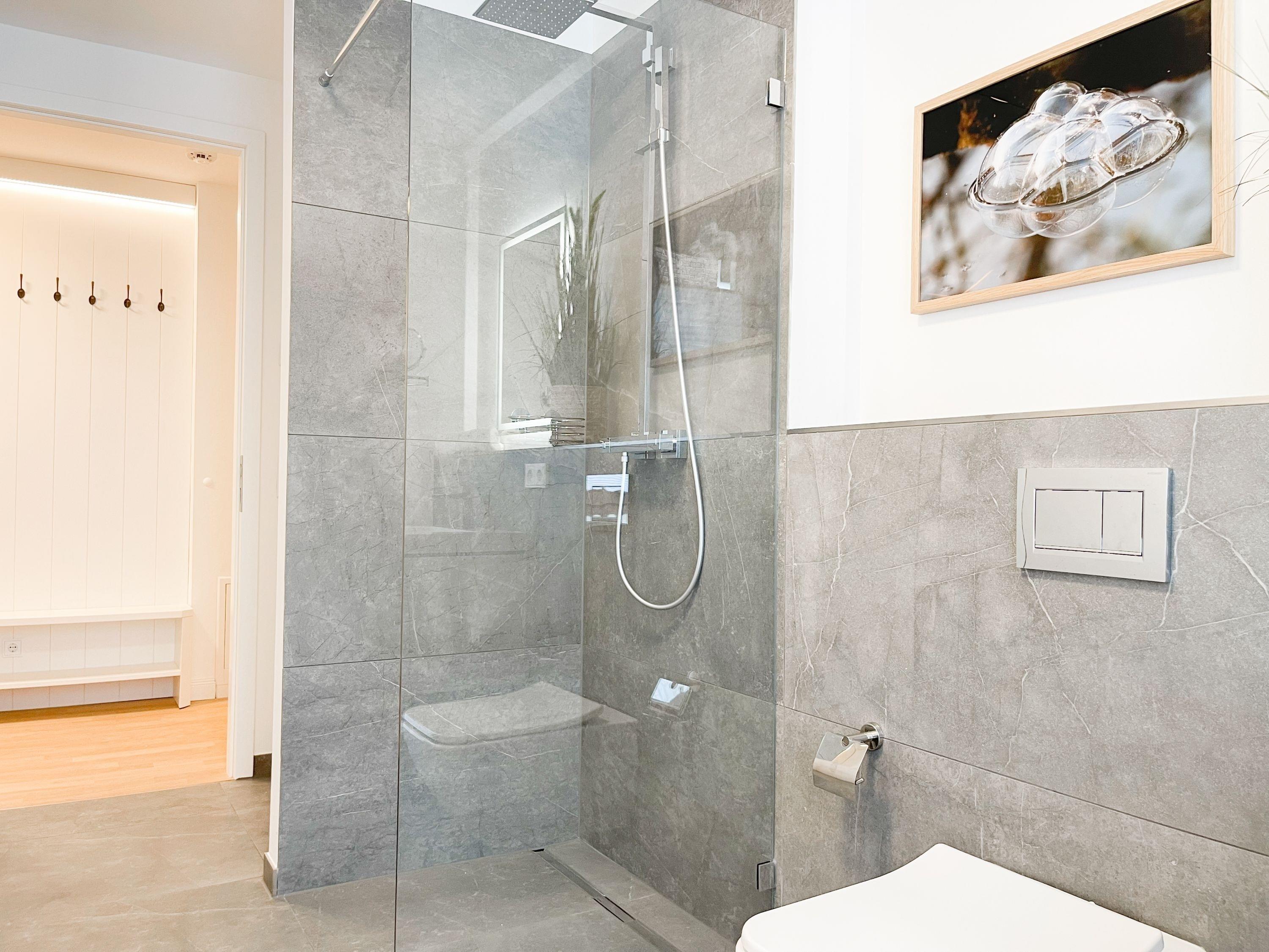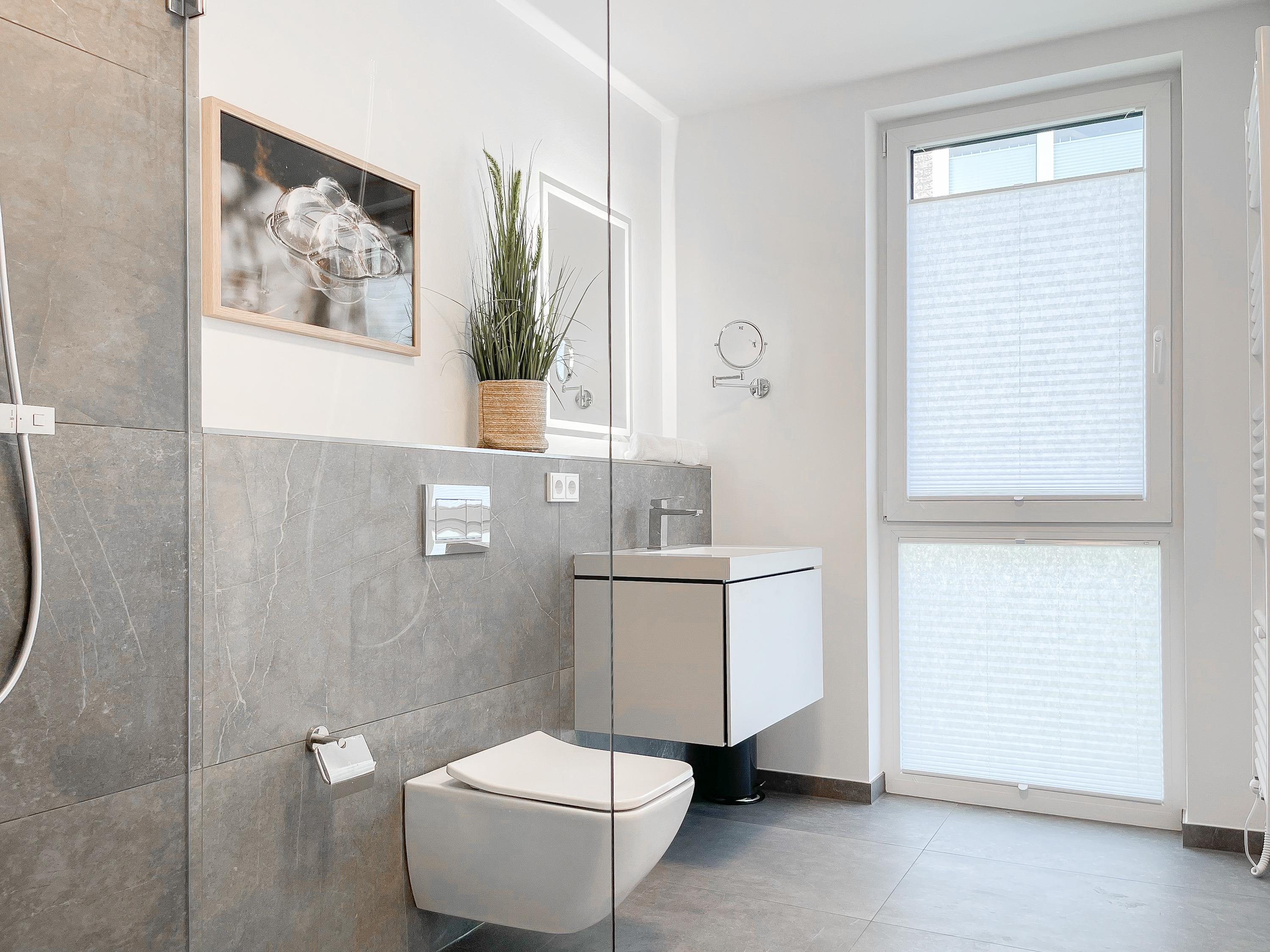 Es erwartet Sie eine äußerst hochwertig eingerichtete und bestens ausgestattete Ferienwohnung in der 1. Etage, die einen hohen Wohnstandard in einem schönen Ambiente gewährleistet. Mittelpunkt der Strandkoje bildet der Wohnbereich mit vorgelagertem Balkon und schönem Blick ins Grüne, der mit einem hochwertigen Sofa mit Schlaffunktion (140x200) ausgestattet ist. Der Essbereich bietet ausreichend Platz für 4 Personen zum gemütlichen Beisammensein und die großzügig angelegte Wohnküche ist bestens ausgestattet (Miele-Geräte) und lädt zum gemeinsamen Kochen ein. Das Schlafzimmer ist mit einem Boxspringbett (180x200), einem Kleiderschrank mit reichlich Stauraum, Plissees zur Verdunkelung und einem zusätzlichen TV eingerichtet. Das Bad ist großzügig und modern mit Walk In Dusche, Waschtisch, WC, Handtuchtrockner und Fenster sowie einem integriertem Waschtrockner. WLAN steht selbstverständlich zur kostenlosen Nutzung bereit.
