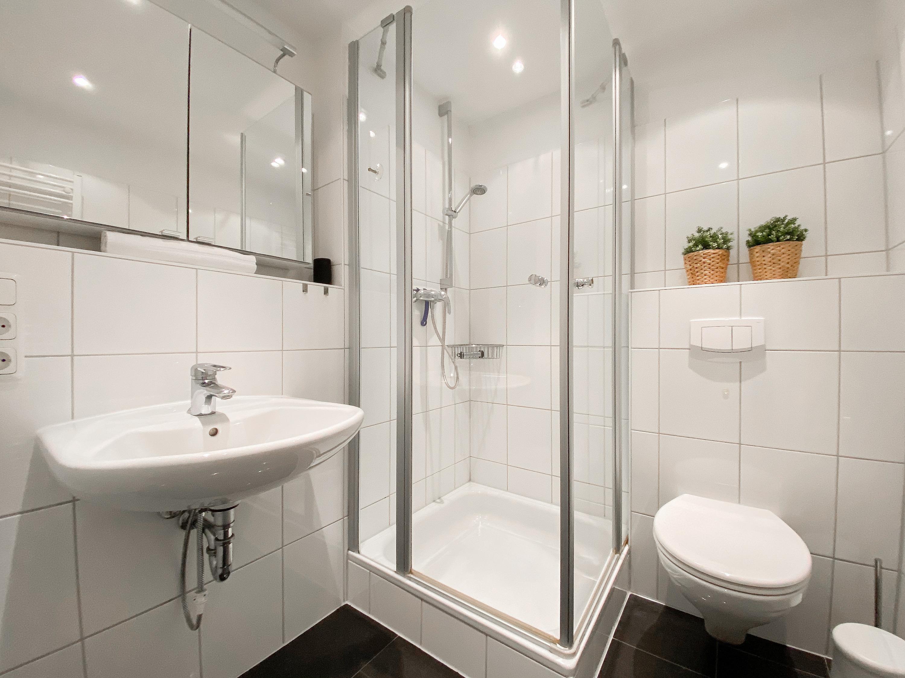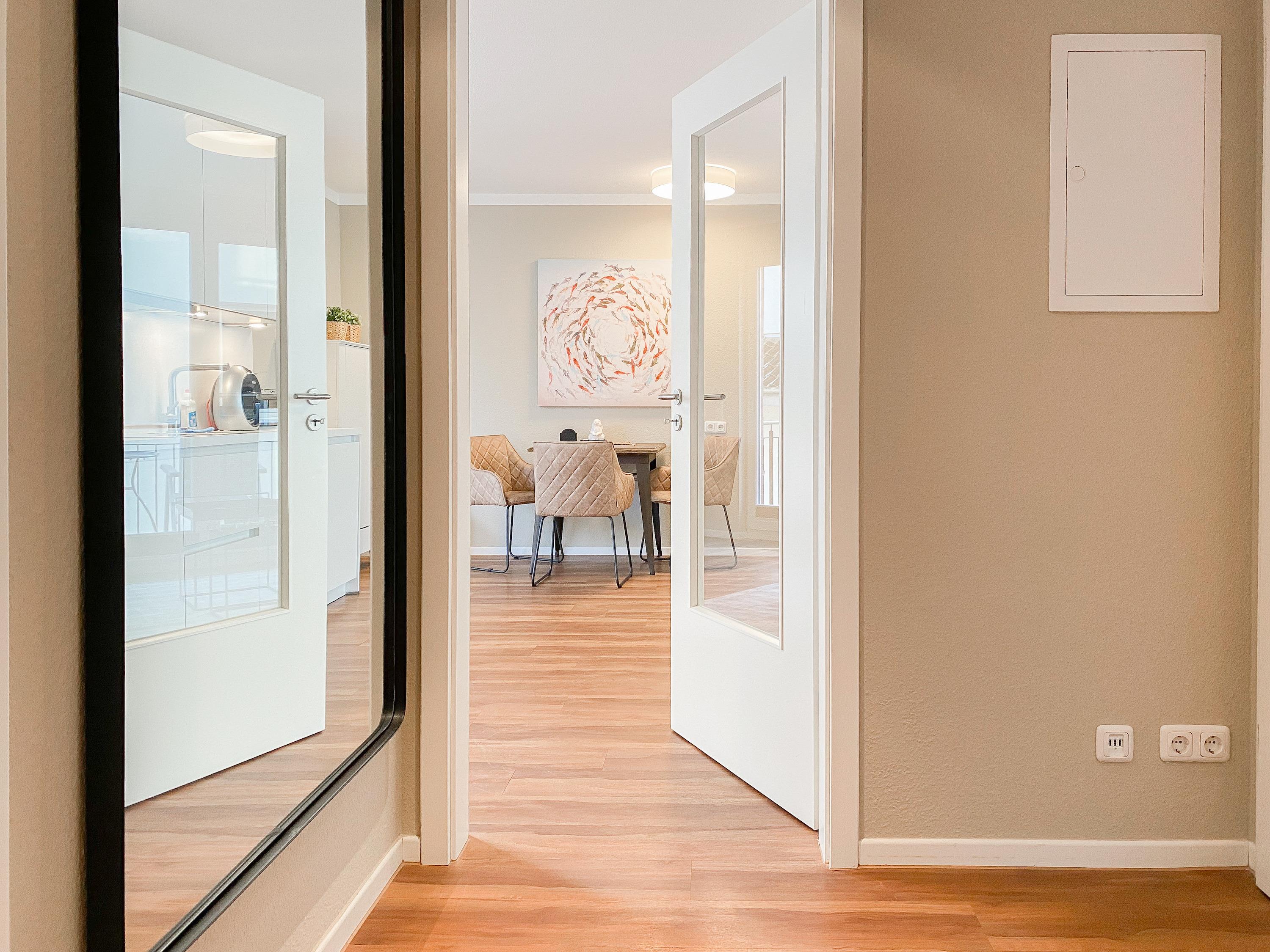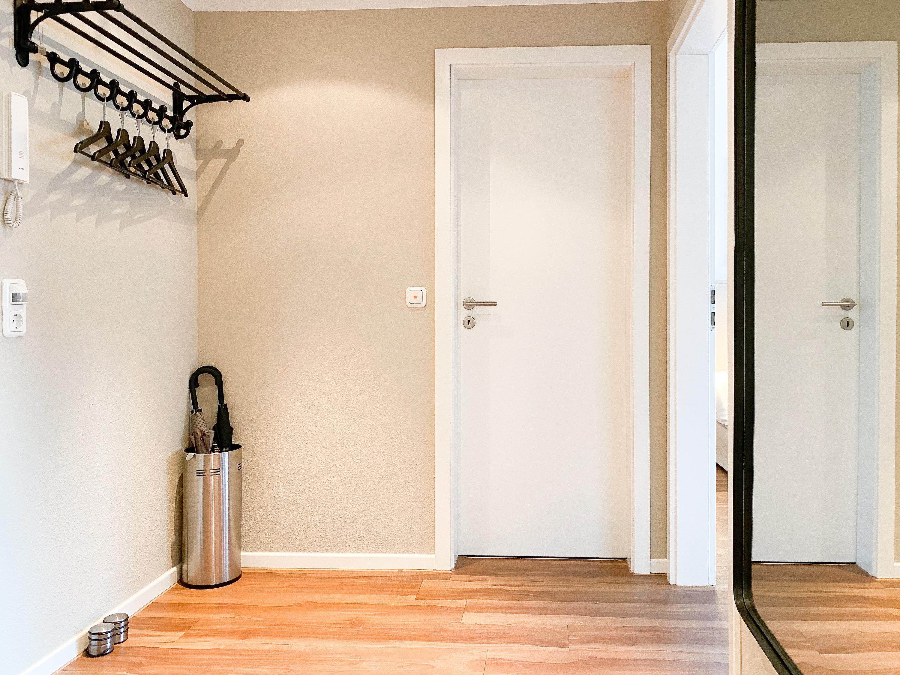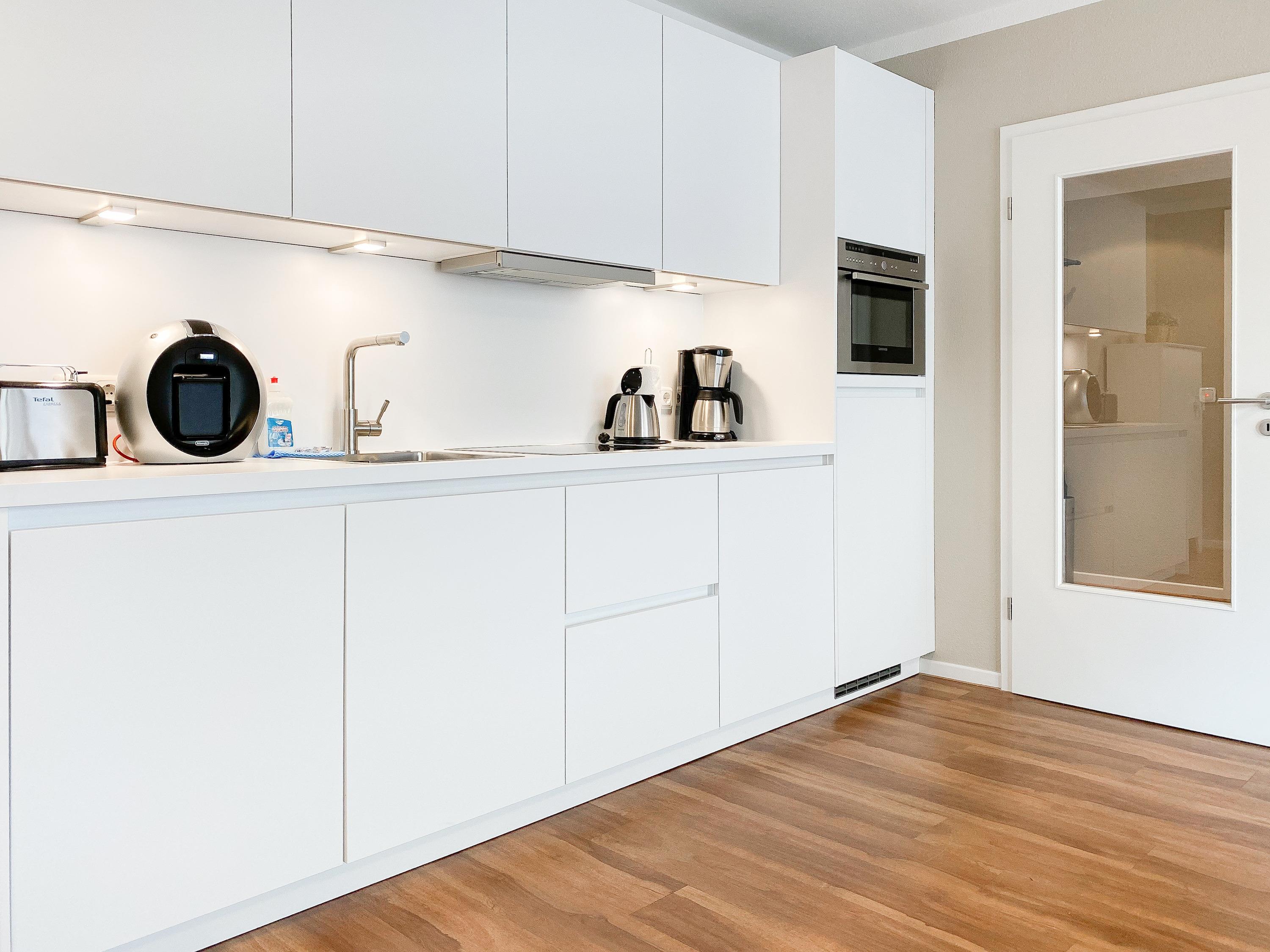 Die Ferienwohnung im 1. Obergeschoss ist hervorragend für[nbsp] 2-3 Personen geeignet und besticht durch ihr durchdachtes Raumkonzept. Es erwartet Sie ein gemütlicher Wohnbereich mit einem hochwertigen Sofa mit Schlaffunktion (140x180), ein anschließender Essbereich für 2 - 3 Personen und eine offene Designküche in bester Ausstattung. Die äußerst hochwertige neue Möblierung im Hampton Style vermittelt Strandflair und lädt zum Wohlfühlen in Strandnähe ein. Der Sonnenbalkon in Südausrichtung ist mit Gartenmöbeln und einer elektrischen Markise ausgestattet. Im Schlafzimmer befindet sich ein hochwertiges Boxspringbett (180x200), ein weiterer TV und die Fenster sind mit Insektenschutz und elektrischen Außenjalousien versehen, sodass ein hoher Schlafkomfort gewährleistet ist. Der Kleiderschrank bietet ausreichend Stauraum für Ihre Urlaubsgarderobe. Das Duschbad verfügt über einen Spiegelschrank mit entsprechender Ablagefläche, einen Handtuchwärmer und Föhn. Ein großer Flatscreen-TV und Radio im Wohnzimmer als auch die kostenlose Nutzung des WLAN gehören zum Entertainmentpaket. Ein fester Parkplatz befindet sich am Haus. Ein Fahrradkeller befindet sich im Untergeschoss und ist über die Treppe im Hausflur zu erreichen. Waschmaschine und Trockner stehen im Keller zur gemeinschaftlichen Nutzung zur Verfügung.