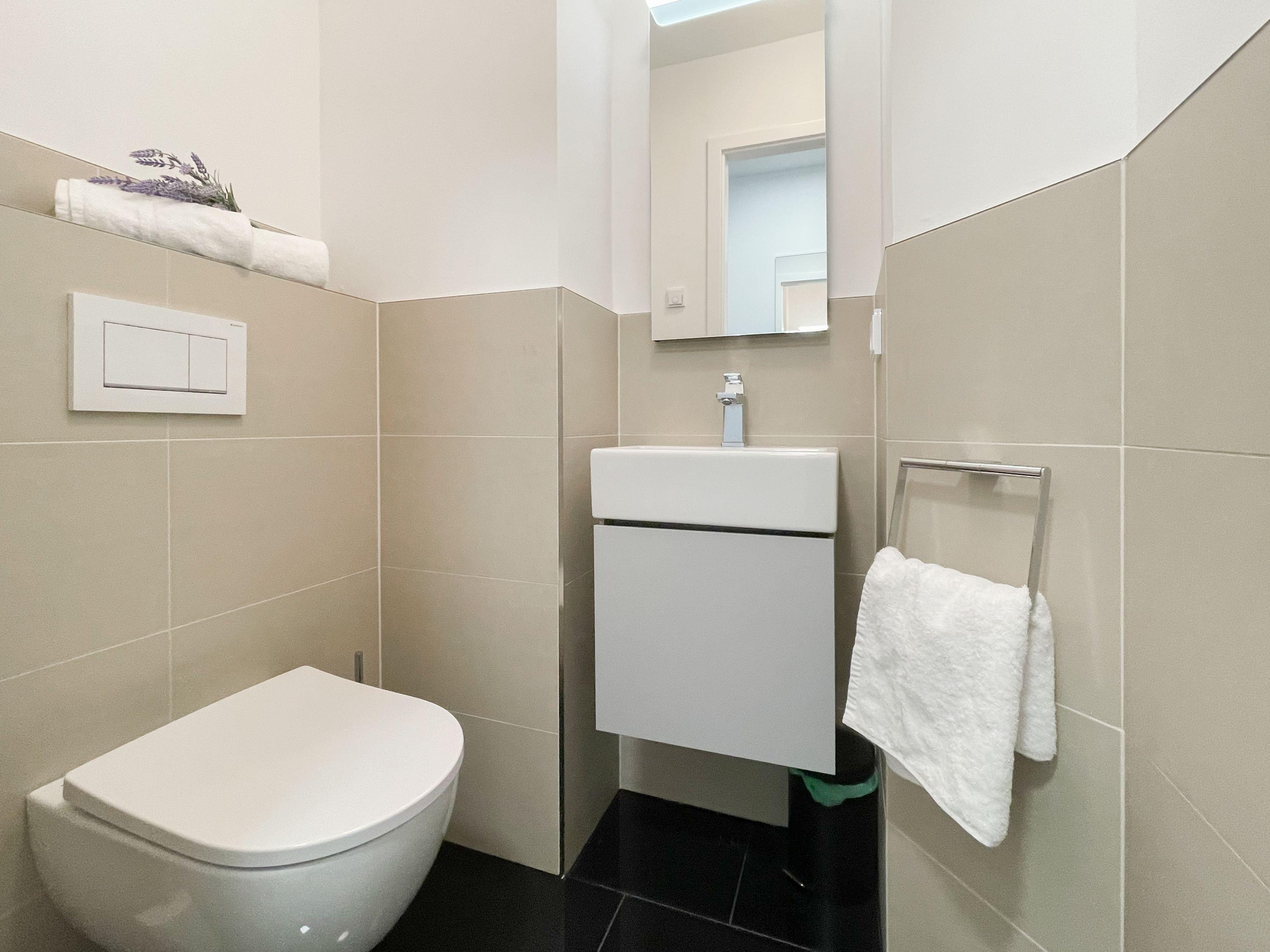 Die perfekt ausgestattete Erdgeschosswohnung ist sehr hochwertig eingerichtet und bietet höchsten Wohnkomfort in großzügigen Räumlichkeiten. Bodentiefe Fensterelemente, Echtholzböden und Fußbodenheizung sorgen für eine wunderbare Atmosphäre zum wohlfühlen. Der lichtdurchflutete Wohnbereich ist mit einem Sofa, 2 Sesseln, TV und Radio eingerichtet und der anschließende Essbereich bietet ausreichend Platz für 4 Personen. Die Küche verfügt über wertige Markengeräte und die Ausstattung läßt keine Wünsche offen. Genießen Sie die Morgensonne beim ersten Kaffee auf der Ostterrasse, die sich über den gesamten Wohn- Essbereich erstreckt. Das große Schlafzimmer ist mit einem Doppelbett (180x200), einem Kleiderschrank mit reichlich Stauraum für die Urlaubsgarderobe, einem TV und Vorhängen zur Verdunkelung ausgestattet. Bettwäsche und Handtücher sind im Strandläufer inklusive, sodass bei Anreise die Betten bezogen sind und Handtücher bereit liegen. Das überaus großzügig angelegte Bad verfügt über eine XXL Walk In Dusche, Waschtisch, WC, Bidet, Handtuchtrockner und Fenster. W-LAN steht selbstverständlich zur kostenlosen Nutzung bereit. Die Wohnung ist fast barrierefrei (außer der minimalen Fensterleibung zur Terrasse) und für Allergiker geeignet.