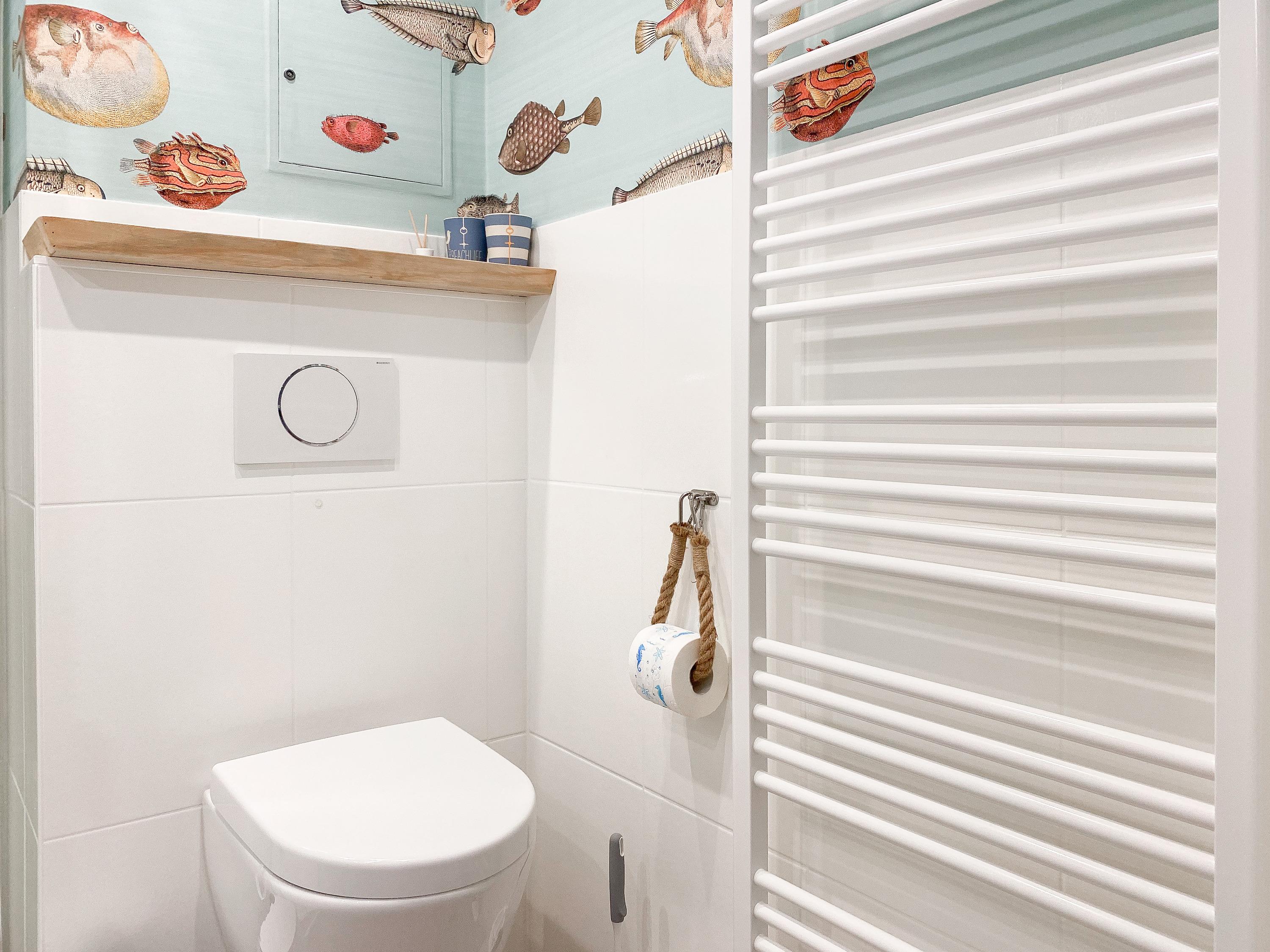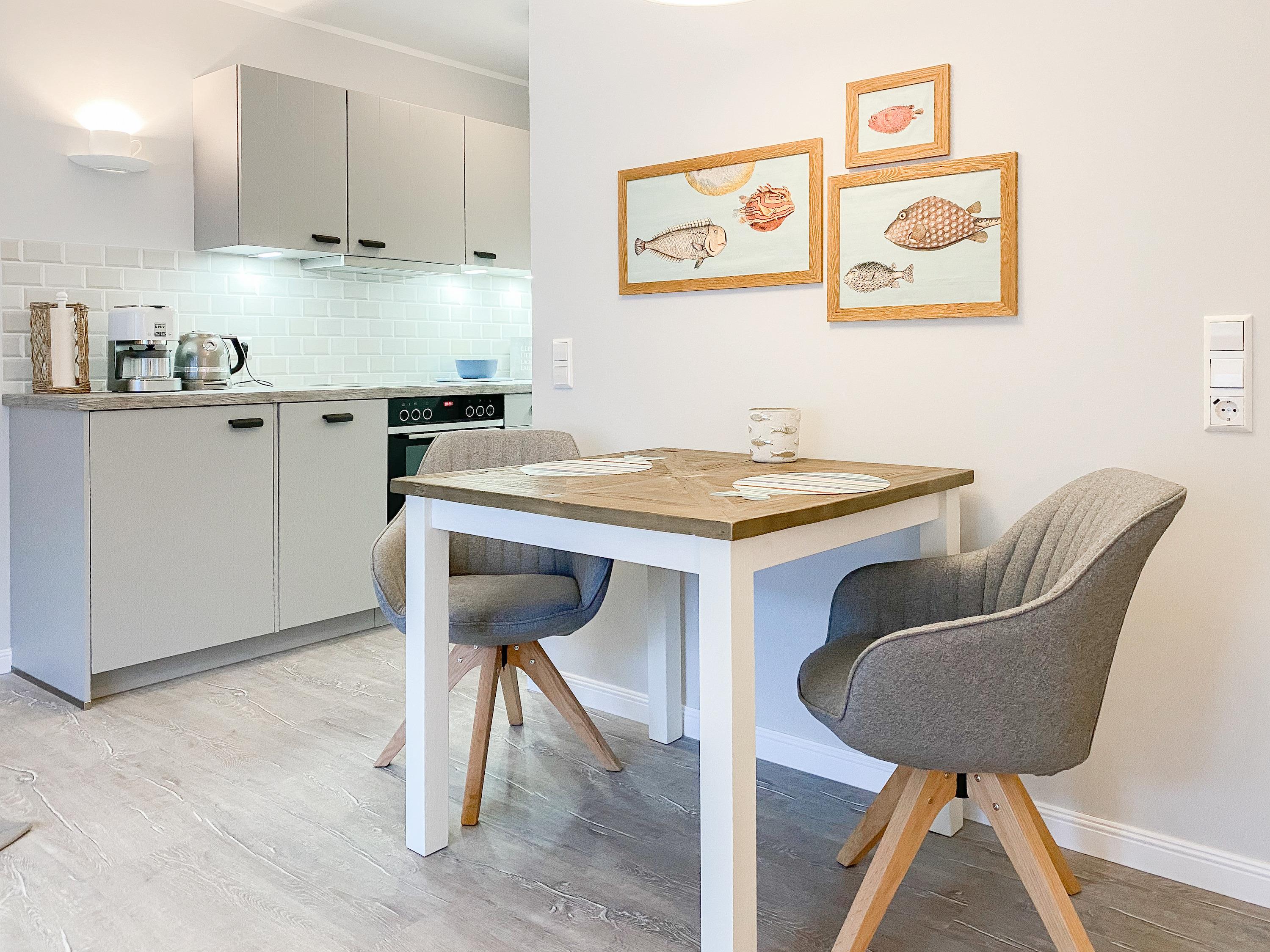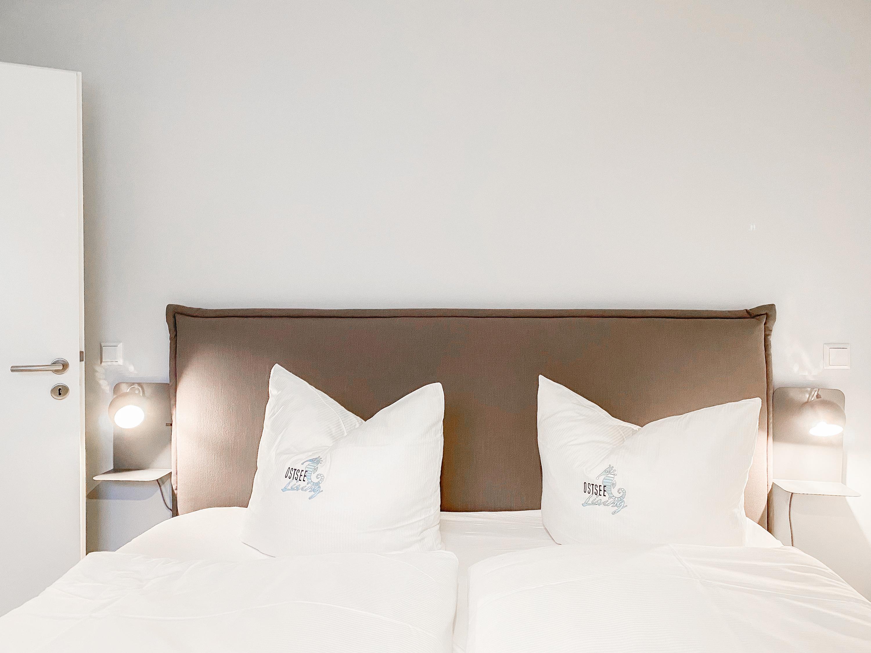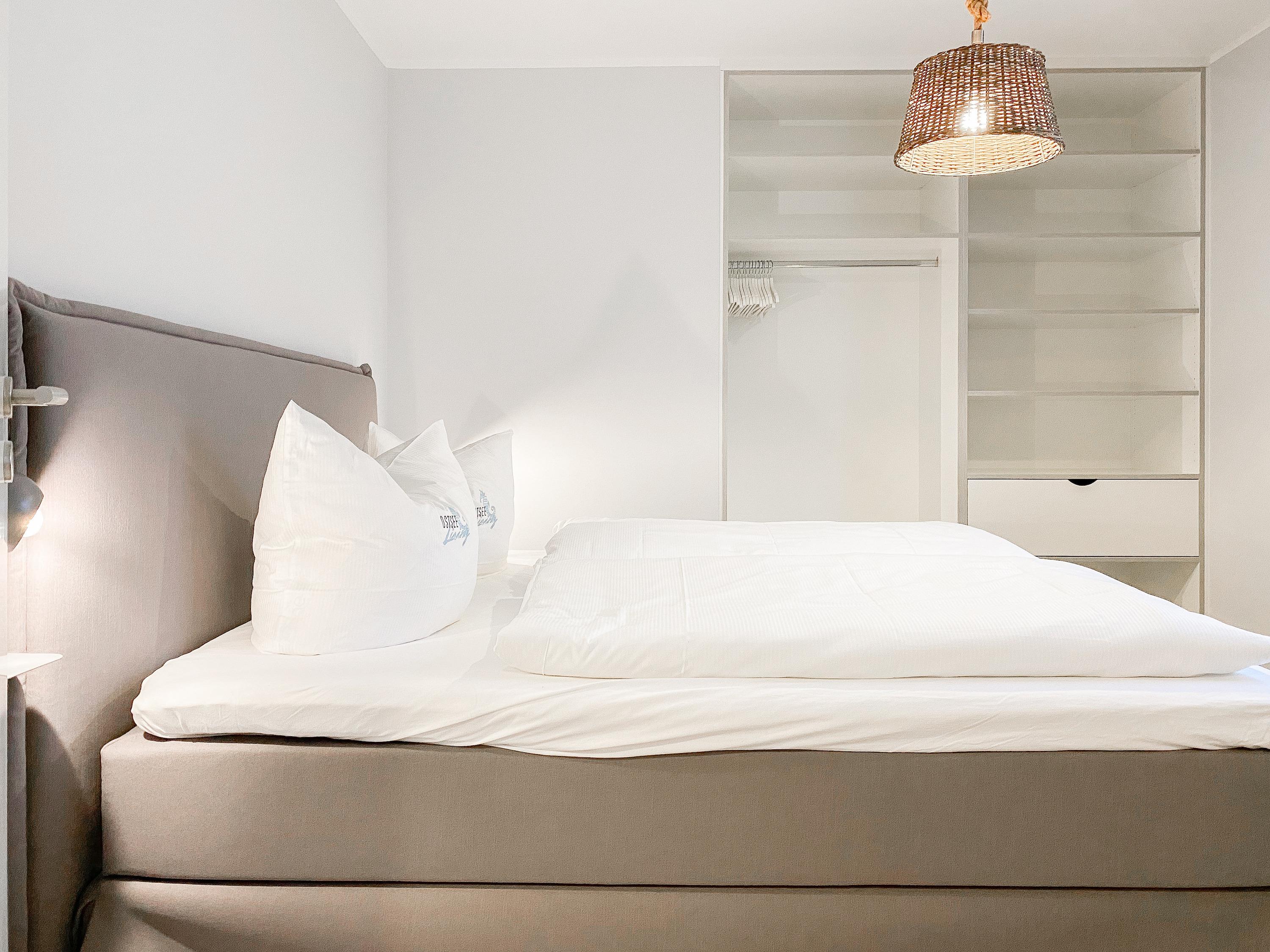 Die Ferienwohnung im 2. Obergeschoss ist hervorragend für[nbsp] 2 Personen geeignet und besticht durch ihr durchdachtes Raumkonzept. Es erwartet Sie ein gemütlicher Wohnbereich mit einem hochwertigen Sofa mit Schlaffunktion (140x190), ein anschließender Essbereich für 2 Personen und eine offene Designküche in bester Ausstattung. Eine liebevoll ausgesuchte Inneneinrichtung und die perfekt darauf abgestimmten Dekorationselemente im Beachstyle laden zum Wohlfühlen in Strandnähe ein. Der teilweise überdachte Sonnenbalkon, ausgestattet mit hochwertigen Gartensesseln mit verstellbarem Rückenteil und Fußhocker, bietet einen schönen Teilseeblick, Meeresrauschen inklusive. Im Schlafzimmer befindet sich ein hochwertiges Boxspringbett, das Ihnen mit einer Größe von 180 x 200 einen hohen Schlafkomfort verspricht und die Fenster sind mit elektrischen Außenjalousien versehen. Der offene Einbauschrank ist großzügig bemessen und bietet ausreichend Stauraum für Ihre Urlaubsgarderobe. Das moderne Duschbad empfängt Sie in einem fröhlichbunten Innendesign und der Handtuchwärmer sorgt für zusätzlichen Komfort. Sowohl ein großer Flatscreen-TV im Wohnzimmer als auch die kostenlose Nutzung des WLAN gehören zum Entertainment-Paket. Ein Aufzug ist selbstverständlich vorhanden.