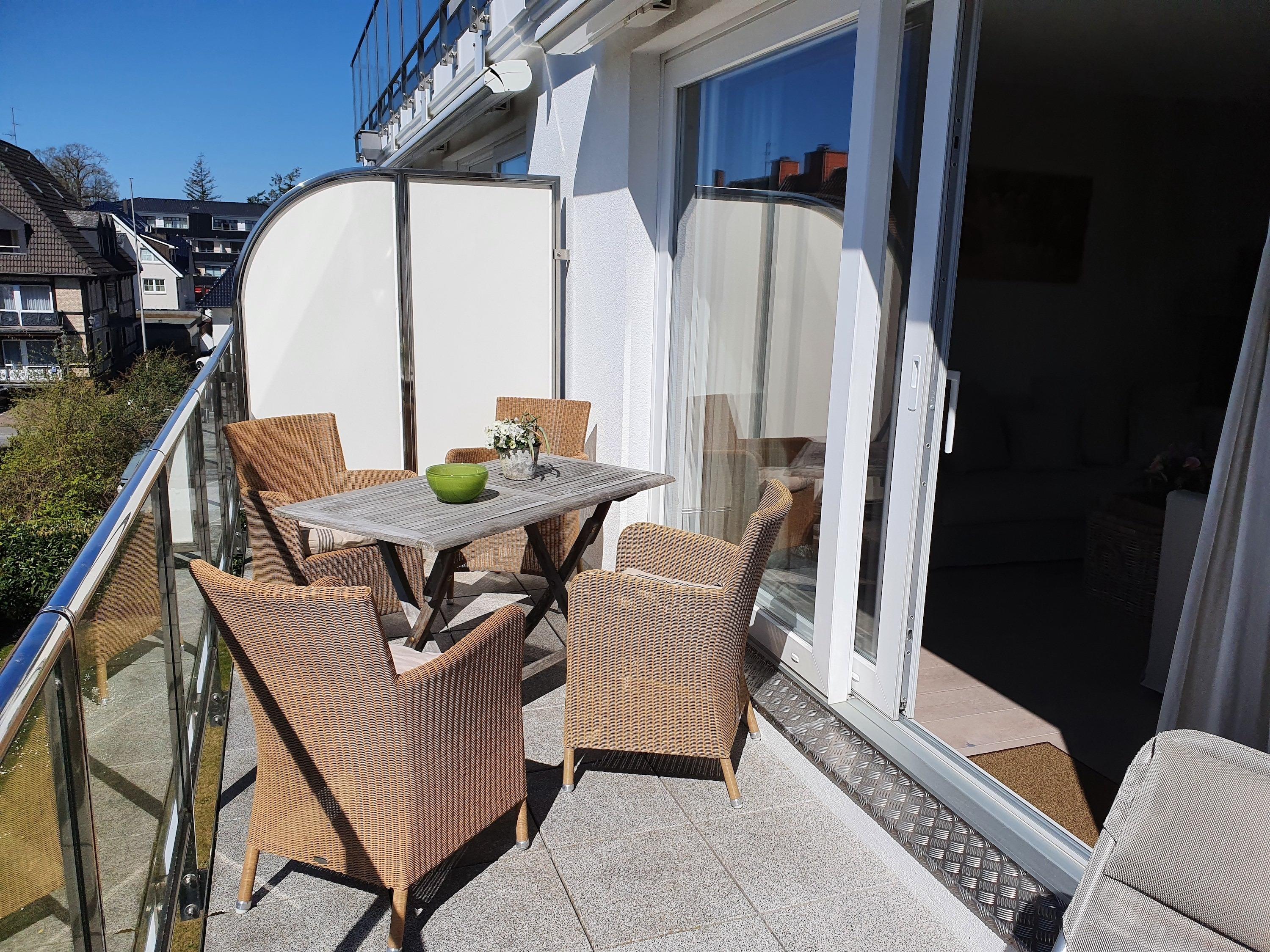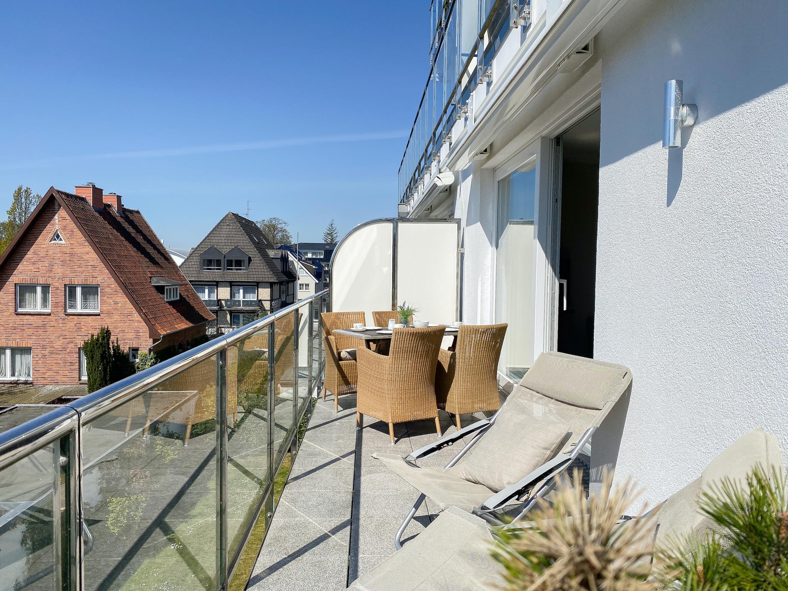 Exklusive Ferienwohnung Strandhafer in Timmendorfer Strand, nur wenige Schritte zur Ostsee und Promenade, mit Balkon und hochwertiger Ausstattung.