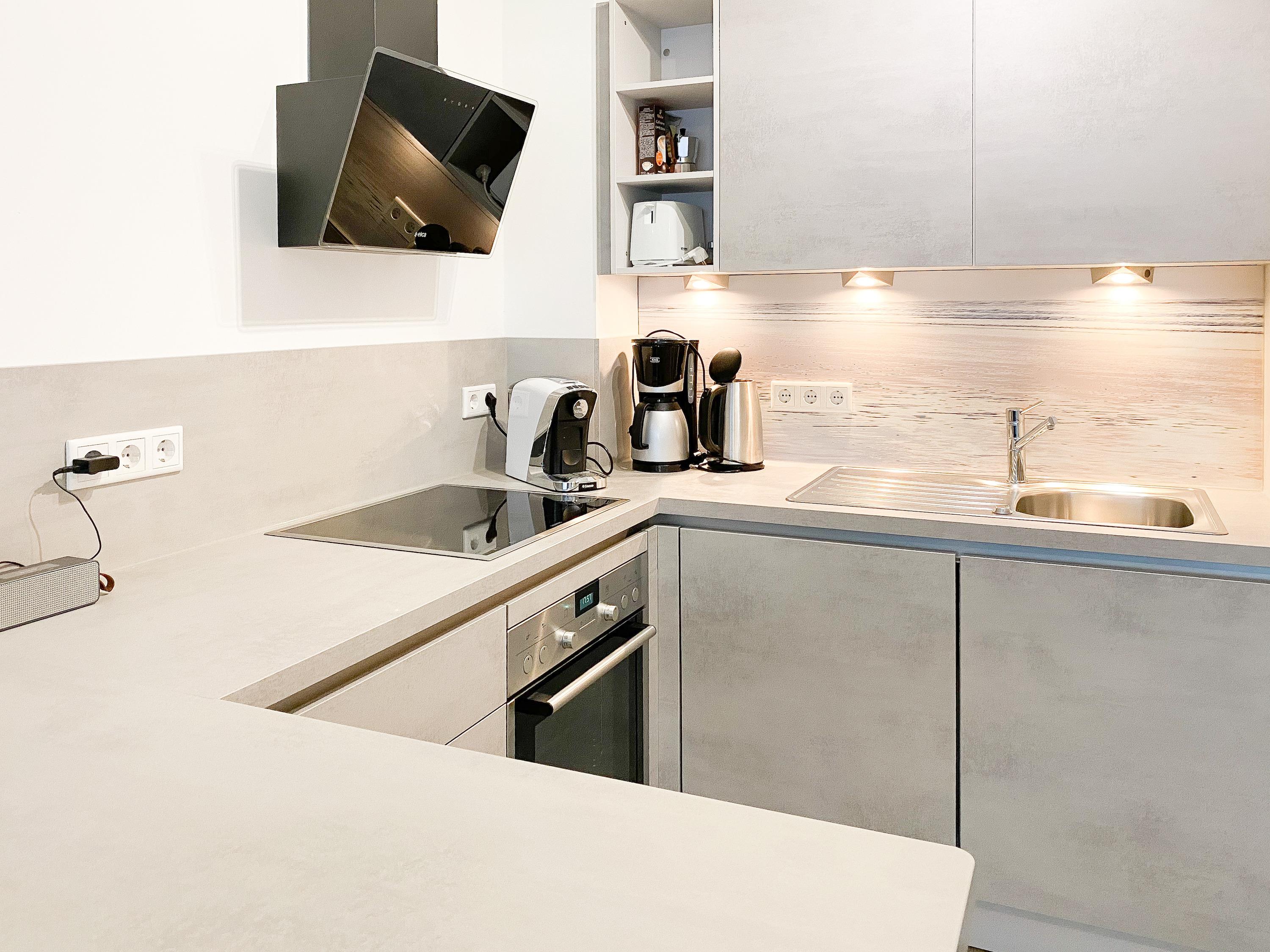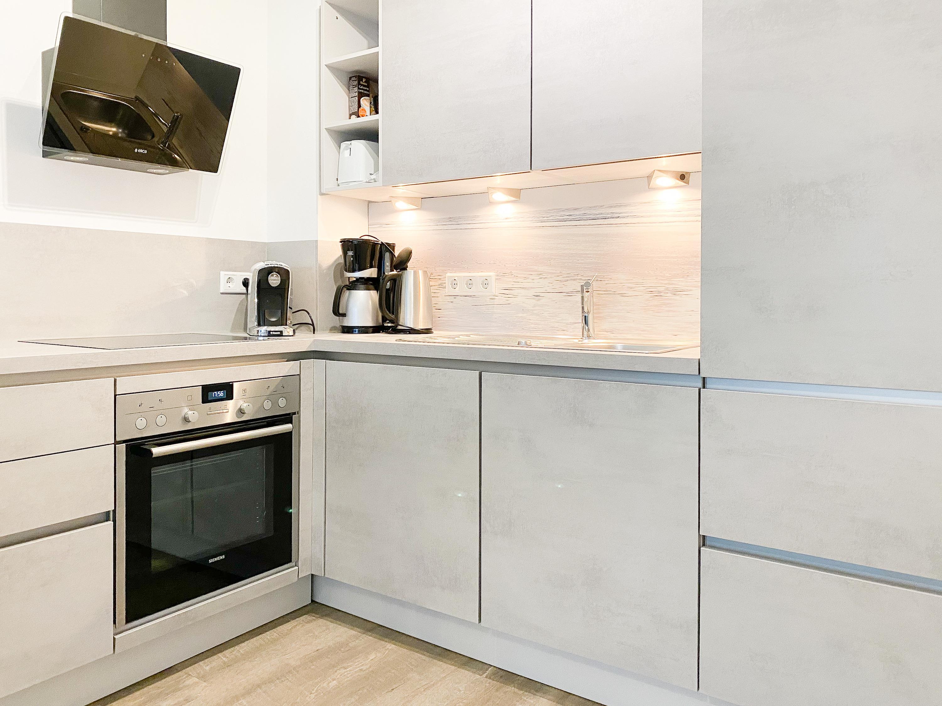 Die Ferienwohnung "Lütte Krabbe" bietet ausreichend Platz für 2-3 Personen. Große, bodentiefe Fensterelemente sorgen für einen hellen, freundlichen Wohnbereich, der mit einem Sofa mit Schlaffunktion, zwei Sesseln und TV ausgestattet ist. Auf der Sonnenterrasse in Südausrichtung, die sich über die gesamte Breite der Wohnung erstreckt, lässt es sich mit reichlich Sonnenschein vom Frühstück bis zum Abend herrlich entspannen. Die offene Küche mit integriertem Essbereich verfügt über alle technischen Geräte wie Backofen, Ceranfeld und Geschirrspüler sowie alle notwendigen Küchenutensilien. Das separate Schlafzimmer ist mit einem Doppelbett (180x200) und ausgestattet verfügt ebenfalls über einen Terrassenzugang.[nbsp] Alle Räume sind mit elektrischen Außenjalousien versehen und lassen sich vollständig verdunkeln. Das moderne Duschbad verfügt über Fußbodenheizung und einen Handtuchwärmer. WLAN steht selbstverständlich zur kostenlosen Nutzung zur Verfügung.