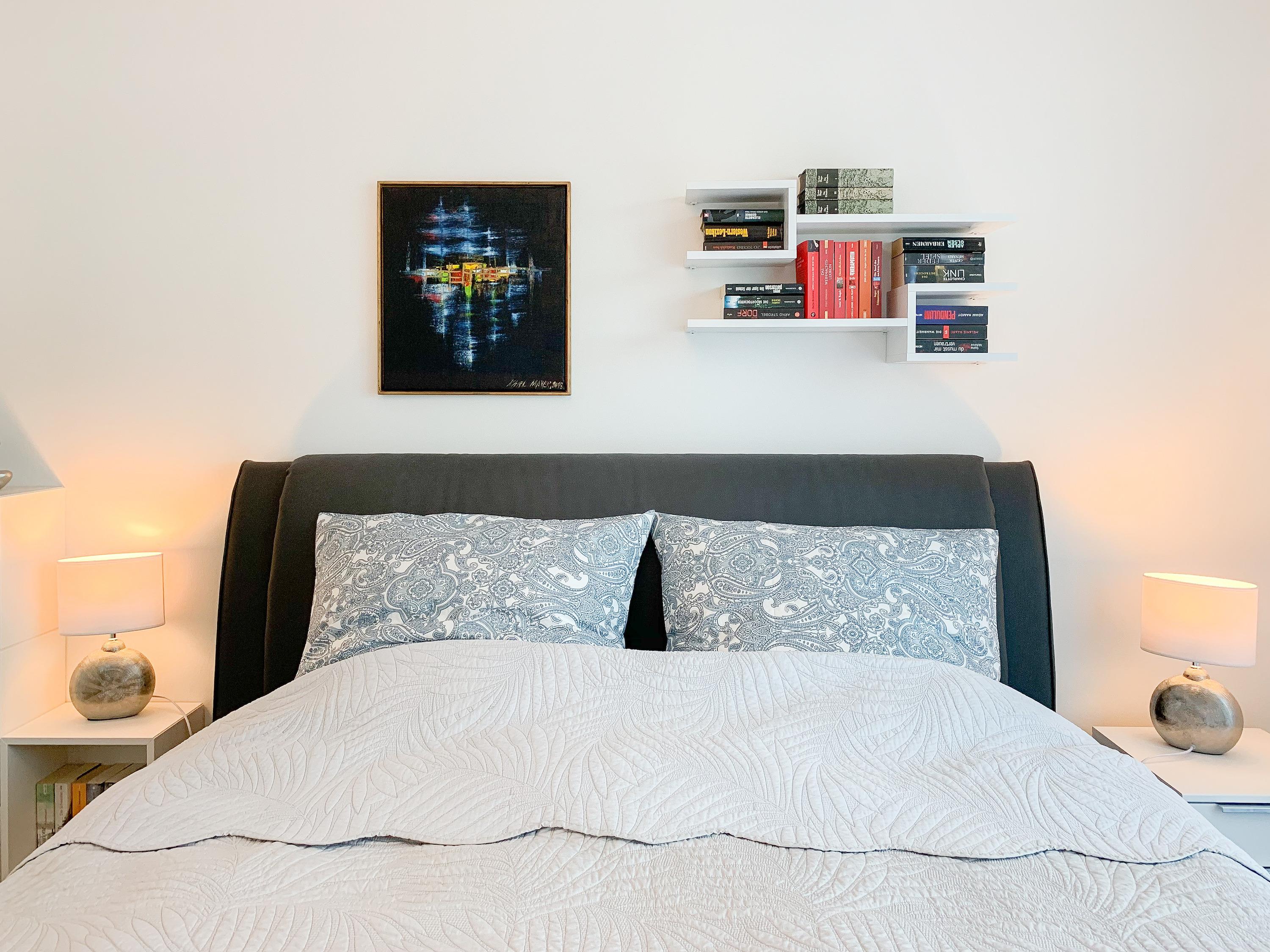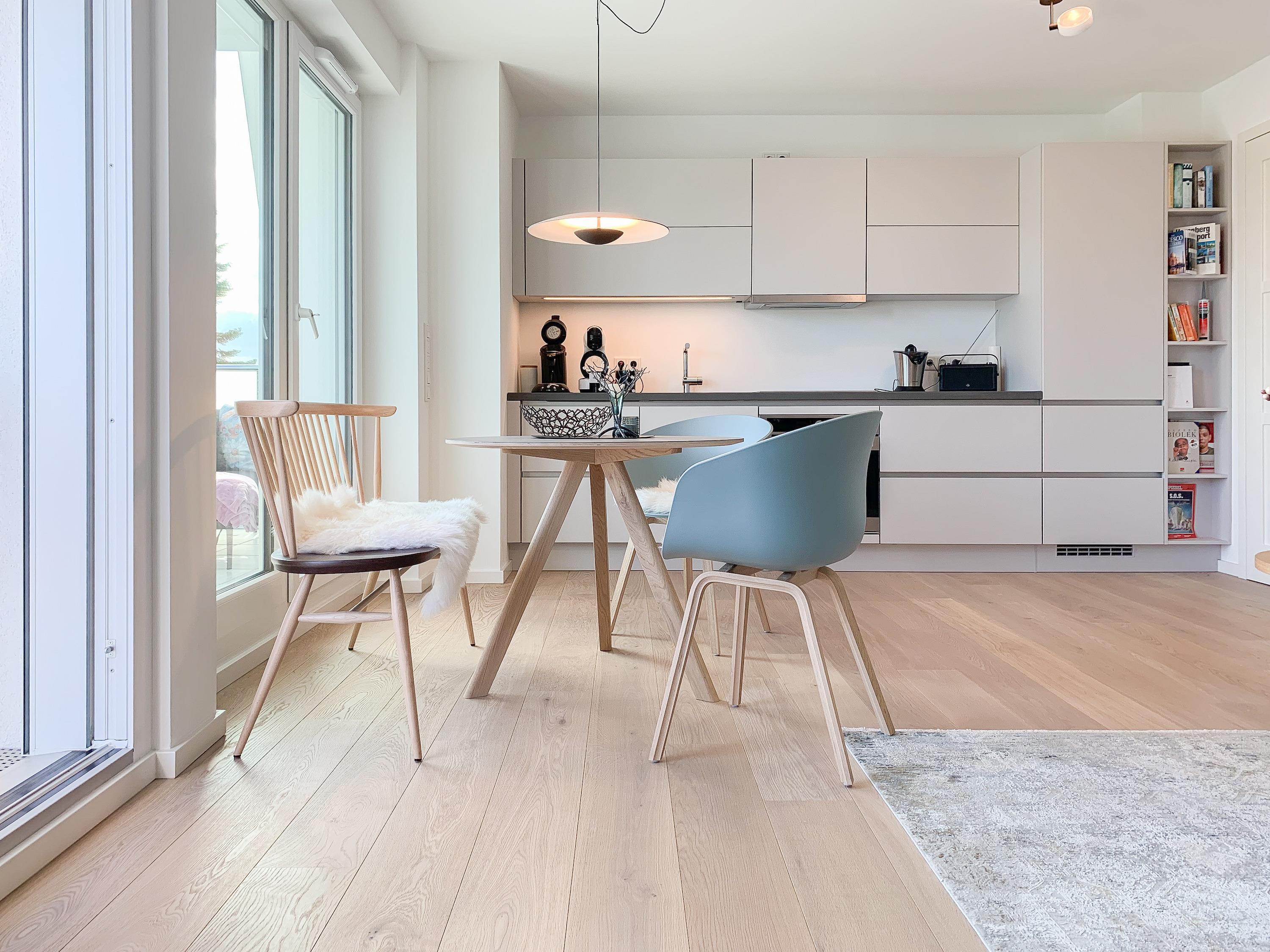 Durch das Zusammenspiel von Farben und hochwertigen Materialien mit viel Liebe zum Detail ist es gelungen eine wunderbare Atmosphäre zu schaffen. Echtholzparkett und Fußbodenheizung sorgen für ein angenehmes Raumklima und große Fensterflächen, alle mit elektrischen Außenjalousien versehen, für lichtdurchflutete Räumlichkeiten. Es erwartet Sie ein kombinierter Wohn- Essbereich mit hochwertigem Schlafsofa und integrierter Einbauküche. Der großzügige Südbalkon ist mit exklusiven Garten- und Loungemöbeln ausgestattet und mit einem Deckenheizstrahler versehen, um den Außenbereich auch an kühleren Abenden nutzen zu können. Vor dem Schlafzimmer, ausgestattet mit einem Boxspringdoppelbett und TV, befindet sich ein weiterer Balkon, um die Morgensonne bei einer Tasse Café zu genießen. Das Bad ist luxuriös und verfügt über eine großzügig angelegte Walk In Dusche.