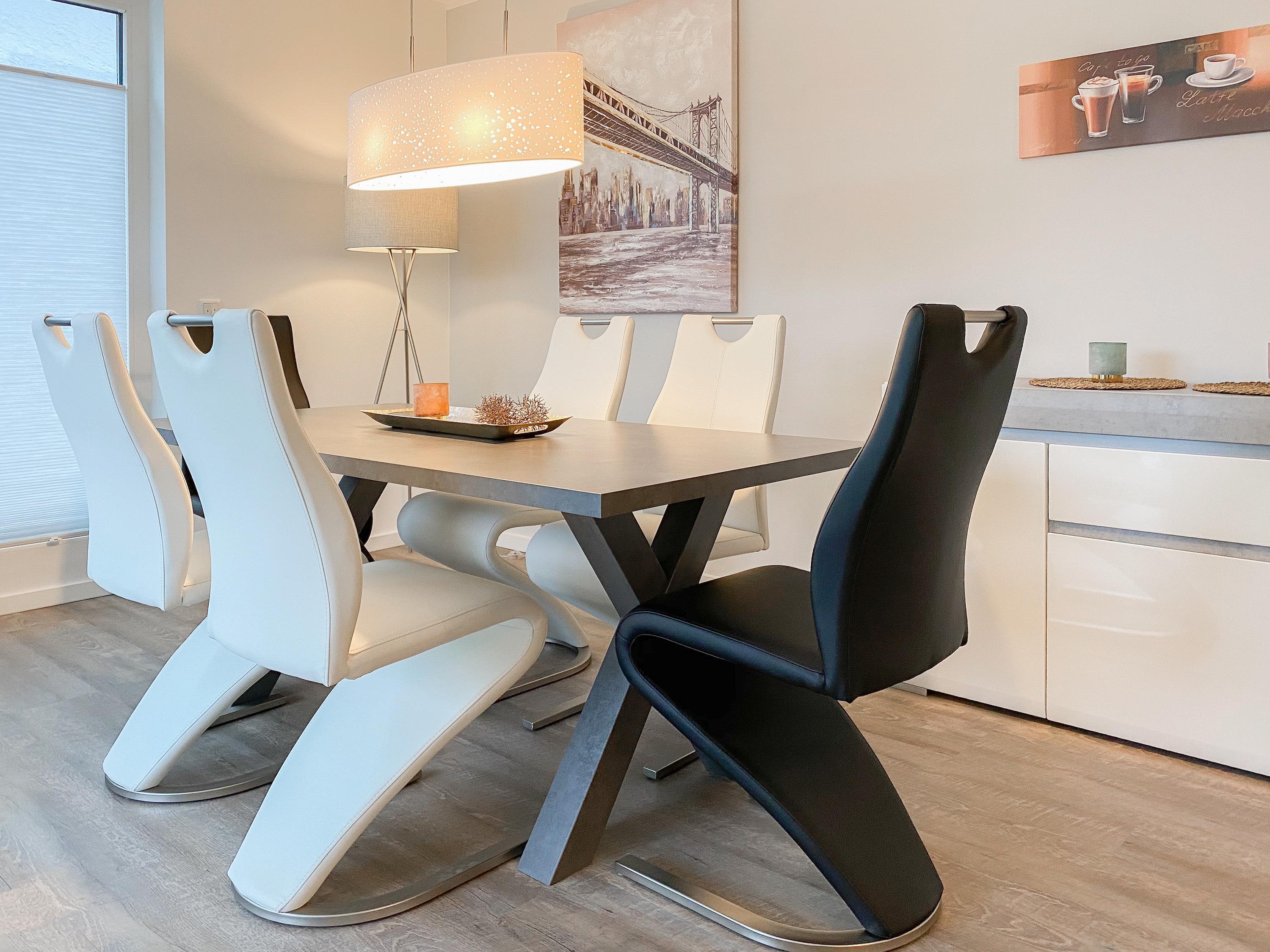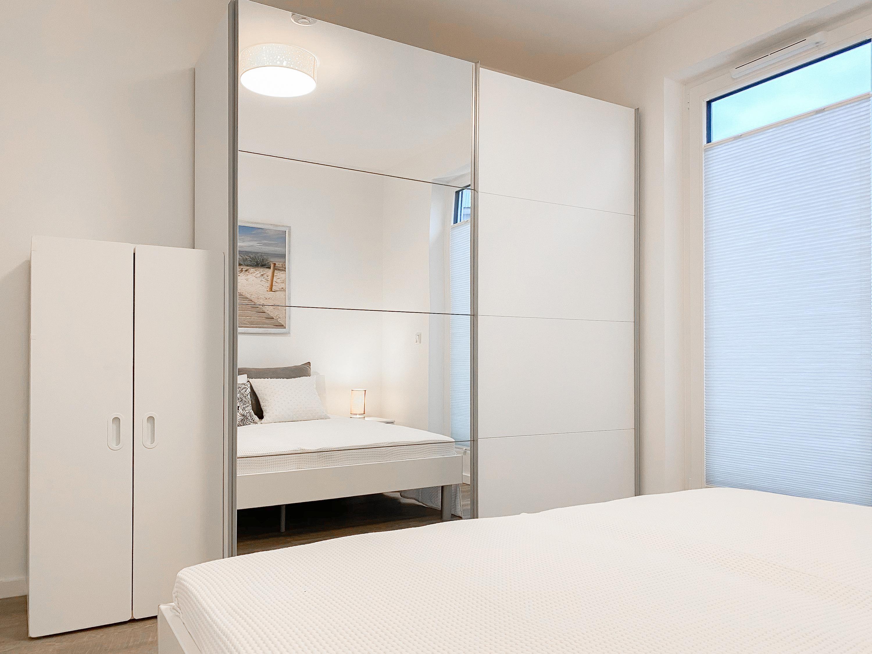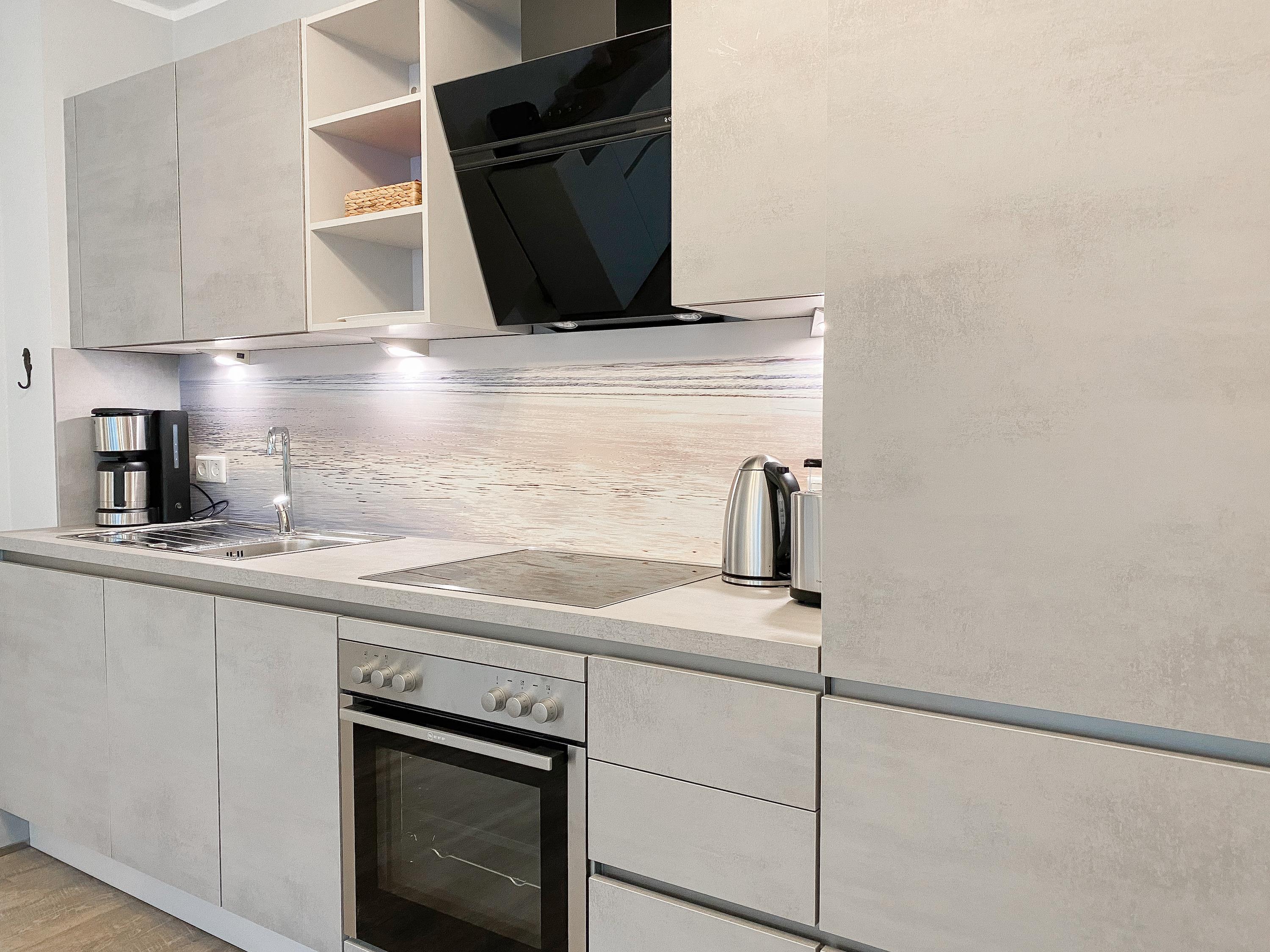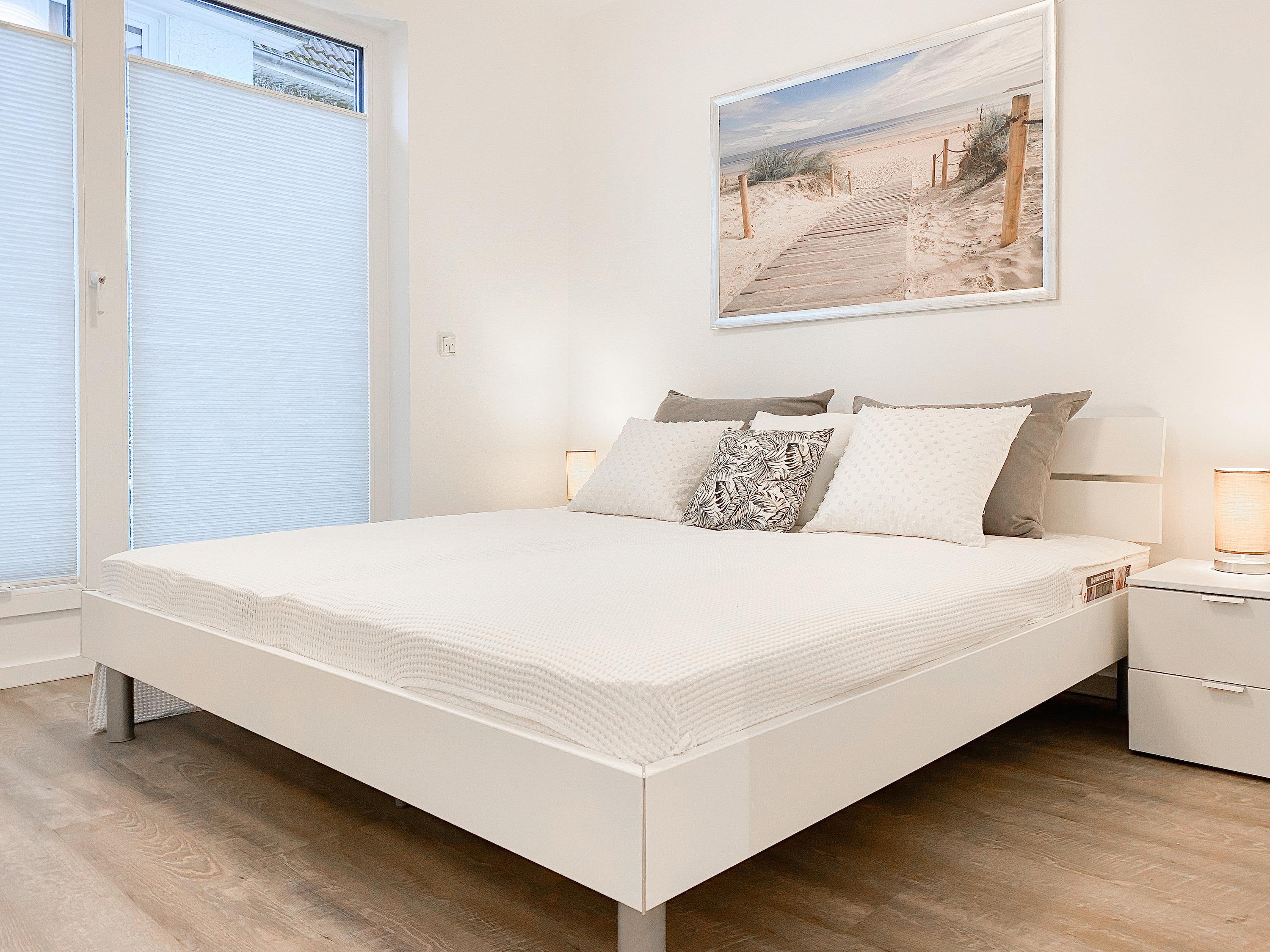 Die großzügig geschnittene Erdgeschosswohnung bietet auf ca. 60 qm Wohnfläche genügend Platz für 4 Personen, um einen entspannten Urlaub zu verleben. Sämtliche Annehmlichkeiten eines Neubaus wie bodentiefe Fenster, Fußbodenheizung und elektrische Außenjalousien sorgen für helle Räumlichkeiten und eine angenehmes Raumklima. Zur Verfügung stehen zwei separate Schlafzimmer, eingerichtet mit einem Doppelbett (180x200) und einem Schlafsofa (140x200) sowie ein modernes Bad mit Walk In Dusche. Die bestens ausgestattete Einbauküche ist direkt mit dem großzügigen Wohn- Essbereich verbunden. Auf der möblierten Terrasse in Südausrichtung können Sie die Sonnentage von früh bis spät an der frischen Luft genießen. Selbstverständlich gehören die kostenlose WLAN Nutzung, Radio und TV zur Ausstattung.