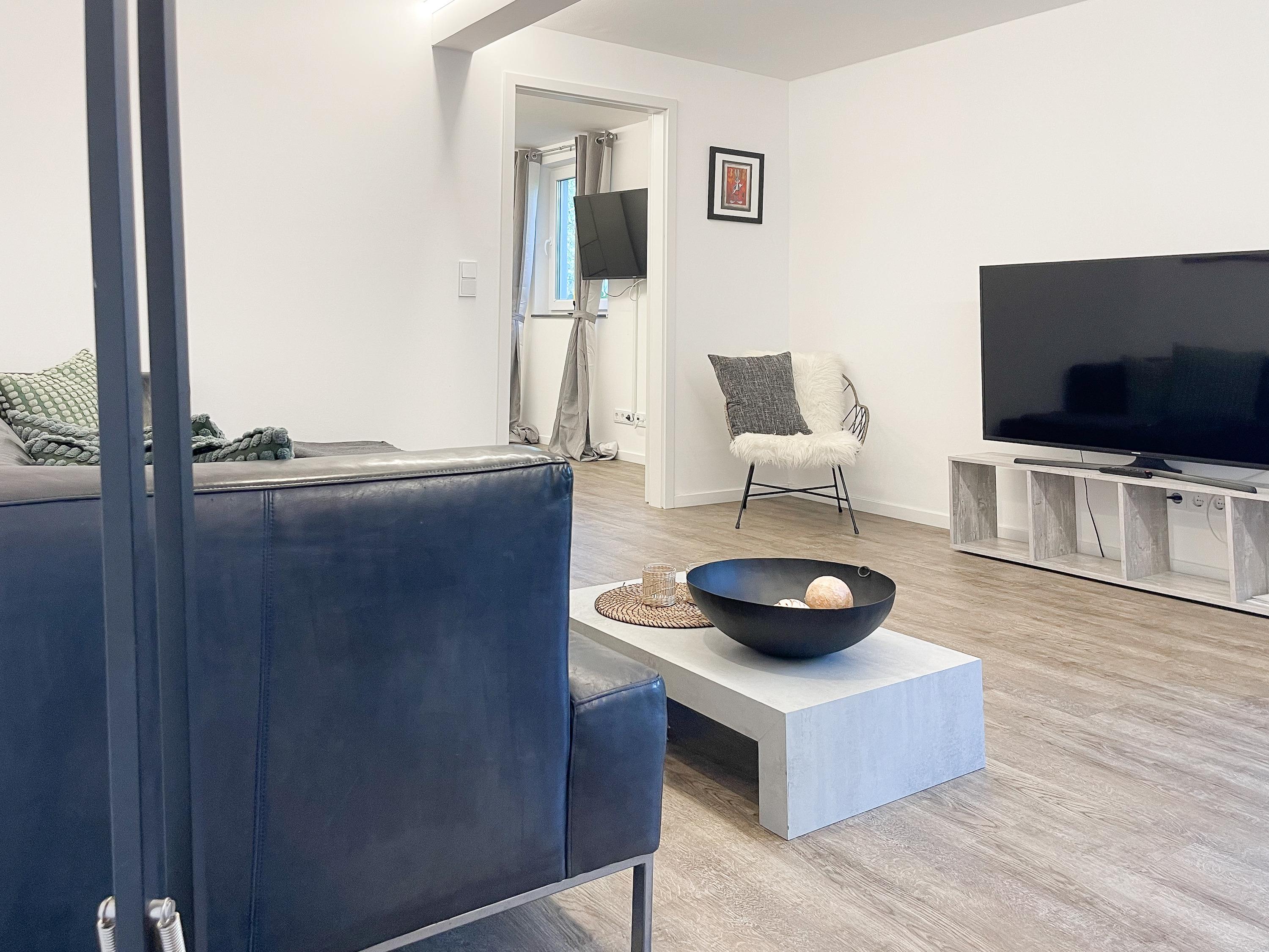 Die Ferienwohnung Waterkant #4 befindet sich im Erdgeschoss und bietet mit 1 Schlafzimmer auf 55 qm ausreichend Raum für 2 Personen, um einen entspannten Ostseeurlaub in Strandnähe zu verleben. Es erwartet Sie ein äußerst großzügiger Wohnbereich mit Sofa, ein anschließender Essbereich und eine offene Einbauküche, gut ausgestattet mit Ceranfeld, Backofen, Geschirrspüler und Kühl- und Gefrierschrank. Die Terrasse mit kleinem Garten erstreckt sich über die gesamte Breite der Wohnung. Der Außenbereich ist umzäunt, jedoch offen zur Nachbarwohnung. Das Schlafzimmer ist mit einem Doppelbett (Boxspring 180x200), TV, Verdunkelungsvorhängen und einem Kleiderschrank eingerichtet. Das Bad ist mit einer Walk In Dusche, Waschtisch, WC und Handtuchwärmer ausgestattet. WLAN kann selbstverständlich kostenlos genutzt werden. Ein Außenstellplatz gehört zur Wohnung. Ein abschließbarer Fahrradraum kann gemeinschaftlich genutzt werden, ebenso Waschmaschine und Trockner, die im separaten Waschraum untergebracht sind.
