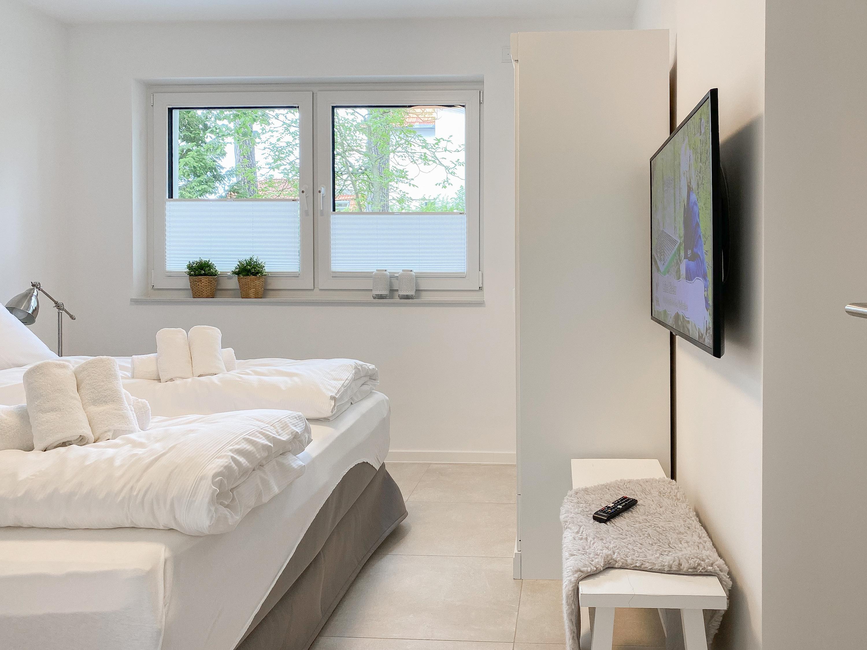 Die Ferienwohnung Wohnen am Strand 3 befindet sich im Erdgeschoss und bietet mit 2 Schlafzimmern, ausgestattet mit Boxspringbetten (180x200 und 160x200)[nbsp][nbsp]und TV sowie 2 Duschbädern, [nbsp]jeglichen Komfort für 4 Personen, um einen entspannten Urlaub zu verleben. Der hochwertig eingerichtete Wohn- Essbereich bietet einen schönen Ausblick auf den maritim angelegten Garten. Entspannen Sie auf Ihrer überdachten Terrasse, Brandungsrauschen und frische Ostseeluft inklusive. Es stehen insgesamt 3 TV,[nbsp] Radio und WLAN zur Verfügung. Die Wohnung ist mit Fußbodenheizung ausgestattet und alle Fenster sind mit elektrischen Außenjalousien versehen, die gleichermaßen für Verdunkelung oder Tageslicht mit Privatsphäre sorgen. Zur Wohnung 3 gehört ein fester PKW- Außenstellplatz. Das Haus verfügt über einen Fahrstuhl und einen Fahrradkeller. Waschmaschine und Trockner stehen kostenlos zur gemeinschaftlichen Nutzung[nbsp] zur Verfügung.