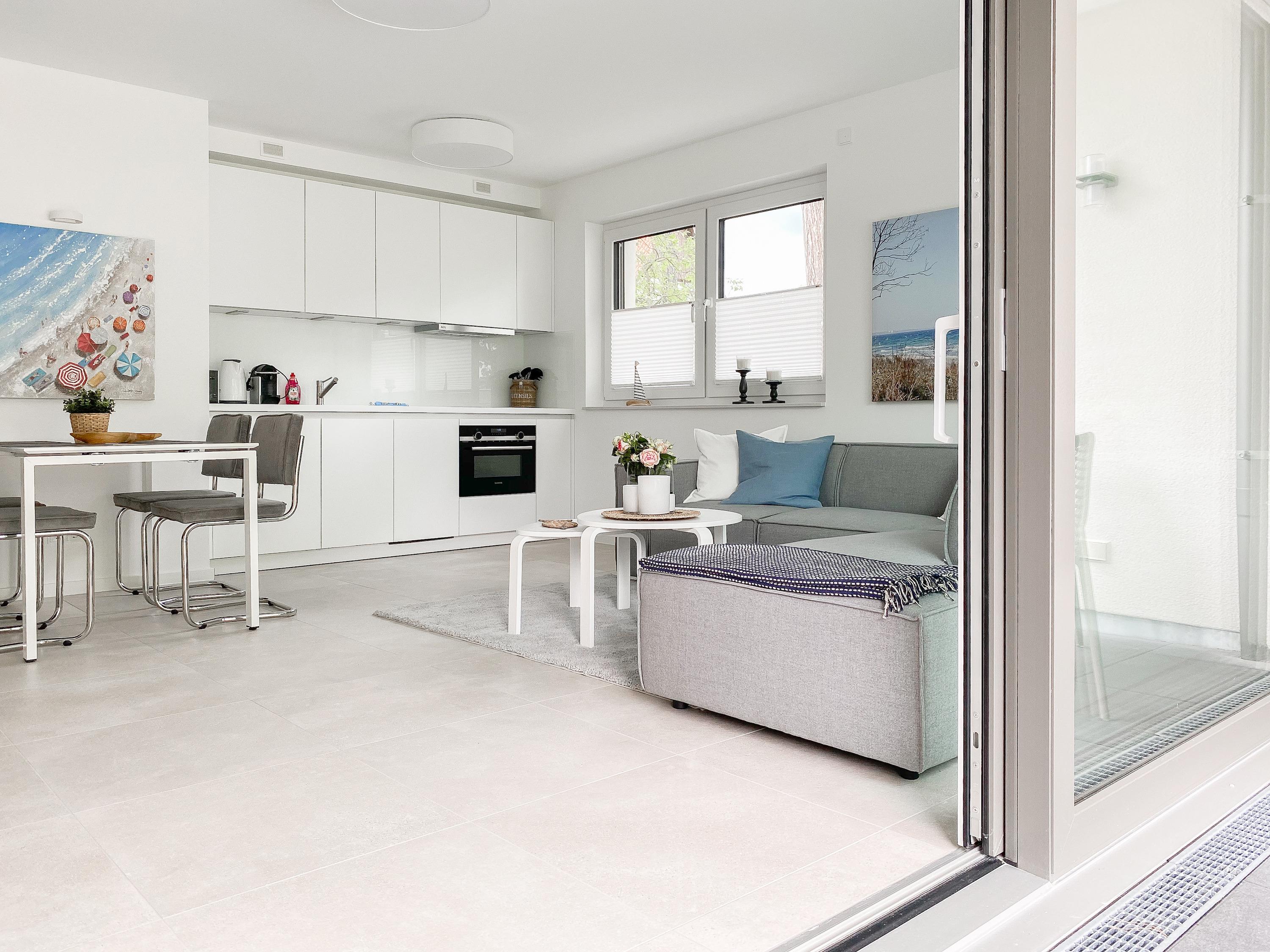 Moderne Ferienwohnung am Timmendorfer Strand mit Meerblick, Terrasse und gehobenem Komfort für erholsame Tage.