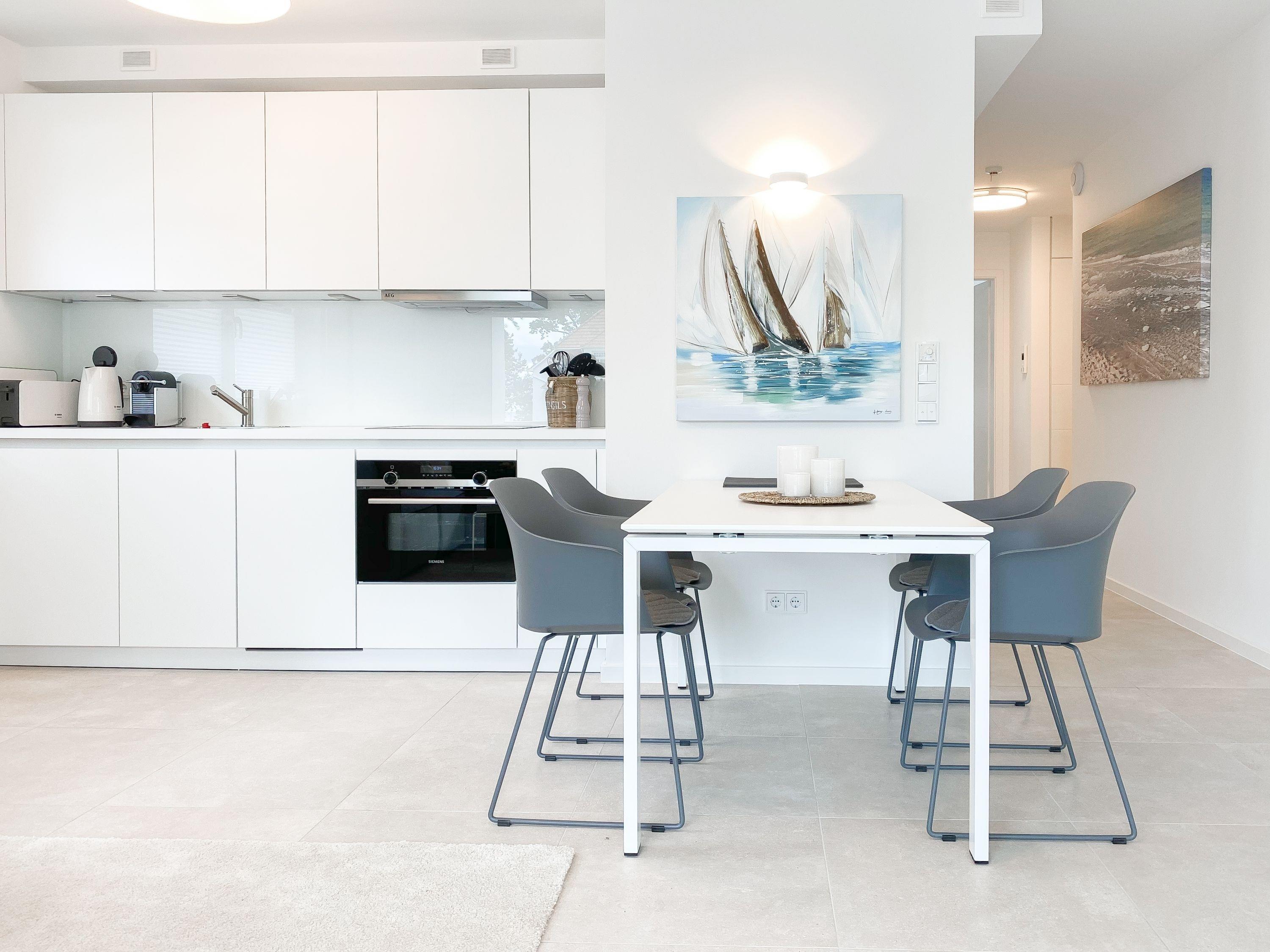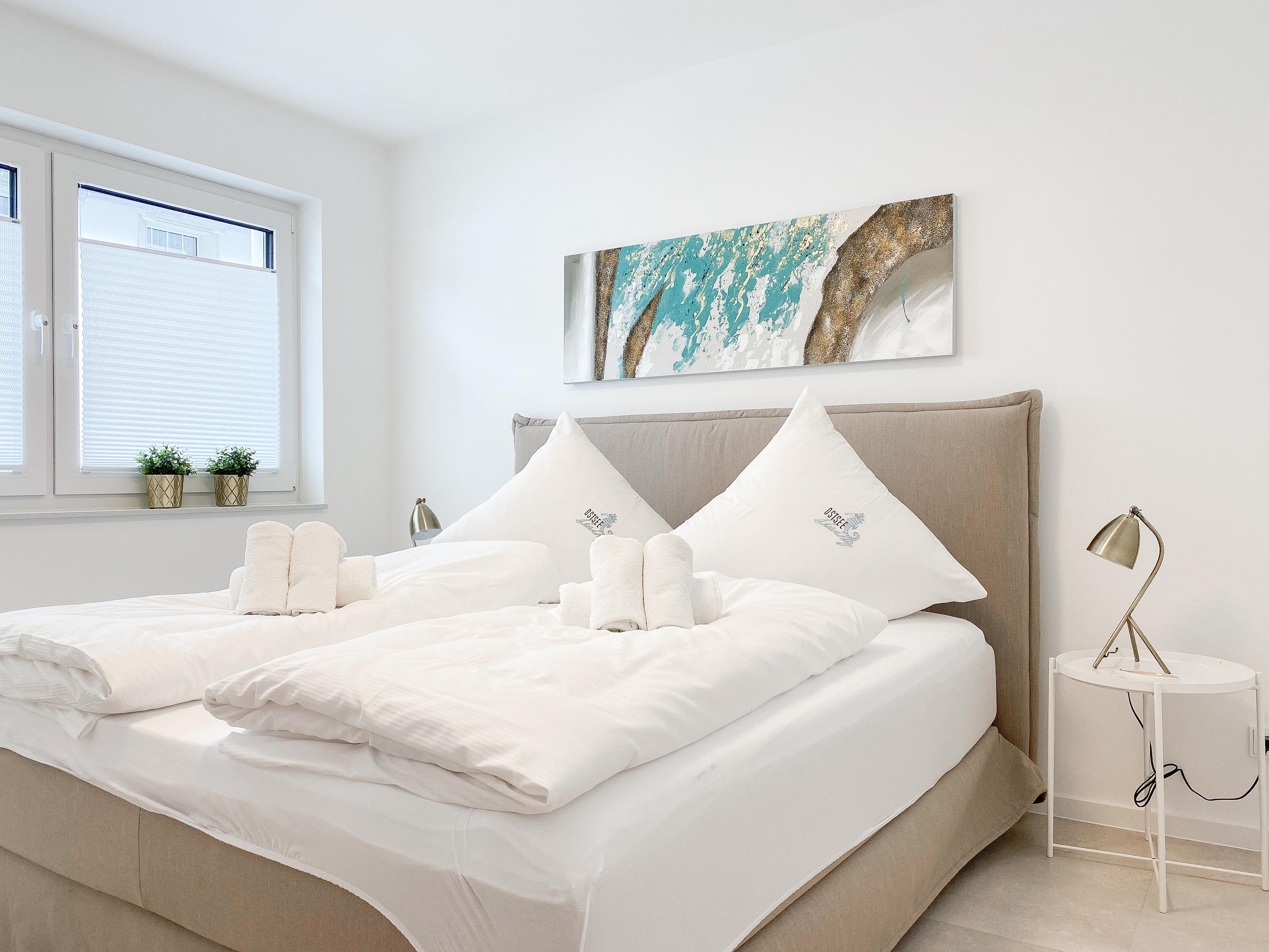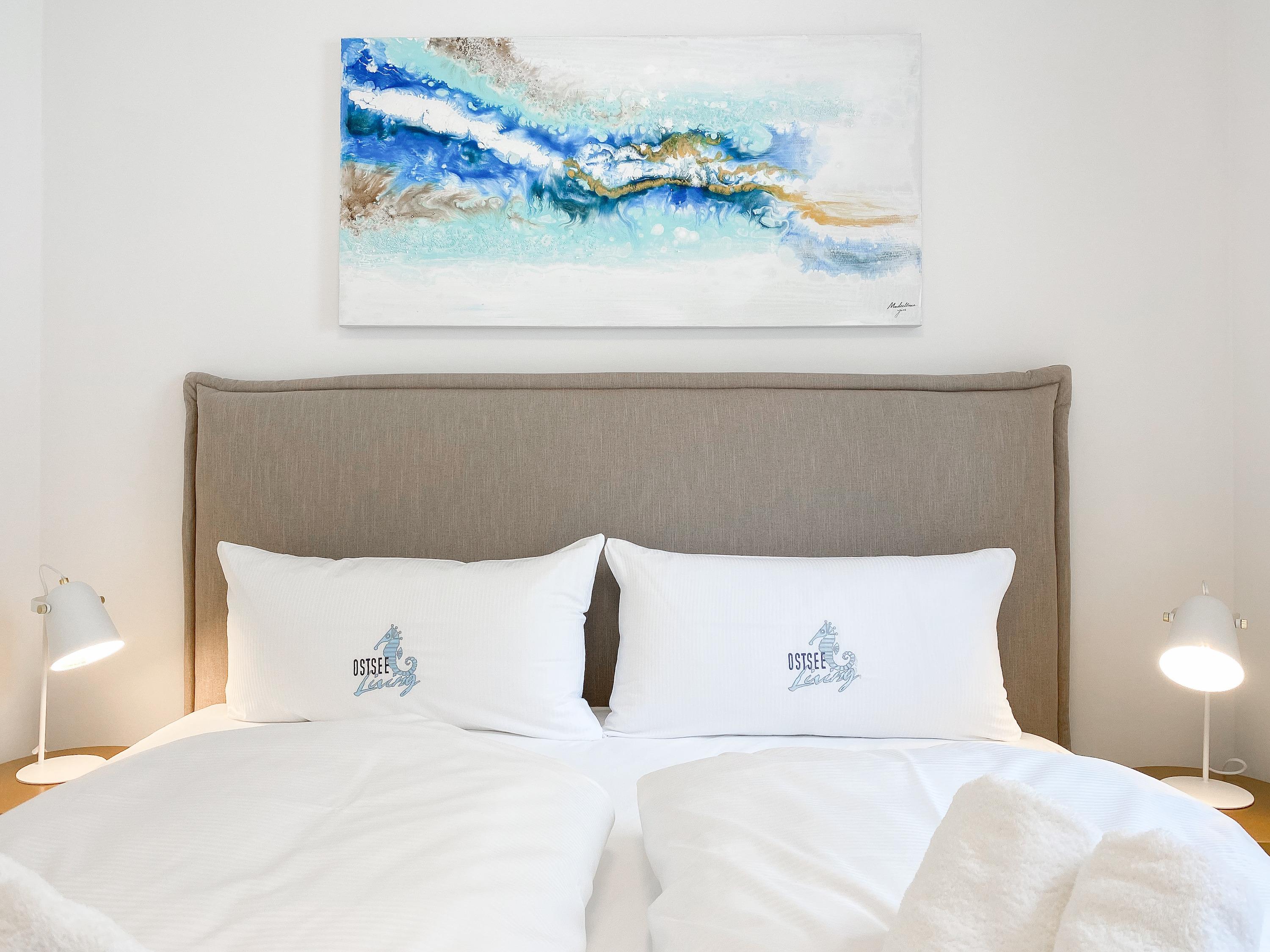 Die Ferienwohnung Wohnen am Strand 4 befindet sich im ersten Obergeschoss und bietet mit 2 Schlafzimmern, die mit Boxspringbetten (180x200 und 160x200) und TV ausgestattet sind sowie 2 Bädern mit bodengleichen Duschen, jeglichen Komfort für 4 Personen, um einen tollen Urlaub zu verleben. Der hochwertig eingerichtete Wohn- Essbereich[nbsp] bietet einen herrlichen Ausblick bis auf die Ostsee. Entspannen Sie auf Ihrem Balkon mit Teilmeerblick, Brandungsrauschen und frische Ostseeluft inklusive. Es stehen insgesamt 3 TV, Radio und WLAN zur Verfügung. Die Wohnung ist mit Fußbodenheizung ausgestattet und alle Fenster sind mit elektrischen Außenjalousien versehen, die gleichermaßen für Verdunkelung oder Tageslicht mit Privatsphäre sorgen.