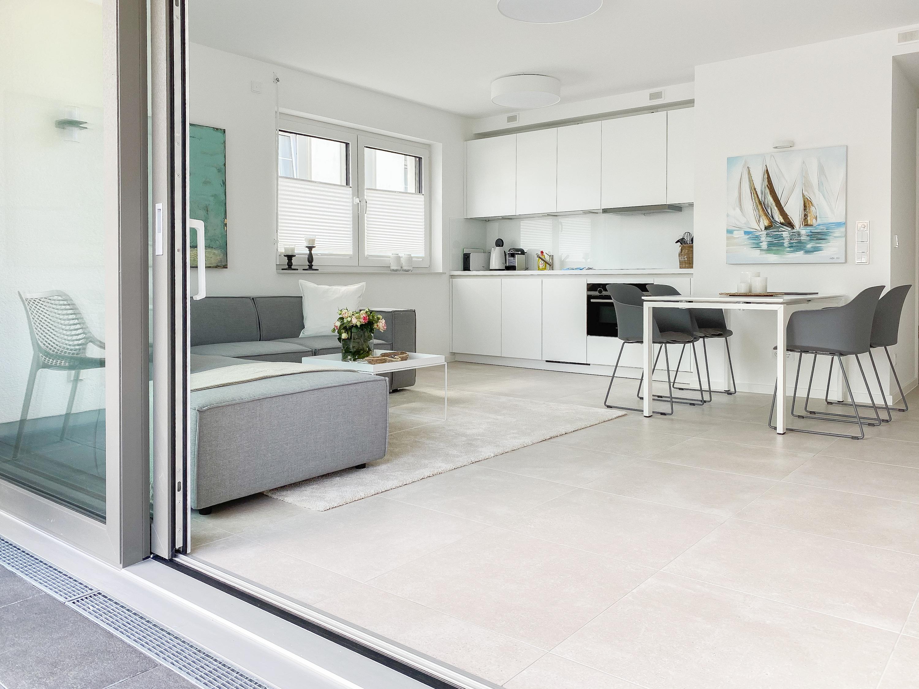10 exklusive Wohnungen mit Balkonen und Terrassen zur Meerseite bieten traumhafte Ausblicke bis auf die Ostsee und jeglichen Komfort zur Gewährleistung eines hohen Wohnstandards in schönem Ambiente. Alle Wohnungen verfügen über moderne Bäder mit Walk In Duschen, Fußbodenheizung und elektrische Außenjalousien mit einstellbaren Lamellen, die gleichermaßen für Tageslicht und Privatsphäre sorgen.
