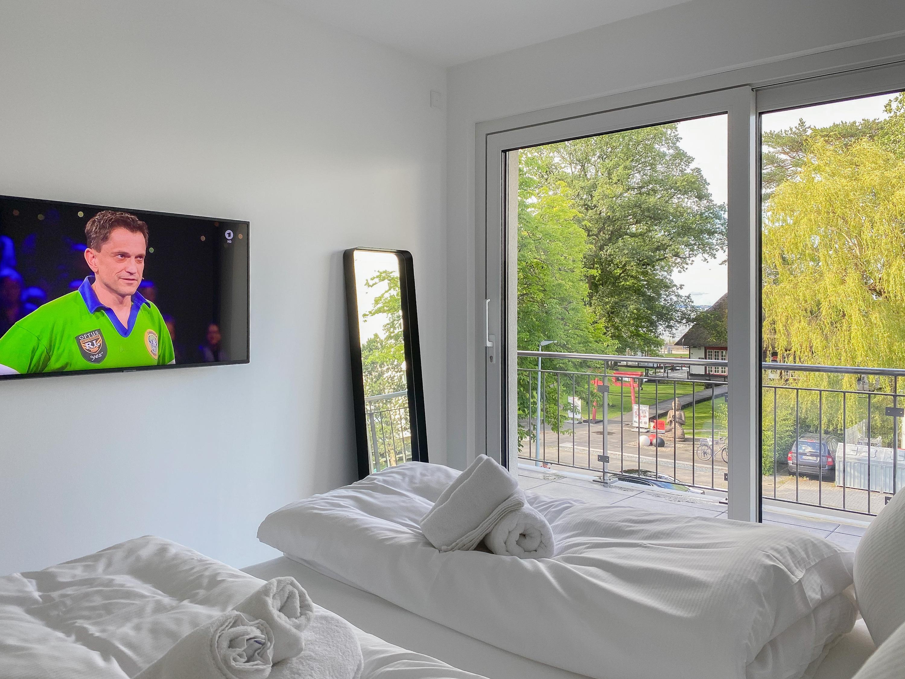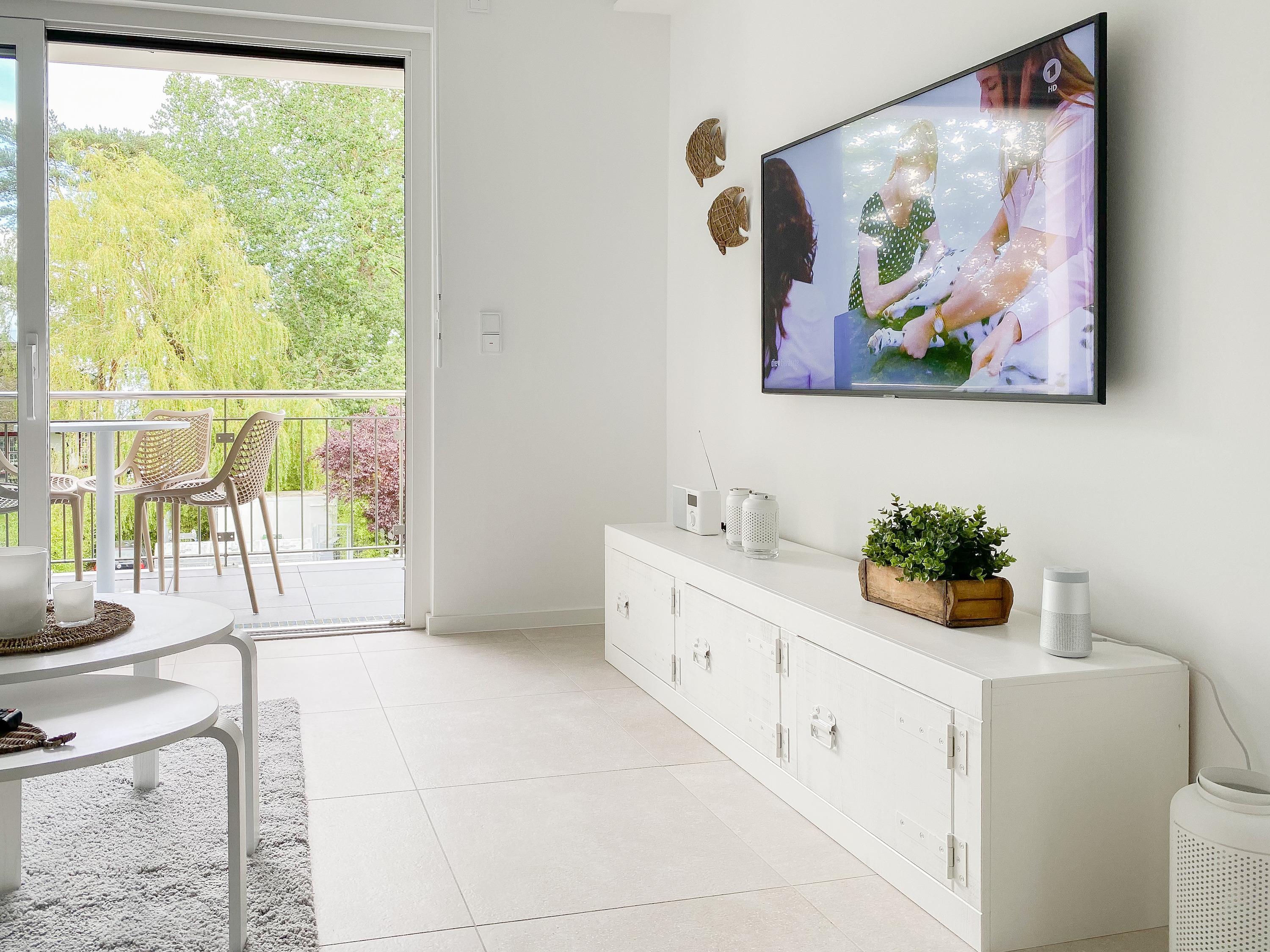 Die Ferienwohnung Wohnen am Strand 8 befindet sich im zweiten Obergeschoss und bietet mit einem Schlafzimmer, ausgestattet mit einem Boxspringbett (180x200 )[nbsp][nbsp]und TV sowie einem bequemen Schlafsofa im Wohnbereich (140x185), [nbsp]jeglichen Komfort für 3 bis 4 [nbsp]Personen, um einen entspannten Urlaub zu verleben. Der hochwertig eingerichtete Wohn- Essbereich bietet einen herrlichen Ausblick bis auf die Ostsee. Entspannen Sie auf Ihrem Balkon, der sich über die gesamte Breite der Wohnung erstreckt, Teilmeerblick, Brandungsrauschen und frische Ostseeluft inklusive.[nbsp] Es stehen insgesamt 2 TV, Radio und WLAN zur Verfügung. Die Wohnung ist mit Fußbodenheizung ausgestattet und alle Fenster sind mit elektrischen Außenjalousien versehen, die gleichermaßen für Verdunkelung oder Tageslicht mit Privatsphäre sorgen. Zur Wohnung gehört ein fester Tiefgaragenstellplatz (Einfahrtshöhe 1,90 m). Das Haus verfügt über einen Fahrstuhl und einen Fahrradkeller. Waschmaschine und Trockner stehen kostenlos zur gemeinschaftlichen Nutzung[nbsp] zur Verfügung.