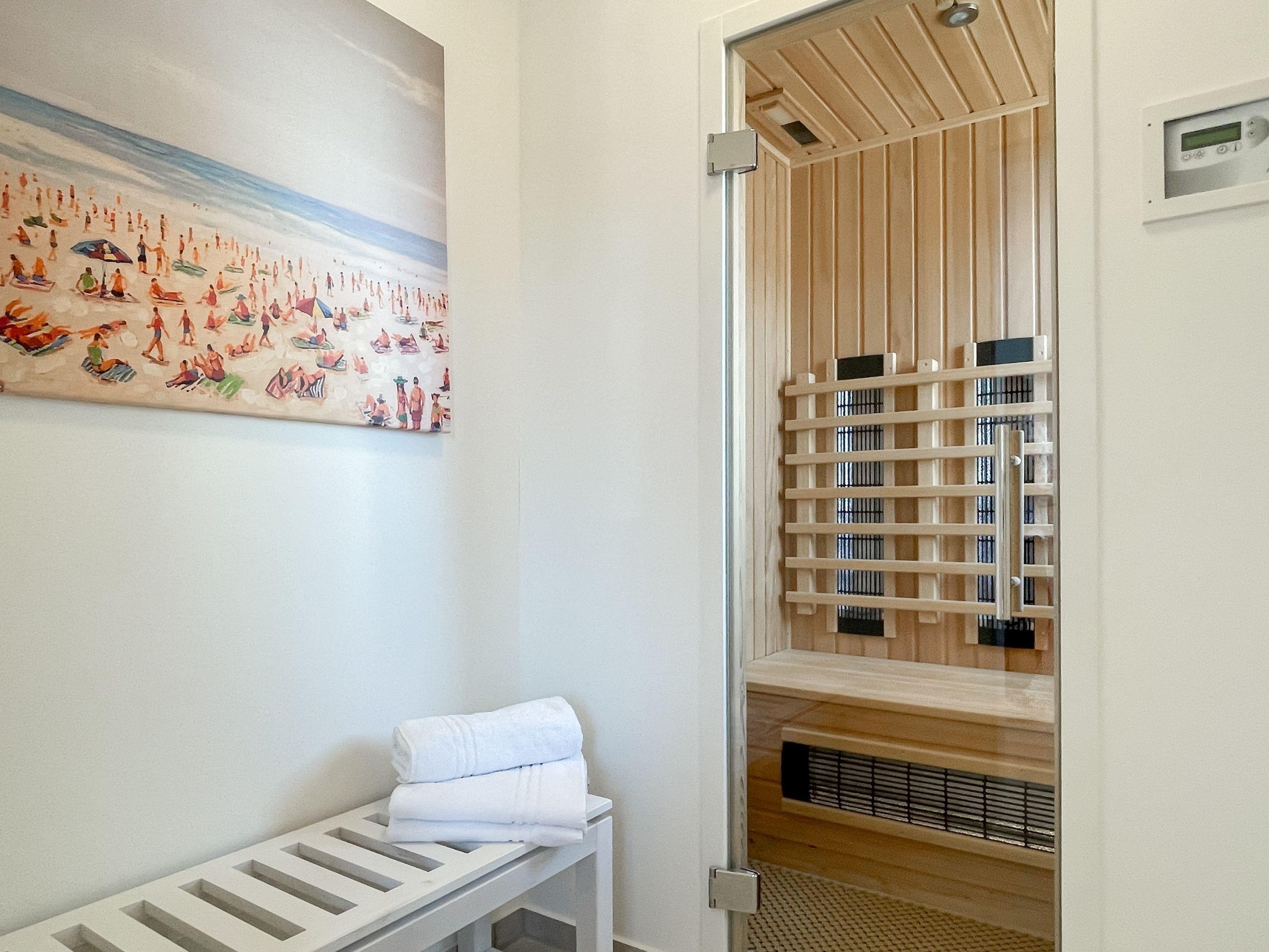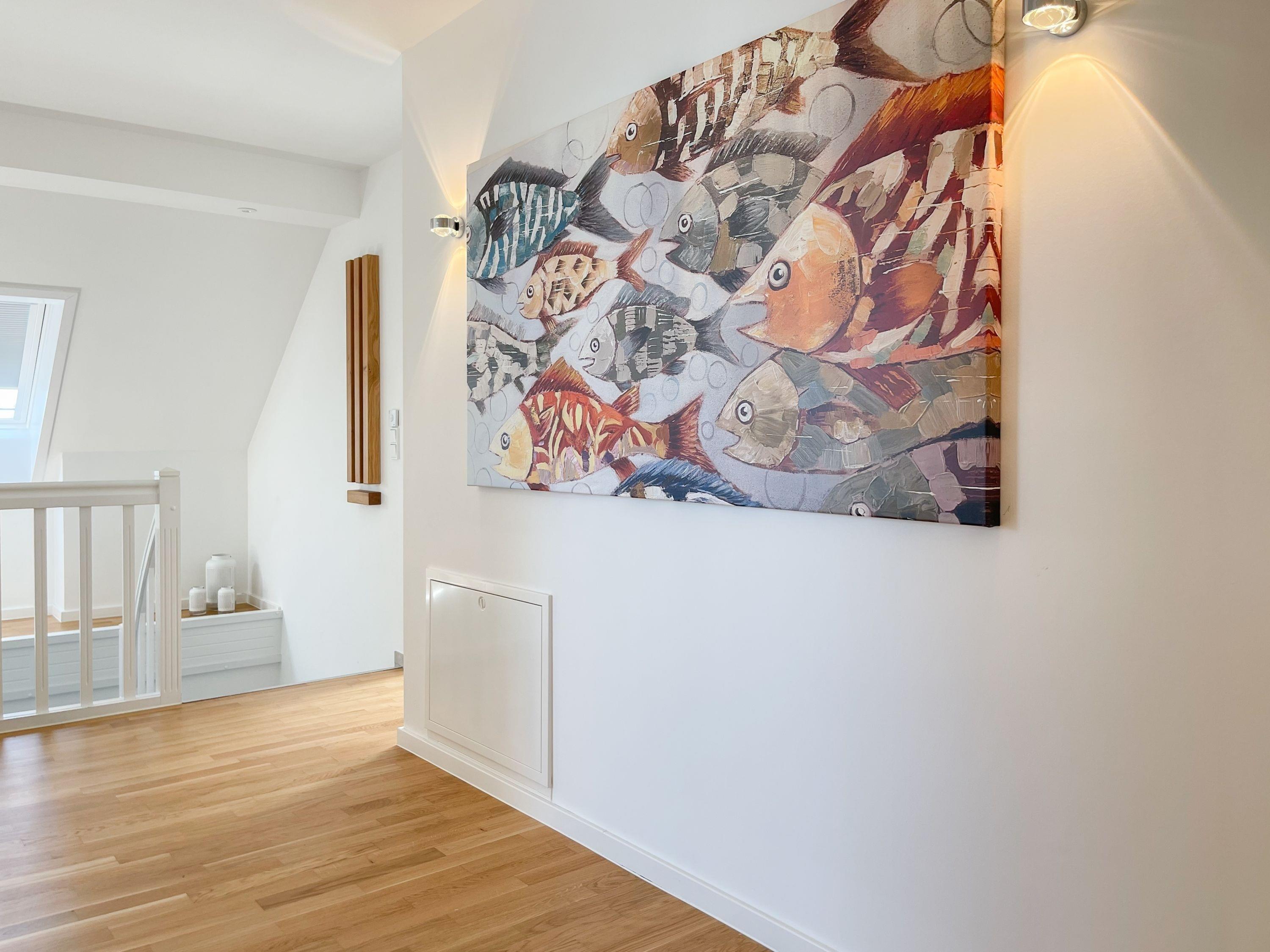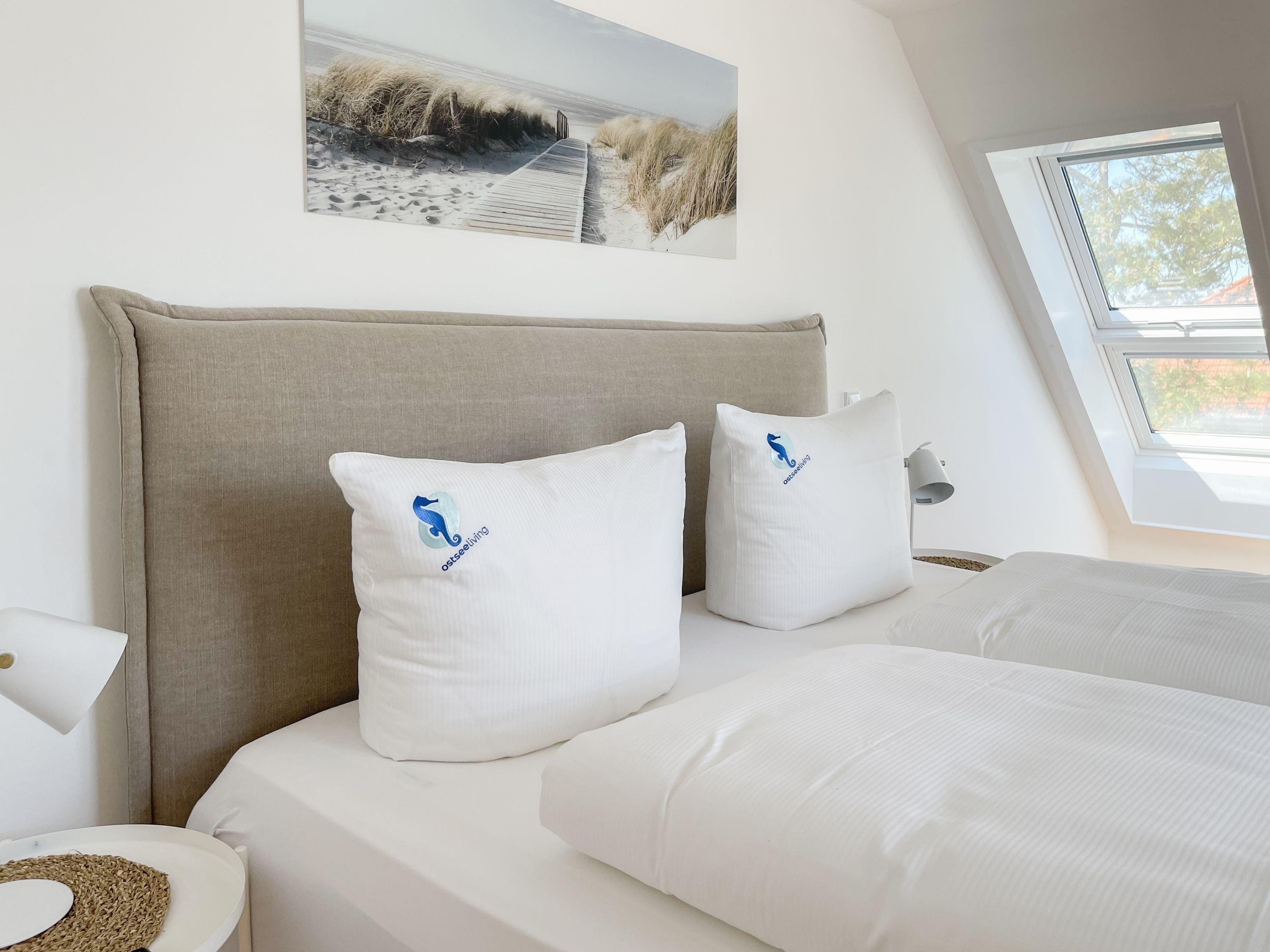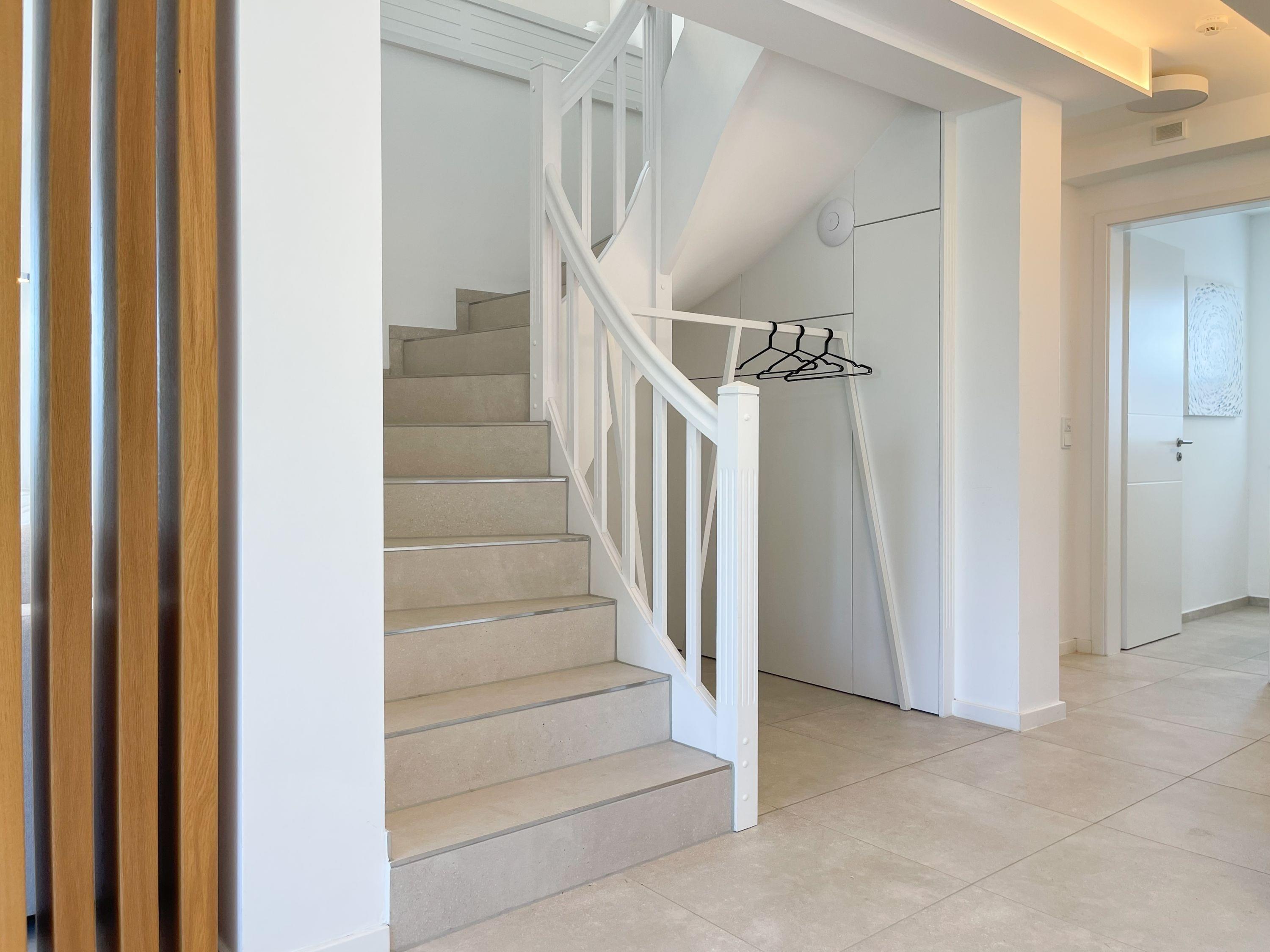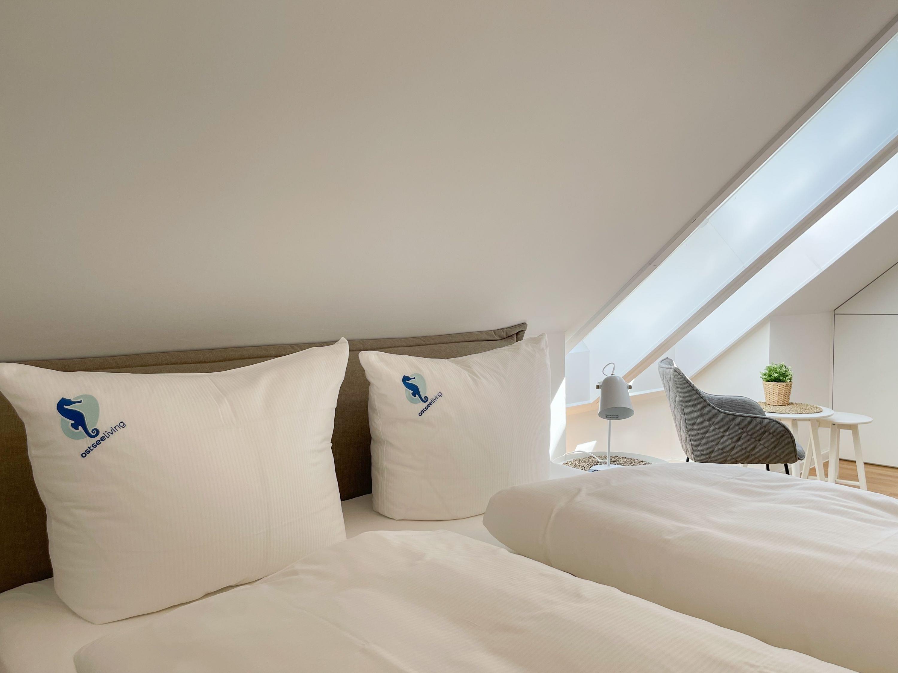 Das traumhafte Penthouse erstreckt sich über zwei großzügige Wohnebenen und bietet herrliche Ausblicke bis auf die Ostsee. Mit drei Schlafzimmern, zwei Bädern und einem separaten Gäste WC, ist es perfekt für sechs Personen geeignet, um einen entspannten Ostseeurlaub in absoluter Strandnähe zu verleben. Die[nbsp] geschmackvolle Einrichtung und hochwertige Ausstattung sorgt für höchsten Wohnstandard in bester Lage. Unten erwartet Sie ein lichtdurchfluteter Wohnbereich mit einem XL-Sofa; TV, Radio und WLAN sind selbstverständlich vorhanden. Die umlaufende Dachterrasse in Richtung Ost und Süd lockt mit traumhaftem Blick und frischer Seeluft ins Freie. Der großzügige Essbereich bietet ausreichend Raum für gemeinsame Mahlzeiten, Spieleabende oder gemütliches Beisammensein. Küche, Gäste WC und Bad 1 mit großer Walk In Dusche, Badewanne, Waschtisch[nbsp] Handtuchtrockner und Fenster befinden sich ebenfalls auf der unteren Wohnebene. Die Infrarotsauna, hervorragende Wirkung gegen Verspannungen und zur Entschlackung, befindet sich in einem hellen, abgeschlossen Raum, der über das Bad 1 zu erreichen ist. Auf der oberen Wohnebene gibt es drei Schlafzimmer, alle mit Boxspringbetten, Einbauschränken, Verdunkelungsplisses und TV eingerichtet sowie das 2. Bad, ebenfalls mit Walk In Dusche, Waschtisch und WC. In einem Schlafzimmer befindet sich zusätzlich ein Schreibtisch für das Homeoffice mit herrlichem Ostseeblick.