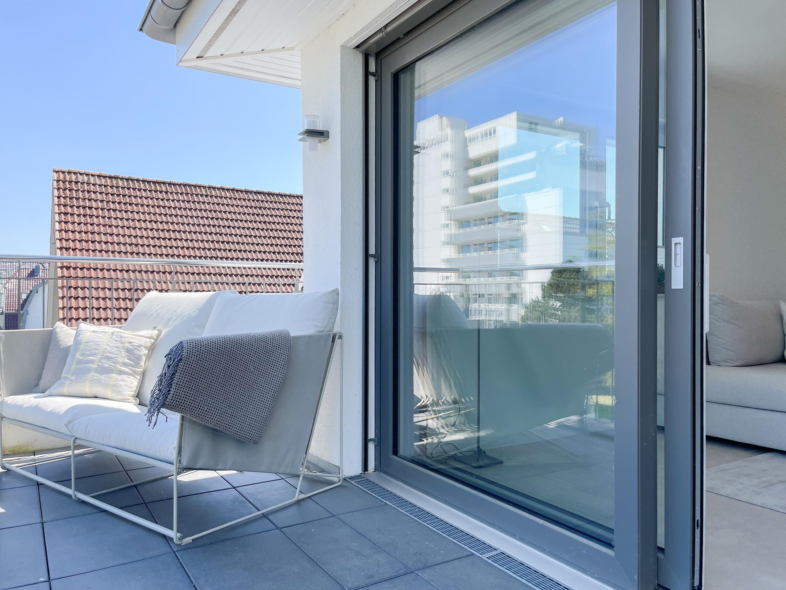 Modernes Penthouse am Timmendorfer Strand mit Meerblick und hochwertiger Ausstattung für einen entspannten Urlaub.