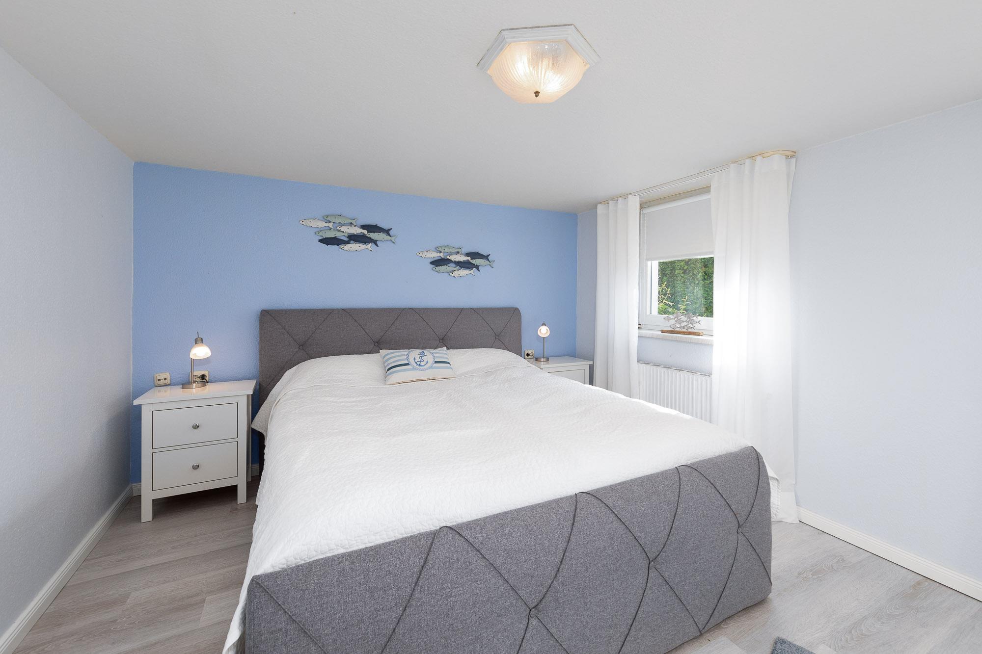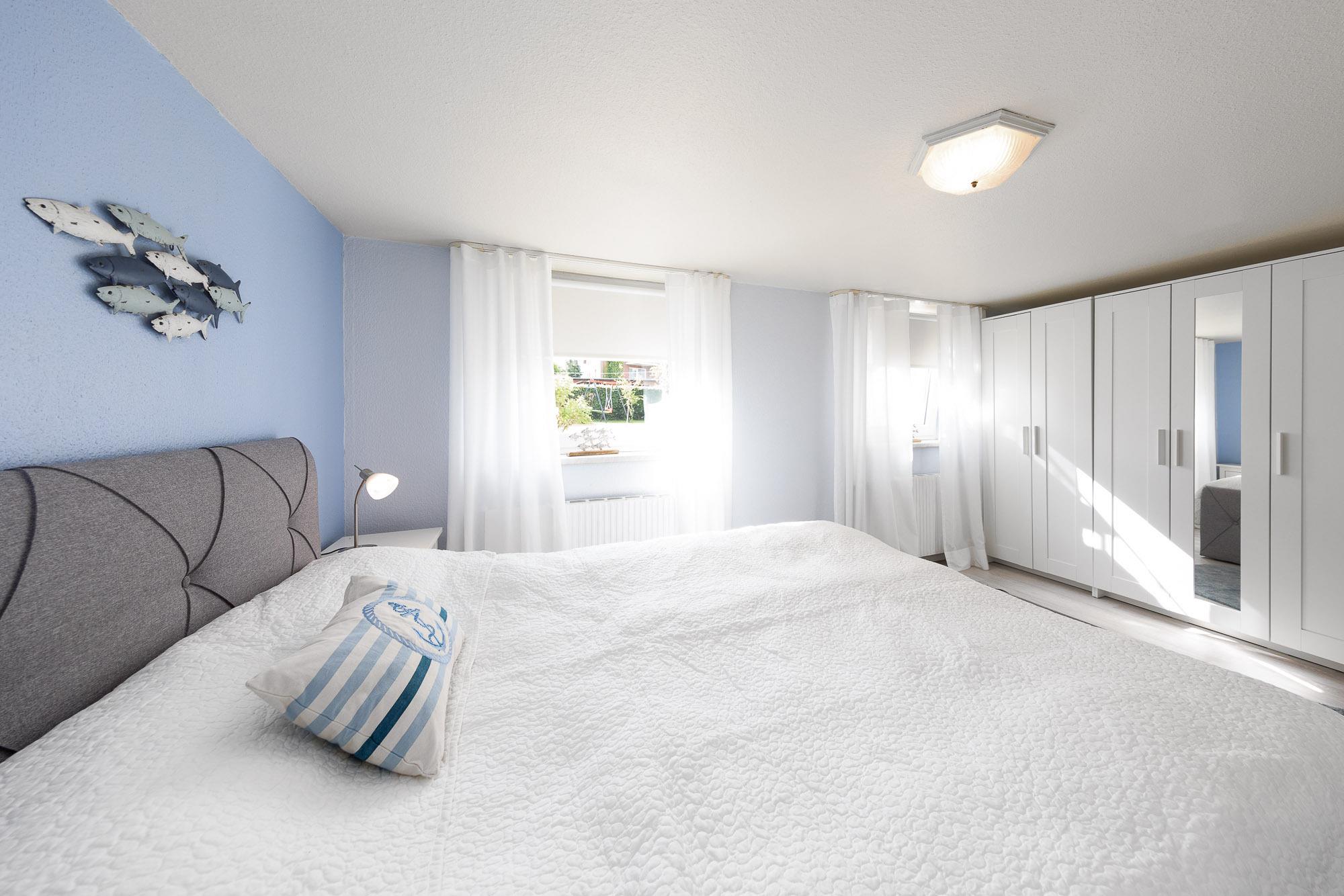 Um Ihnen einen erholsamen Schlaf zu garantieren, lässt sich der Schlafraum der Ferienwohnung mit einem Rollo verdunkeln.
