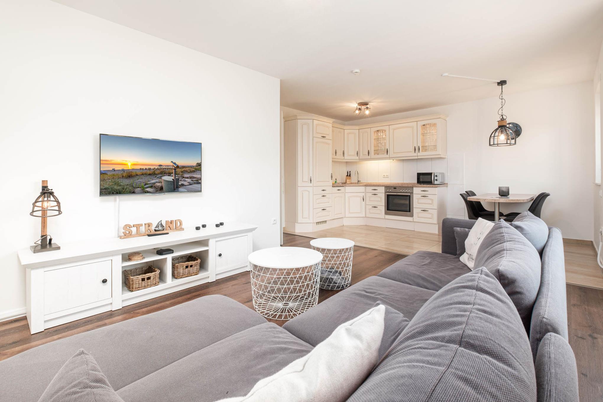 Herzlich willkommen in dem schicken 2,5-Zimmer Appartement "Küstenlinie 54°" in Timmendorfer Strand. Die hübsche Ferienunterkunft begrüßt Sie mit Charme und Stil in Ihrem unvergesslichen Ostseeurlaub.