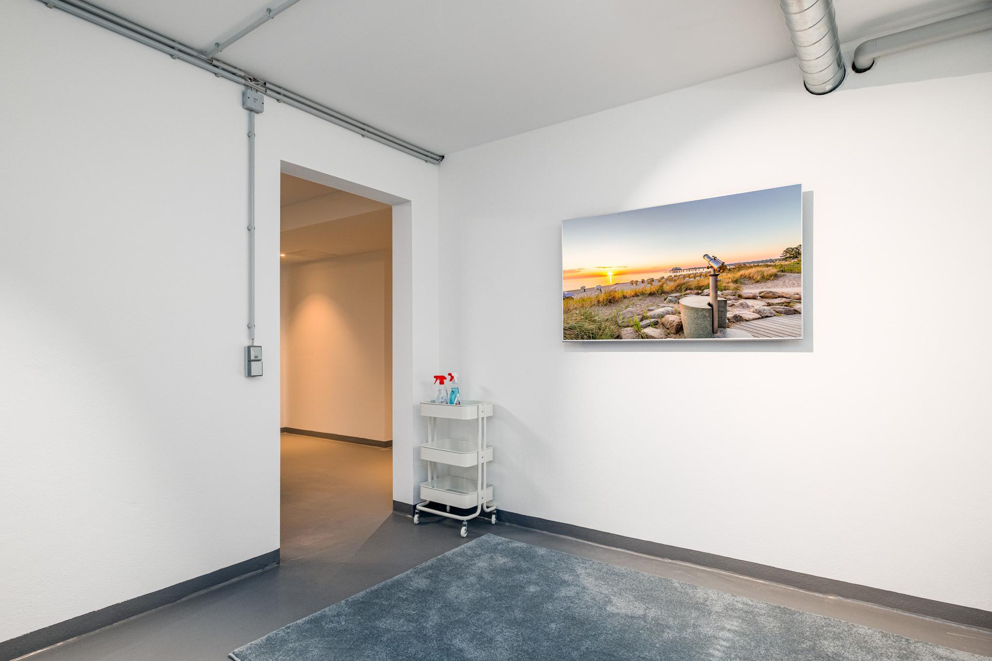 Im Gemeinschaftskeller der Appartementanlage befindet sich ein Fitnessraum, welcher mit einem Stepper, einem Rudergerät und einem Heimtrainer-Fahrrad ausgestattet ist. In zwei weiteren separaten Räumen befinden sich einmal ein Billardtisch sowie eine Dartscheibe. Darüber hinaus befinden[nbsp][nbsp]sich im Keller eine Sauna sowie eine Dusche zur gemeinschaftlichen Nutzung in der Anlage.
