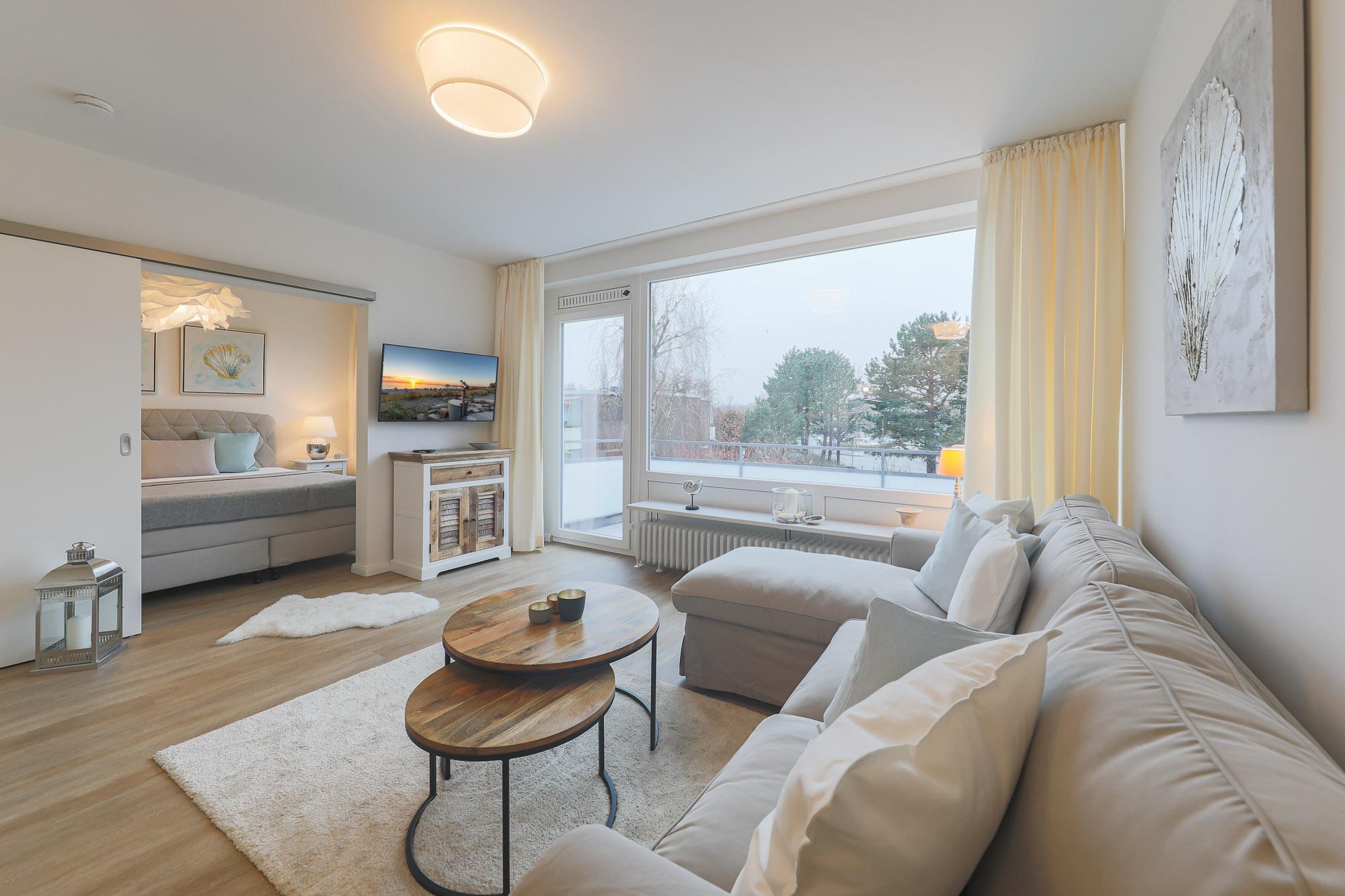 Frisch renoviertes 2-Zimmer-Appartement mit Balkon und zentraler Lage in Timmendorfer Strand, nur 200 m vom Sandstrand entfernt.