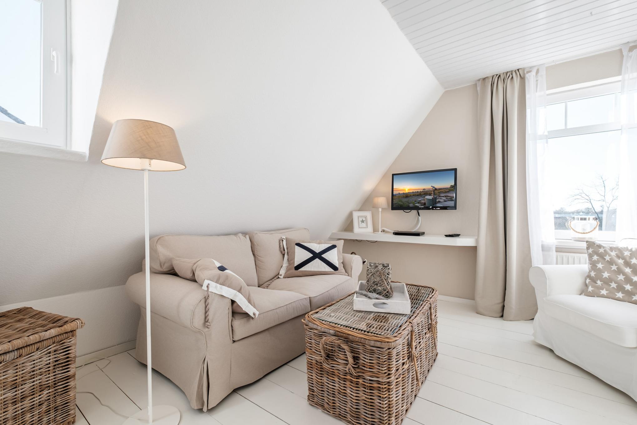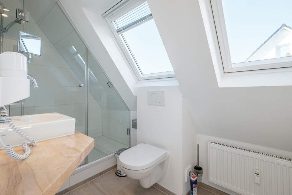 Unter dem Dach, über das 2. Obergeschoss und 3. Obergeschoss verteilt, erwartet Sie das 2-Zimmer Appartement mit hellen Wohnräumen. Insgesamt finden Sie hier eine gemütliche Wohlfühloase für bis zu 2 Personen.