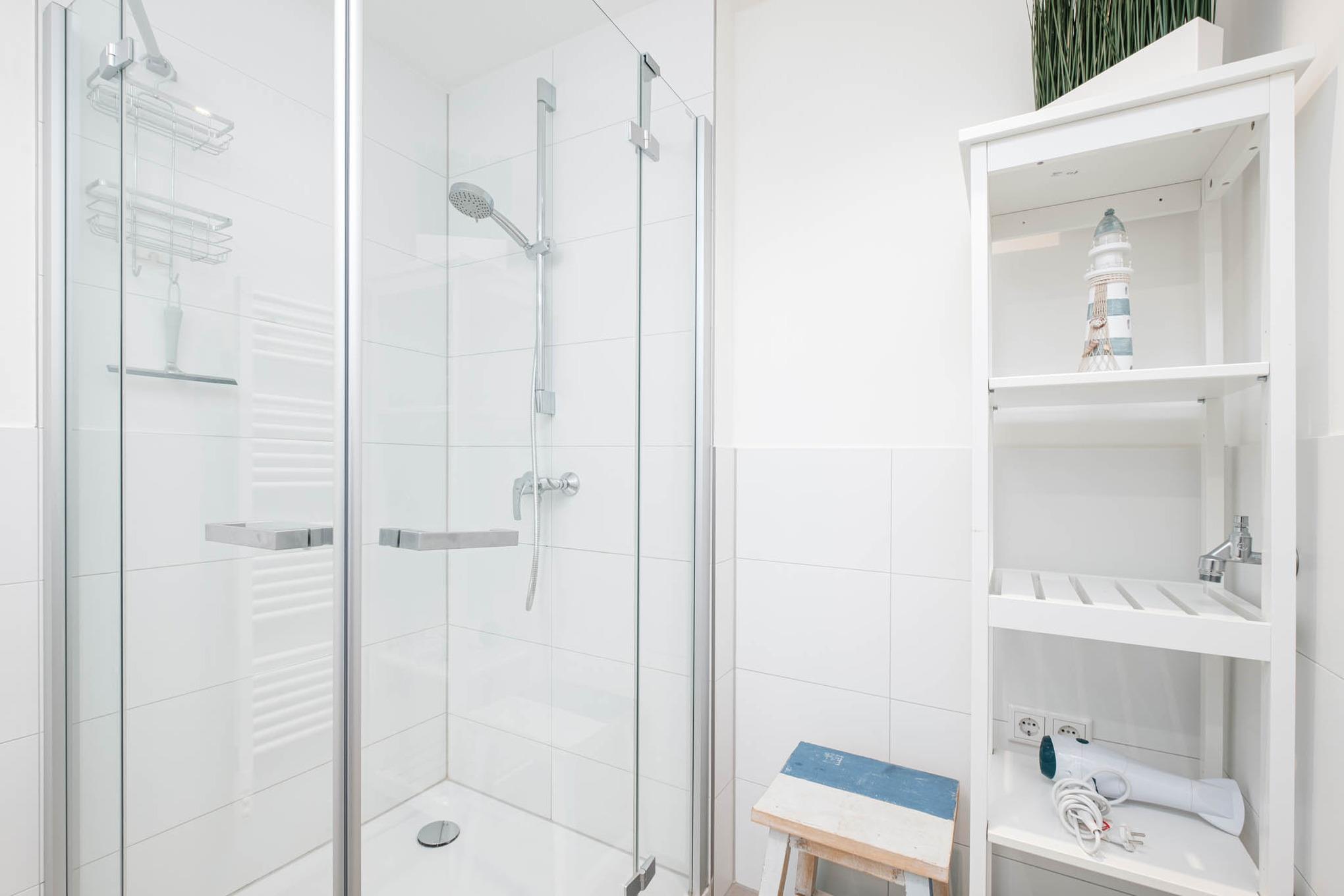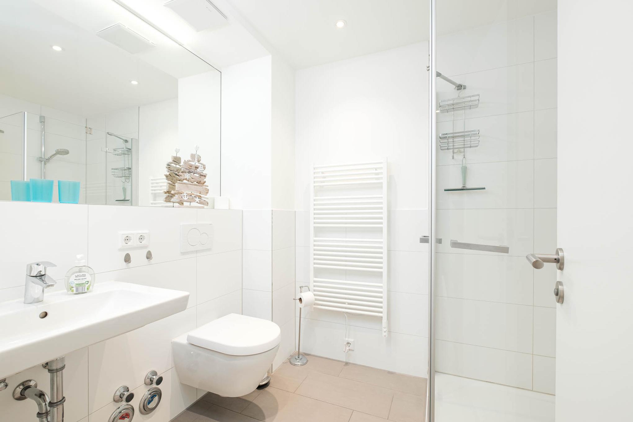 Das moderne Badezimmer mit Dusche rundet dieses schöne und moderne Urlaubsdomizil an der Ostsee ab.