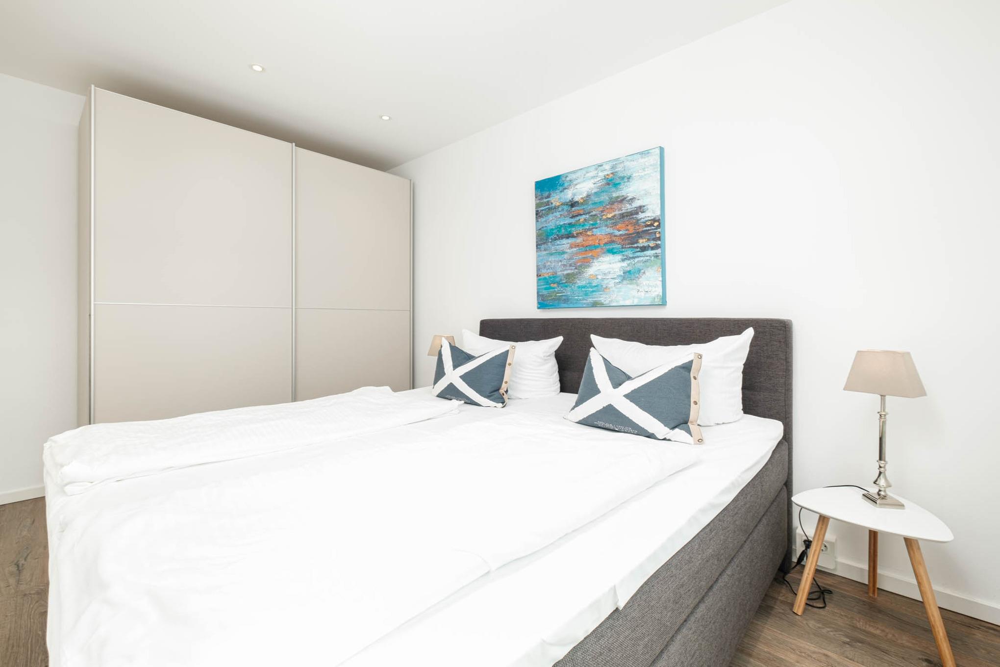 In der Ferienwohnung Timmendorfer Strand steht Ihnen zudem ein separates Schlafzimmer mit Boxspringbett (180x200cm) zur Verfügung. Alle Räume lassen sich mittels elektr. Außenjalousien komplett abdunkeln.