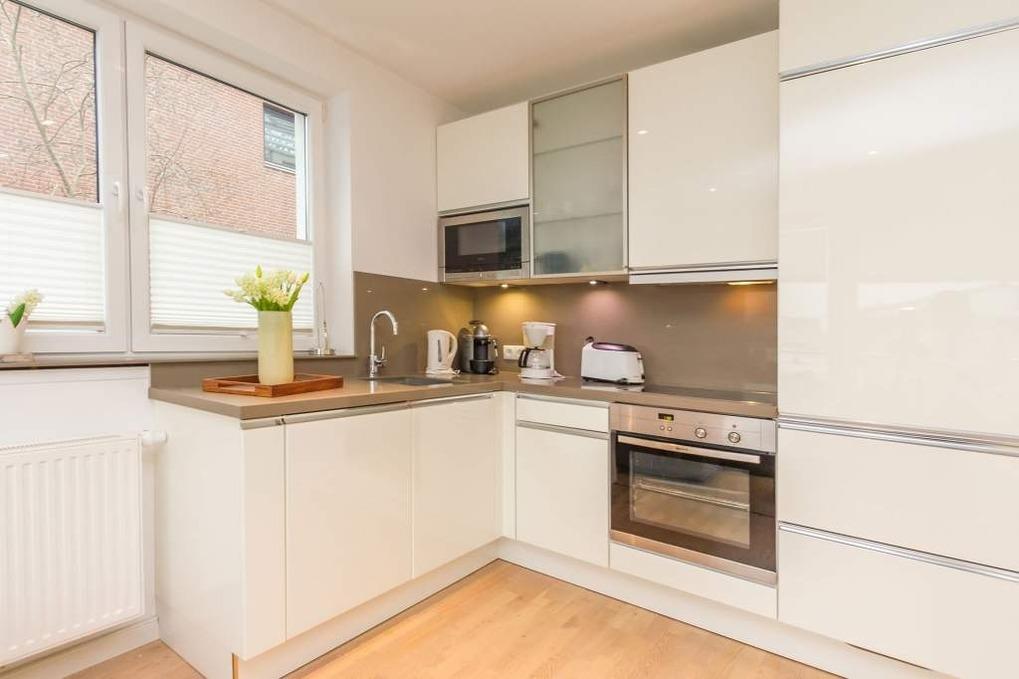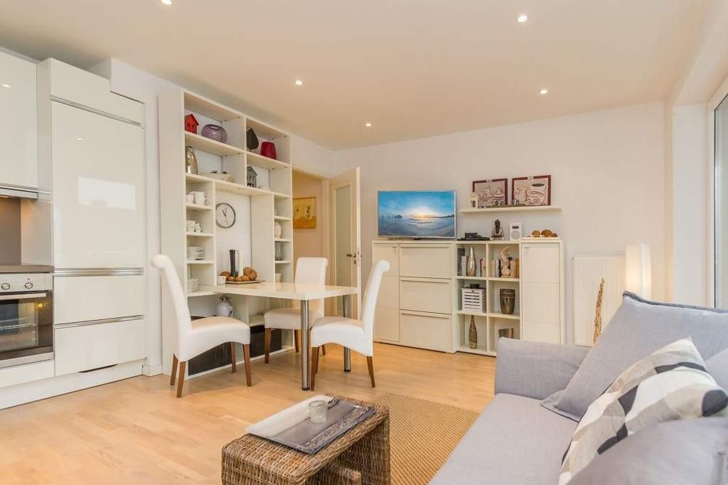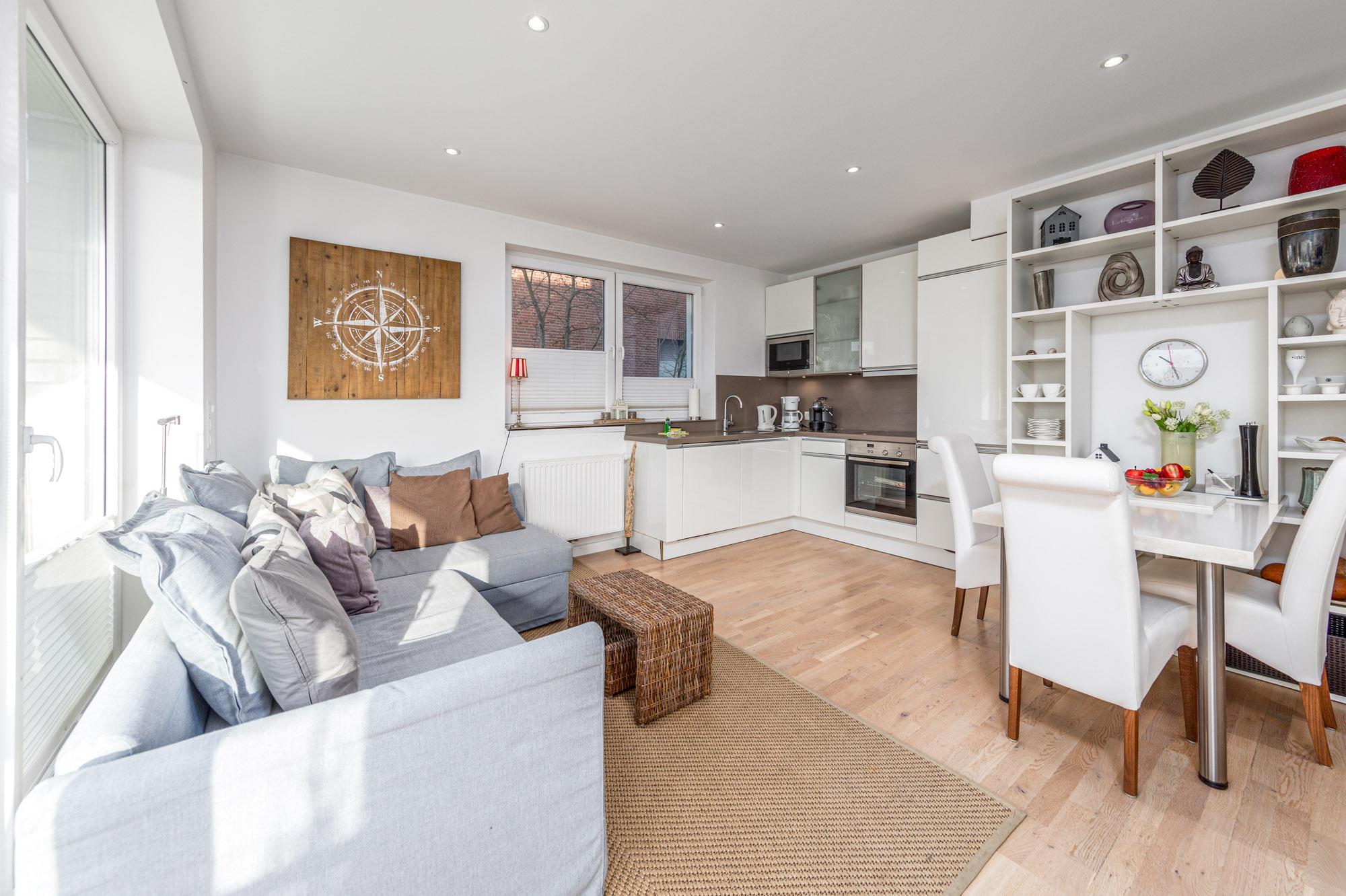 In der 2-Zimmer-Ferienwohnung Ostseeperle im Haus Alsterspeicher in Timmendorfer Strand erwartet Sie ein modernes Ostsee Domizil in der 1. Etage mit Balkon in Süd-/Westlage. Die Ferienwohnung ist für maximal 3 Personen ausgestattet. Das Wohn-/Schlafzimmer verfügt über eine Ausziehcouch, Flatscreen-TV, Stereo-Anlage, Box für Internetradio, eine Essecke sowie eine moderne Küche mit den modernsten Geräten. Ceranfeld, Backofen, Mikrowelle und Geschirrspüler, Nespresso-Kapselmaschine; sowie alle weiteren notwendigen Küchenutensilien sind vorhanden.