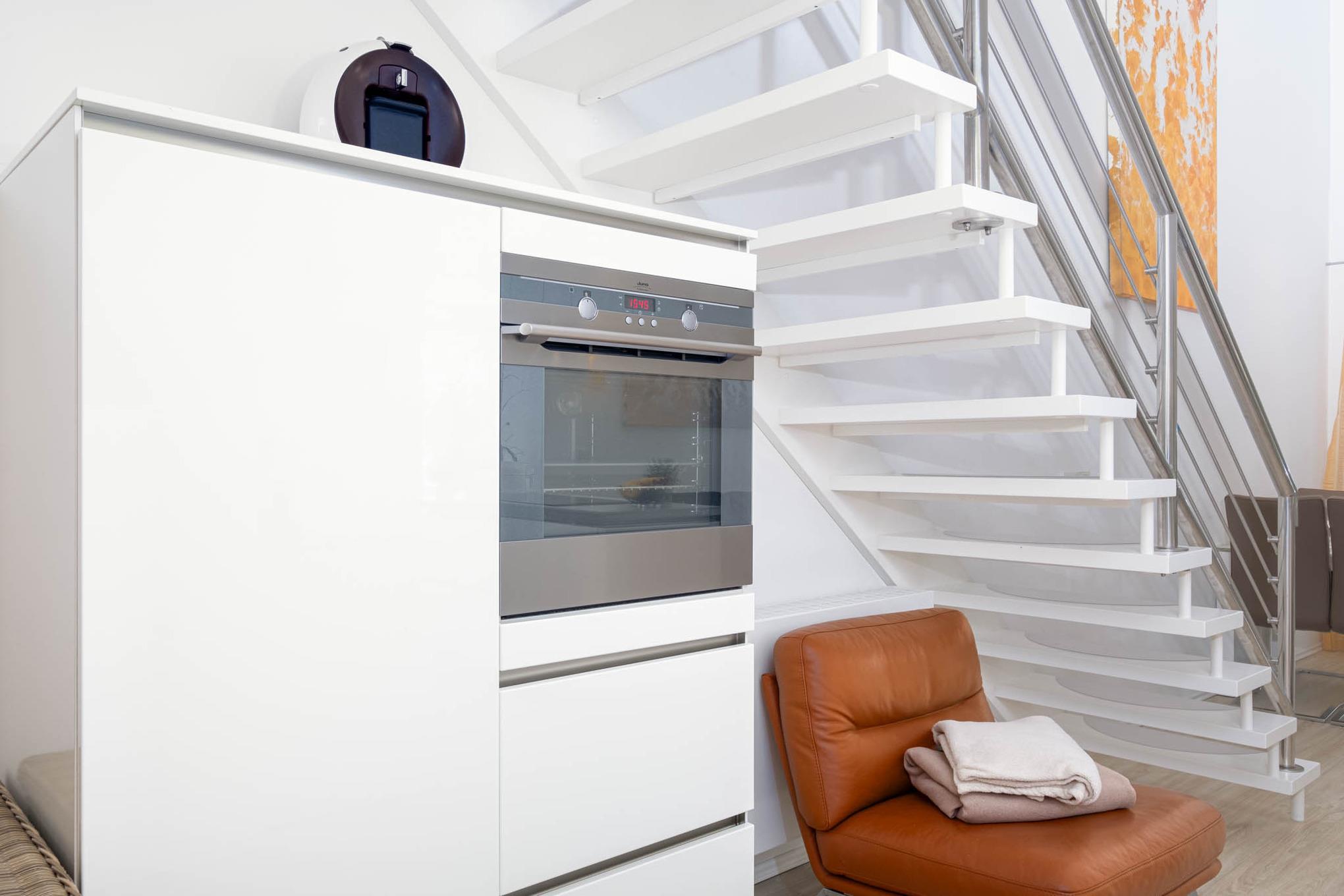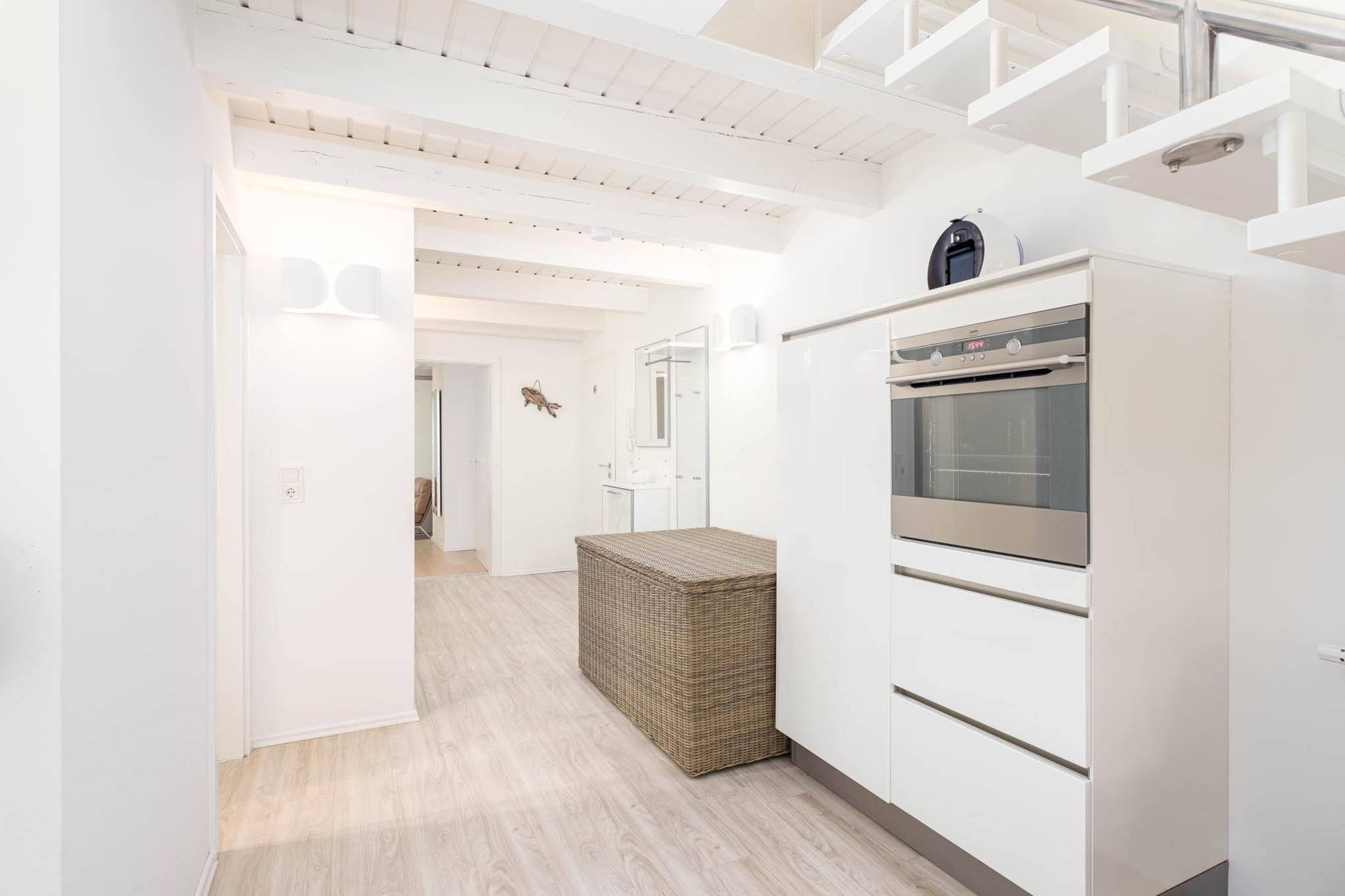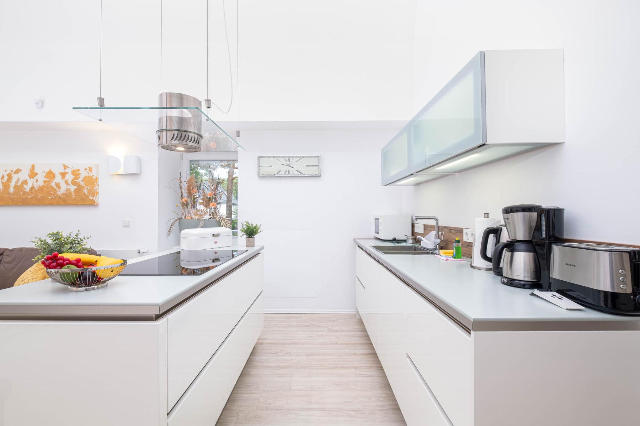 Die Küche ist modern und rund um mit allem, was das kulinarische Herz höher schlagen lässt, ausgestattet - ein Kühlschrank mit Gefrierfach, ein Backofen, eine Mikrowelle, ein Cerankochfeld, ein Geschirrspüler, eine Kaffeemaschine sowie eine ergänzende Kaffekapselmaschine von Dolce Gusto, ein Toaster und ein Wasserkocher stehen für Sie bereit.