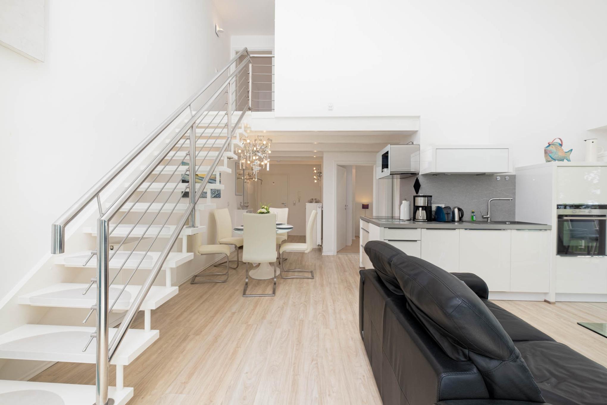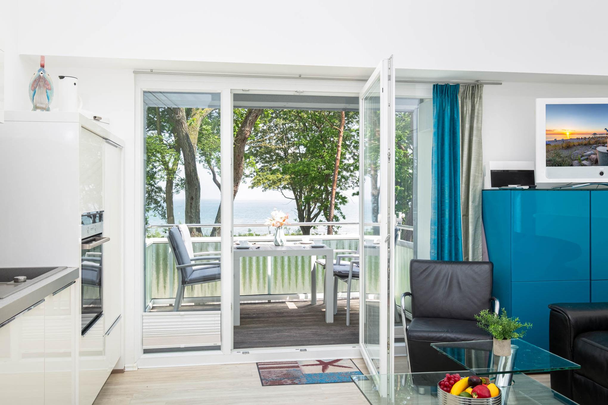 Helles Appartement mit Meerblick direkt am Strand von Timmendorfer Strand, ideal für einen erholsamen Urlaub.