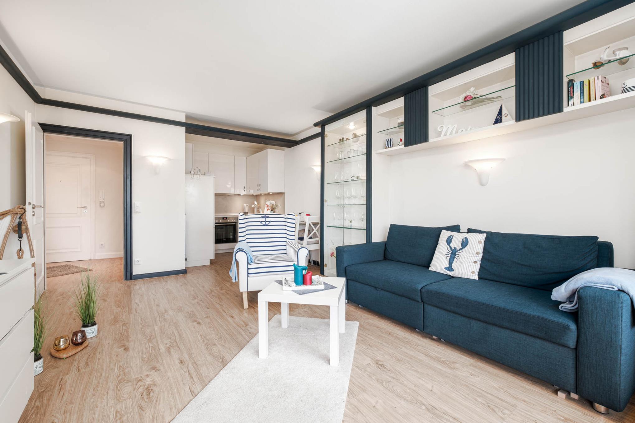 Dann buchen Sie jetzt Ihren Erholungsurlaub in dem schicken Appartement Nr. 306. Meerblick inklusive!